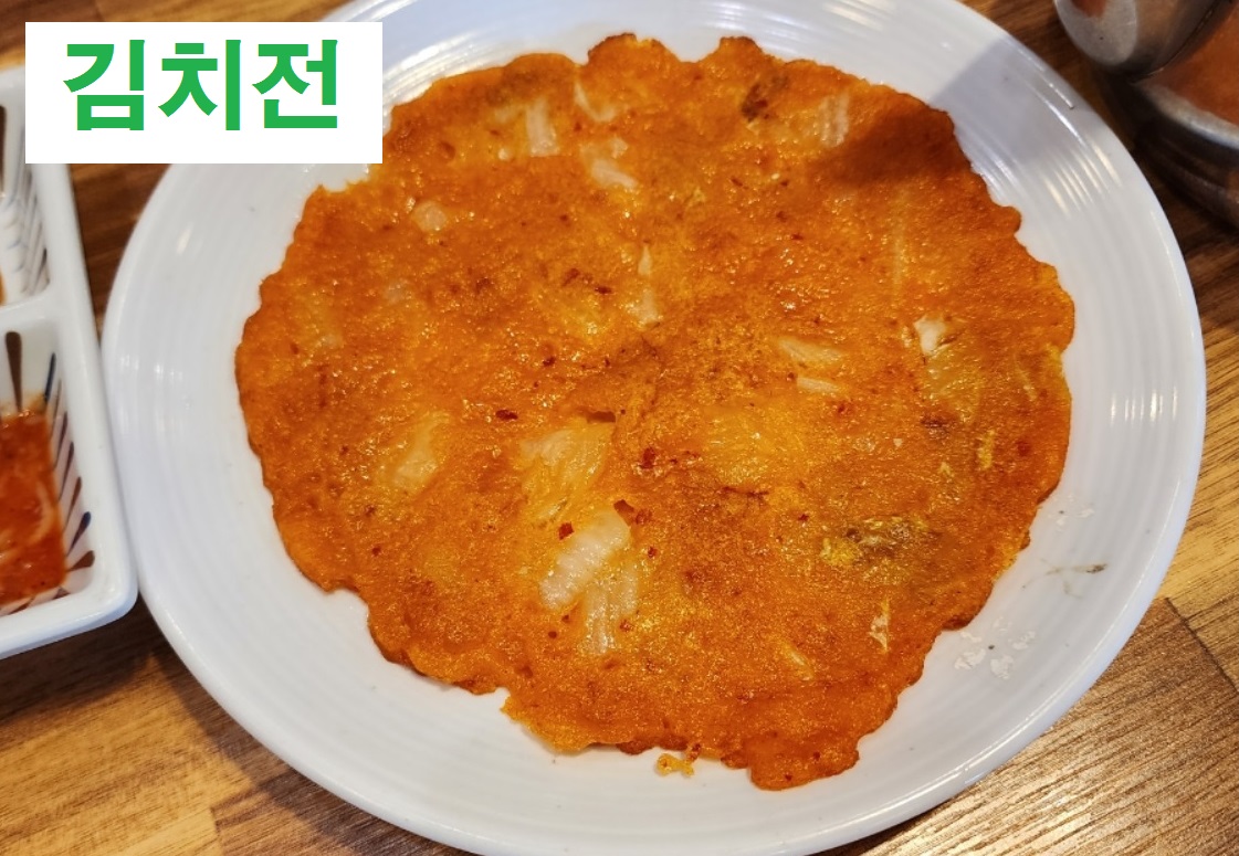 김치전이 나오는데 정말 맛있으며 살짝 매운 느낌도 있었는데 먹는 데는 부담이 없습니다.