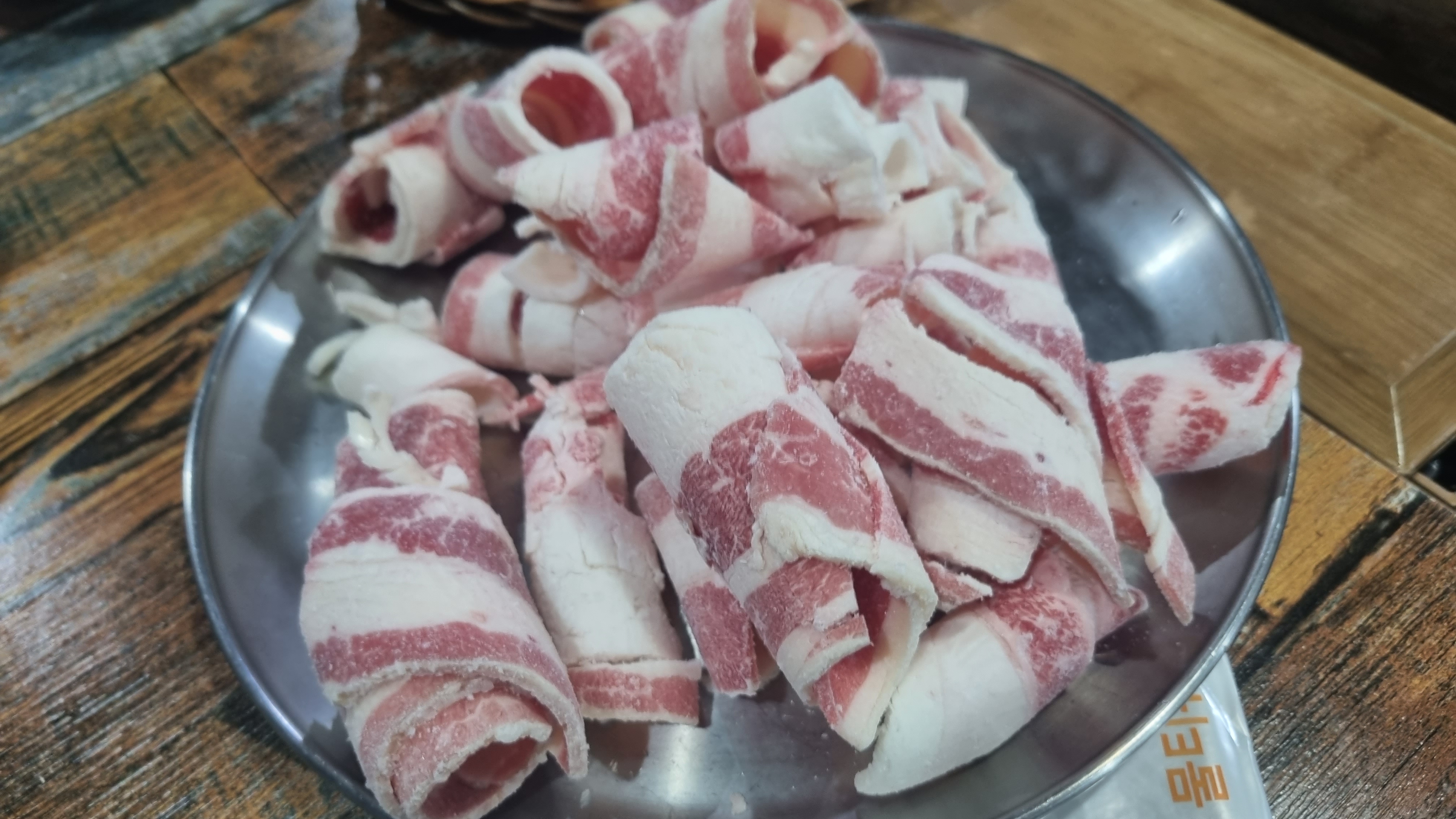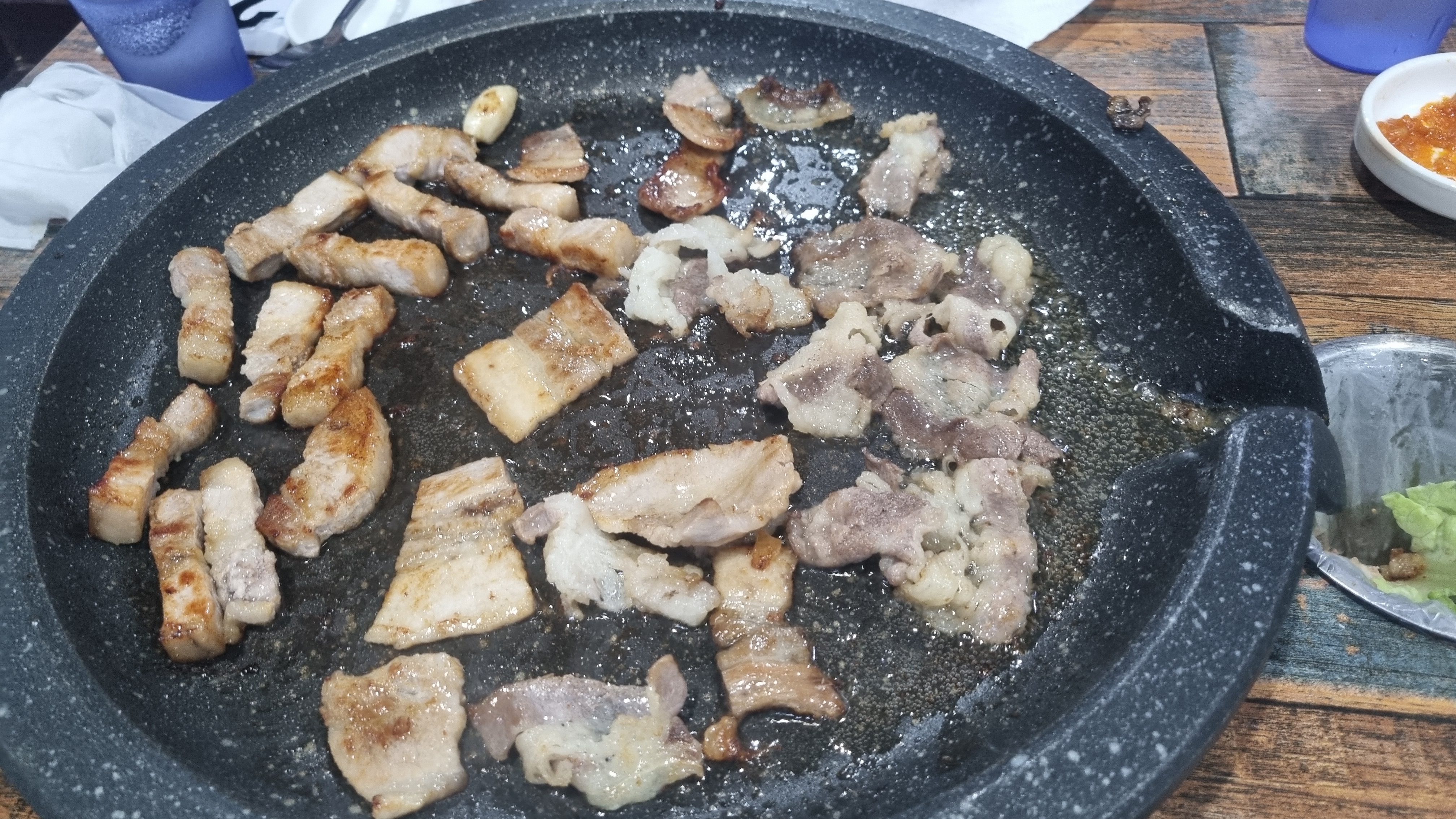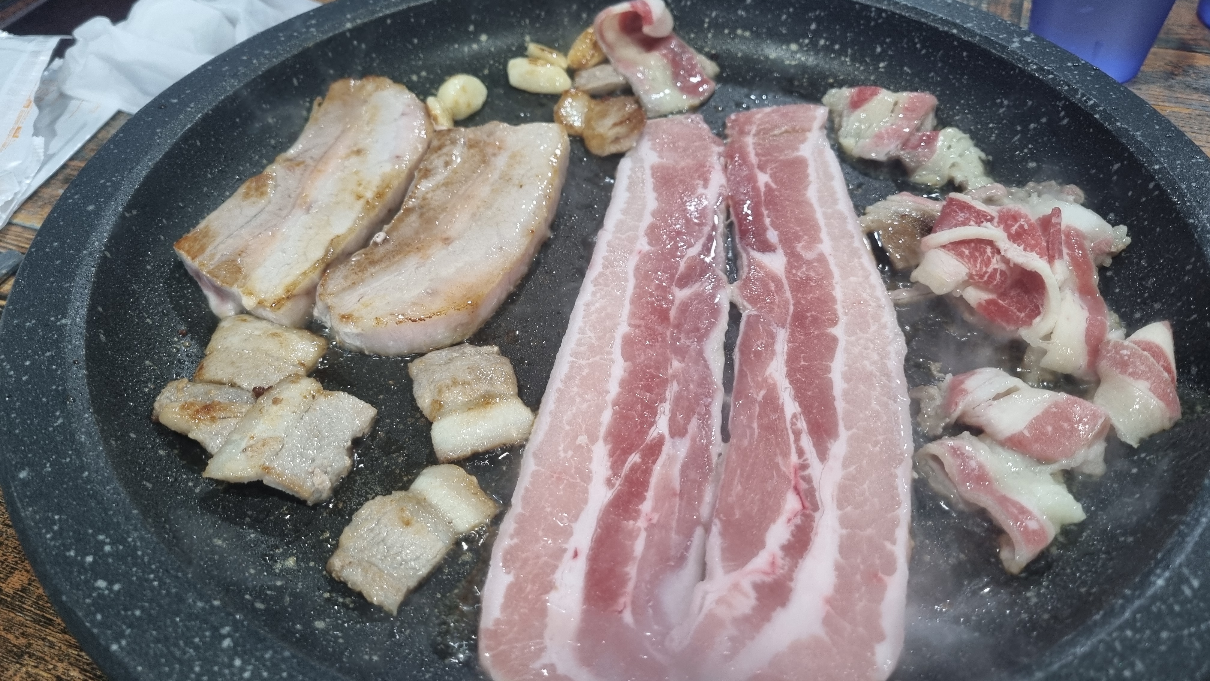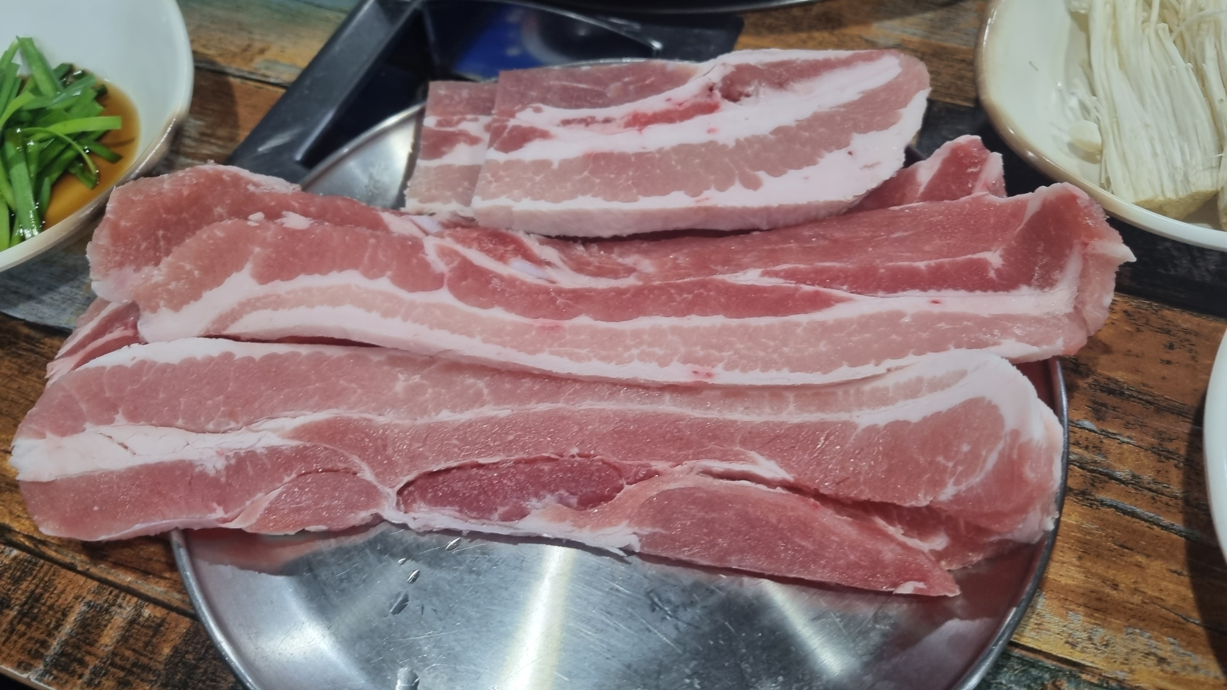 얇은 삼결살과 우삼겹을 구워먹는데 필자는 우삼겹이 더 맛있습니다. 물론 삼겹살도 아주 맛있으며 저렴해서 맛없다는 편견은 없는듯 합니다.