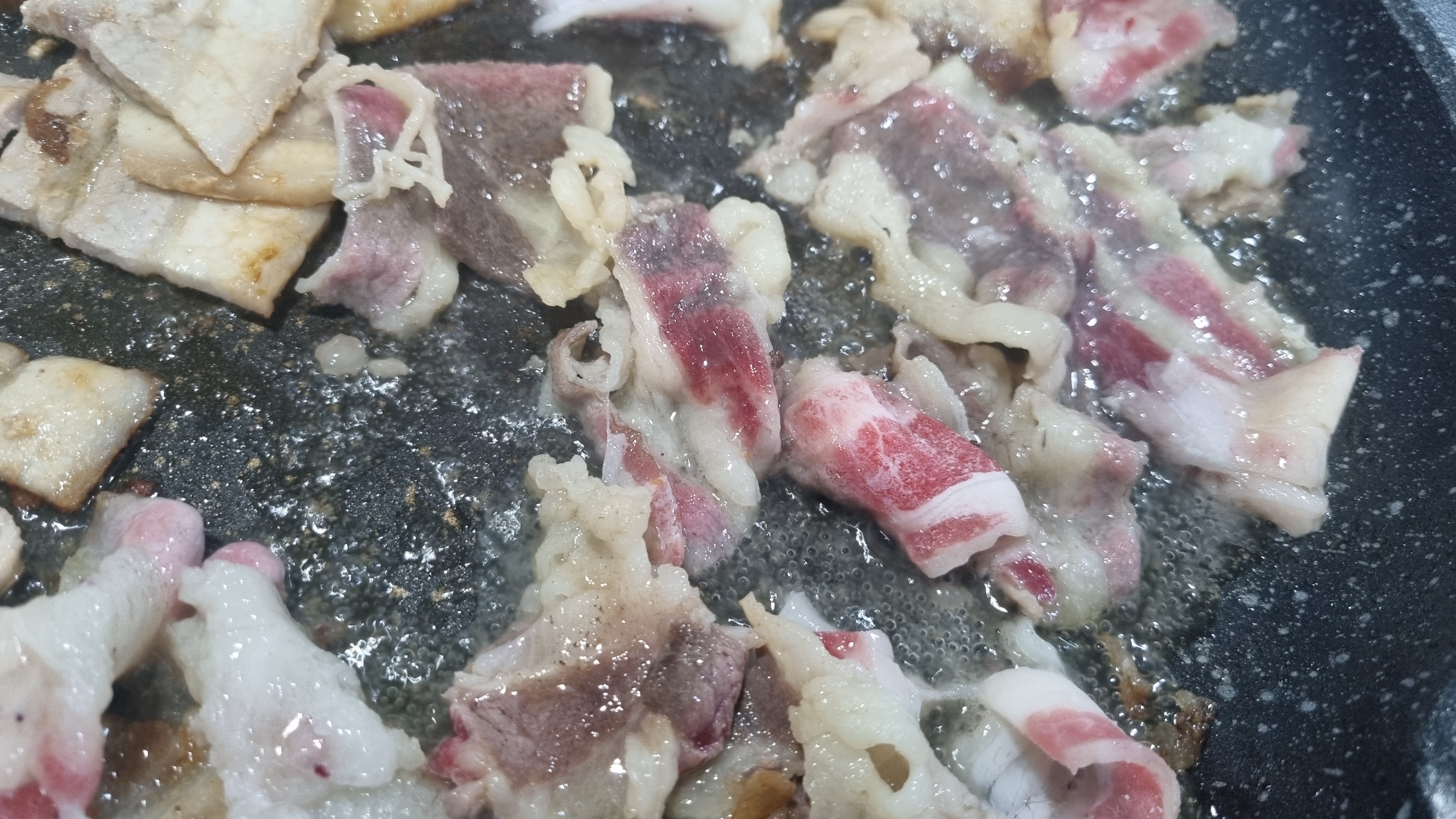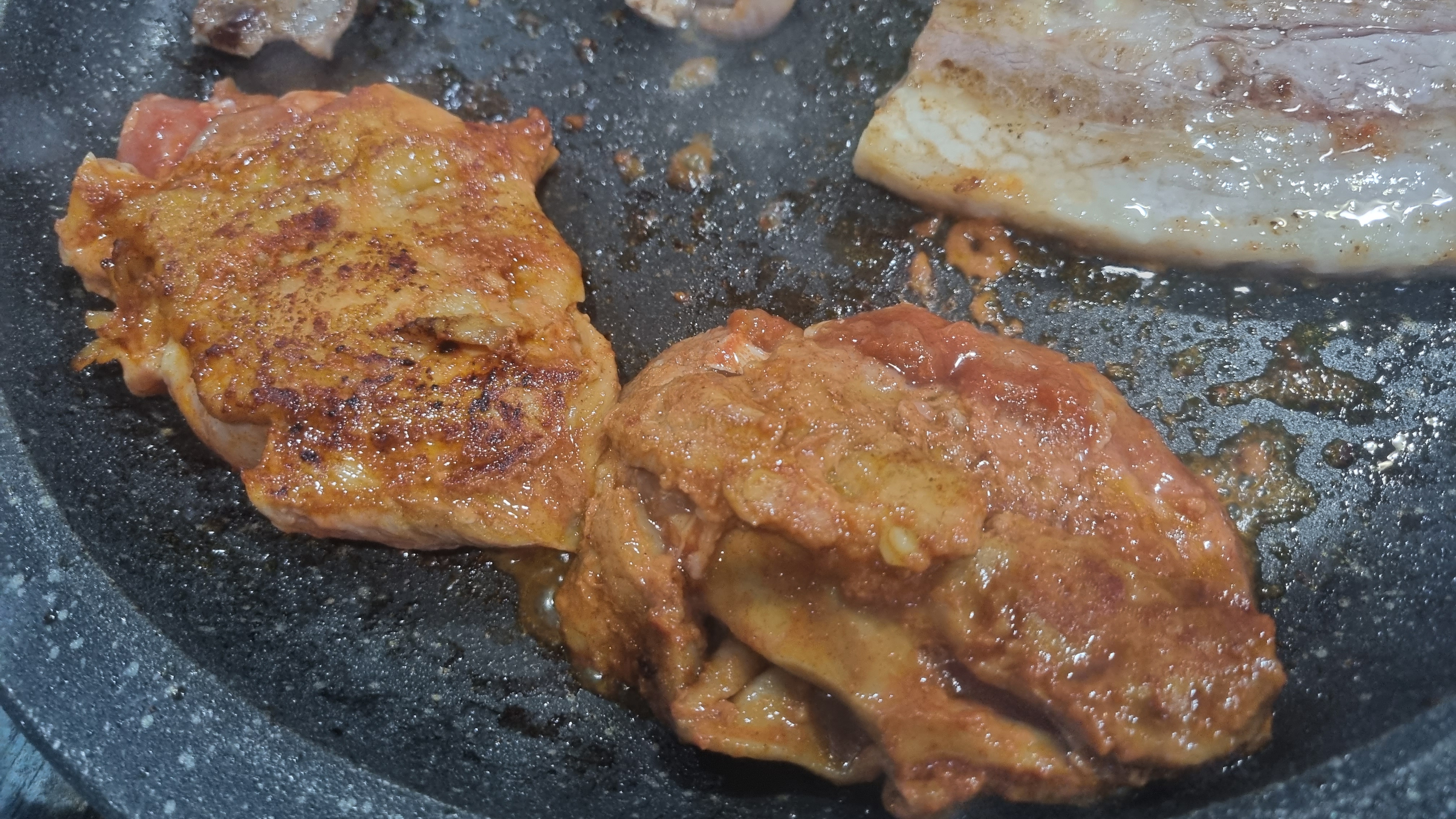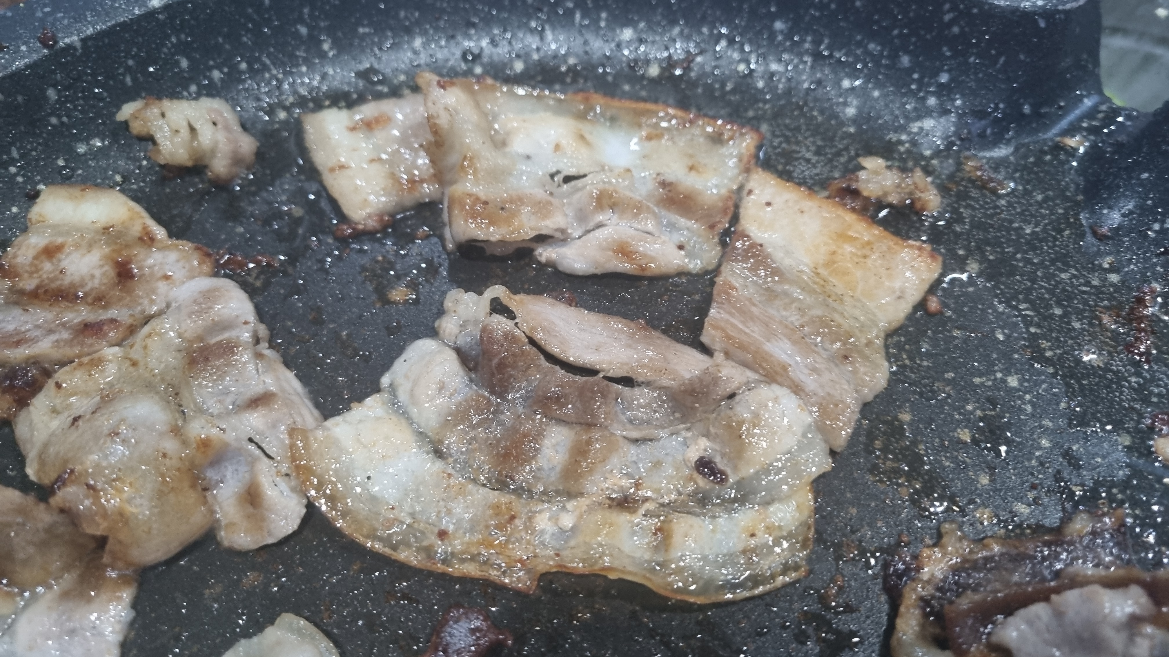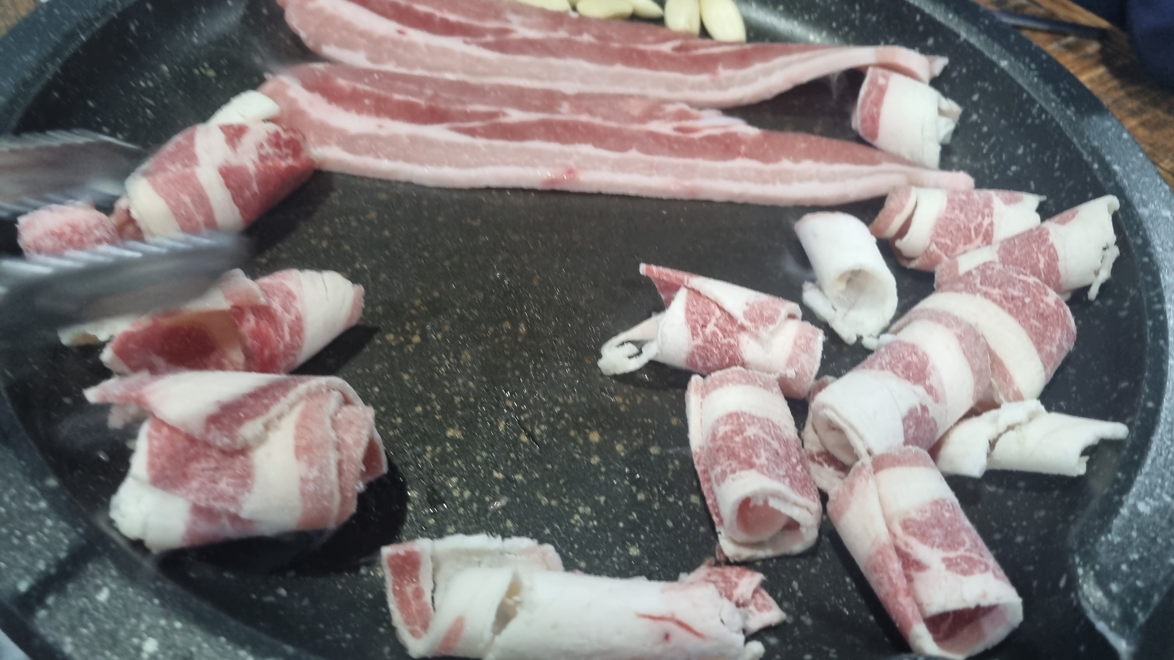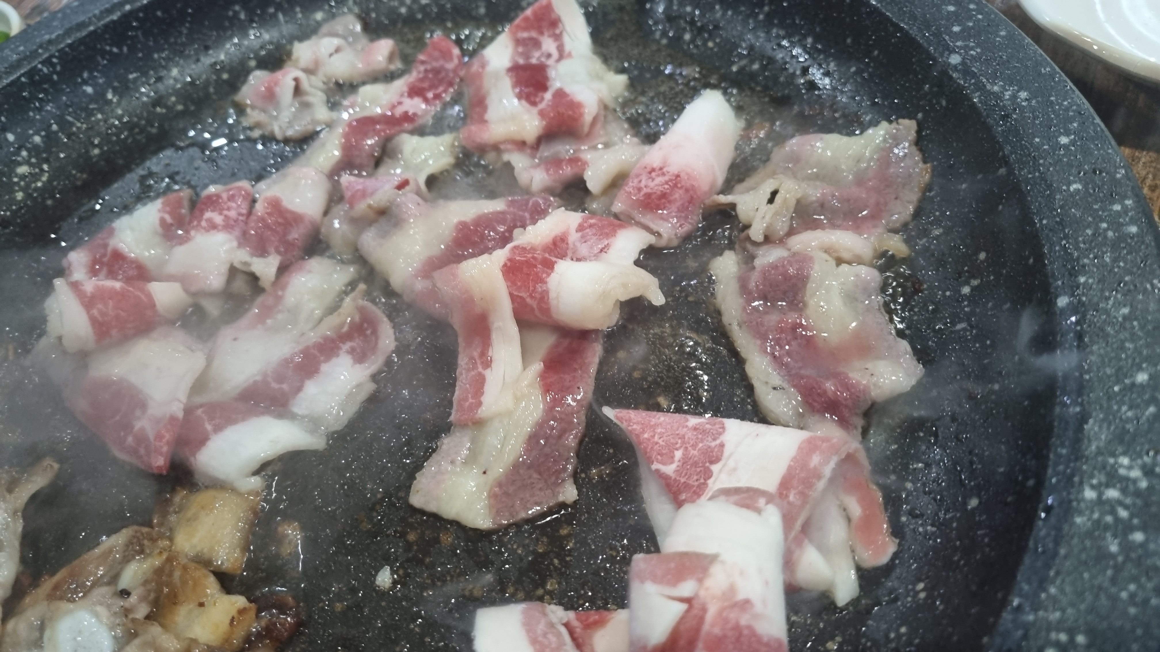 이어서 두꺼운 삼겹살과 목살을 먹으려 했는데 우삼겹이 맛있어 조금 더 구워먹고 이어서 목살을 구울 예정입니다.