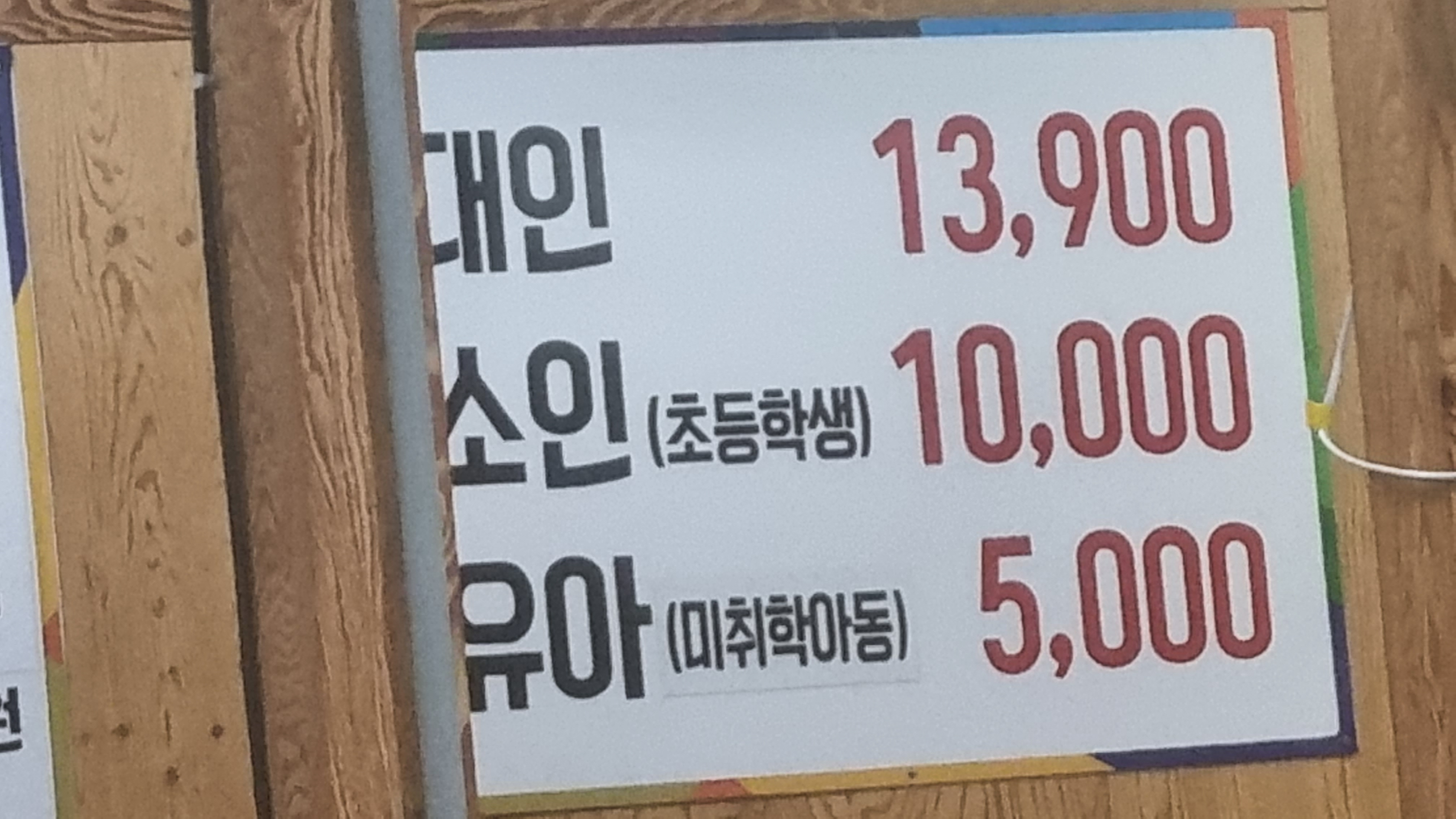 가격이 엄청나게 저렴합니다. 중학생이상이 13,900원, 초등생이 10,000원, 미취학 아동은 5천원으로 최근에 삼겹살 150g 1인분인 14,000원 하는데 위 가격이면 너무나 저렴합니다.