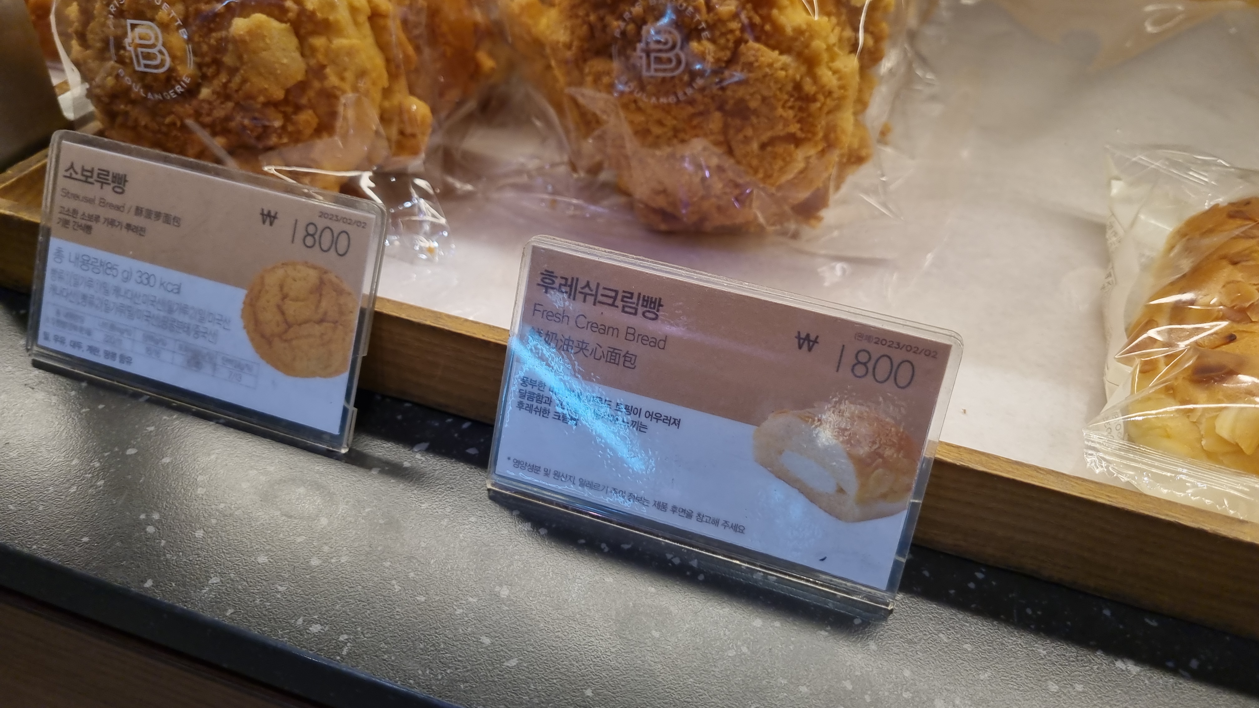 빵값도 많이 올라 소보루빵이나 플래시크림빵등도 1개에 1,800원 정도 하는데 그나마 저렴한 편으로 더 비싼 빵이 엄청 많습니다.