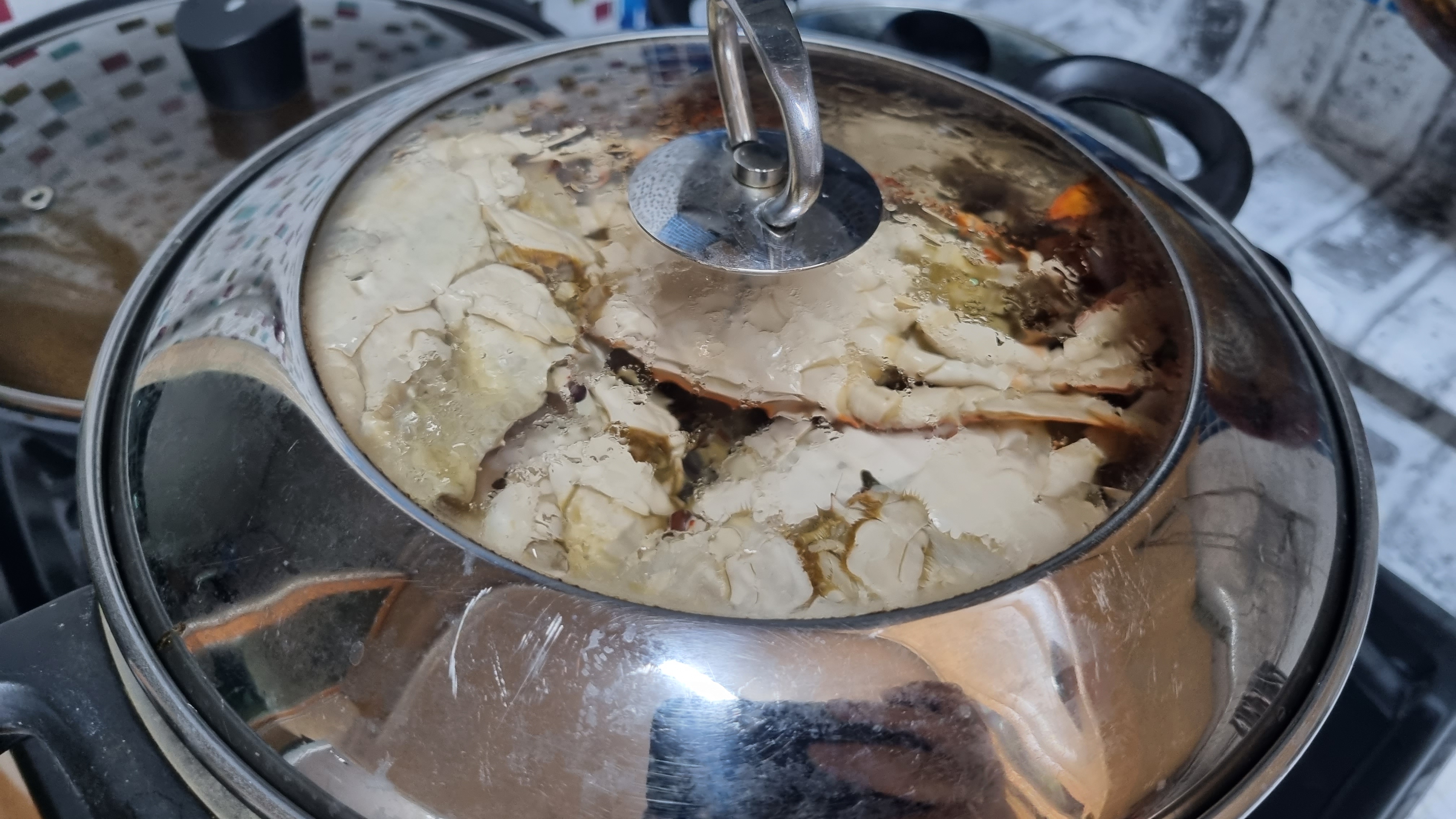 이렇게 시간을 맞추어 찐 다음 뚜껑을 열고 꽃게를 꺼내는데 상당히 뜨거우므로 고무장갑을 착용하고 작업을 하는 것이 좋습니다.