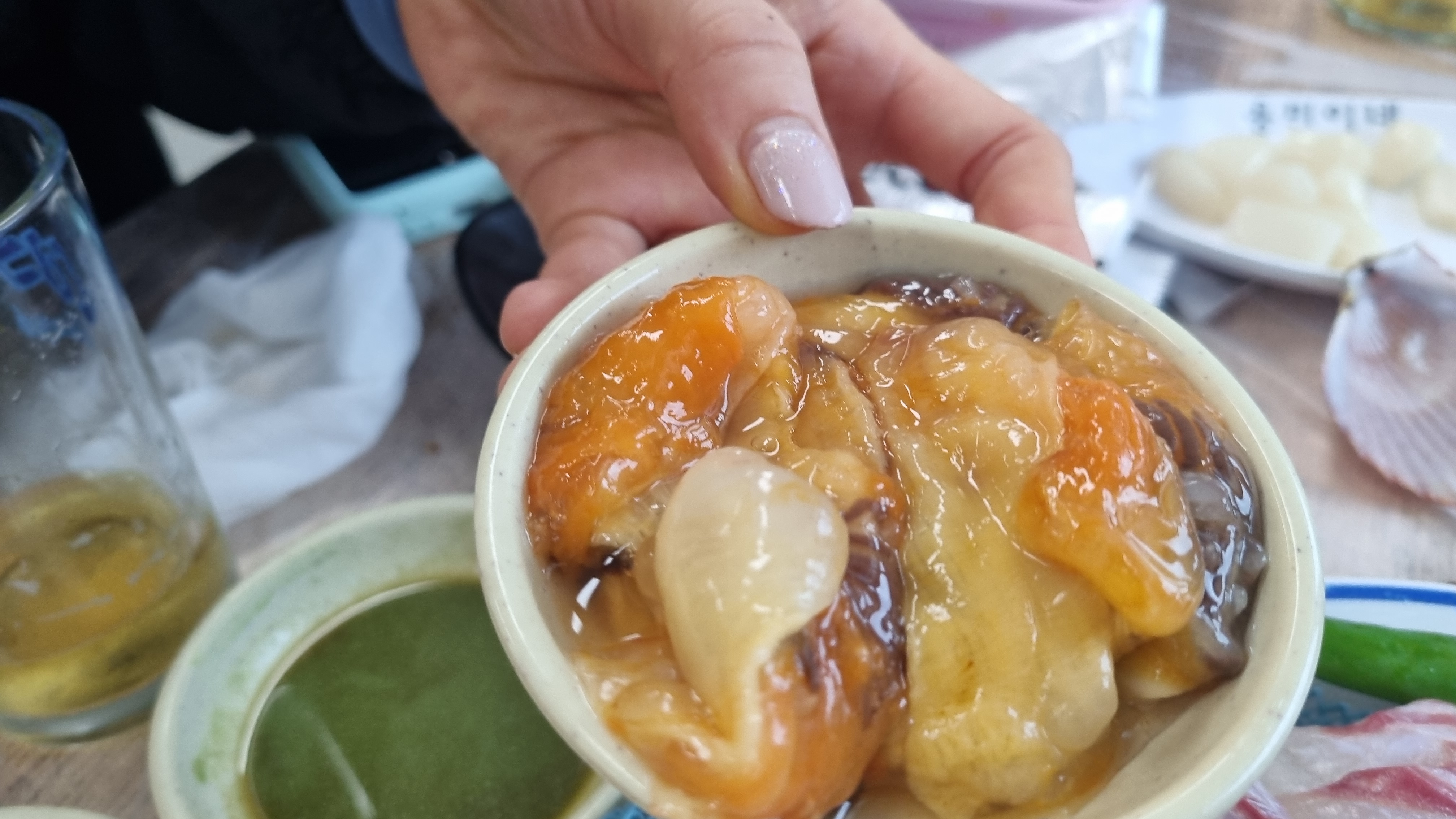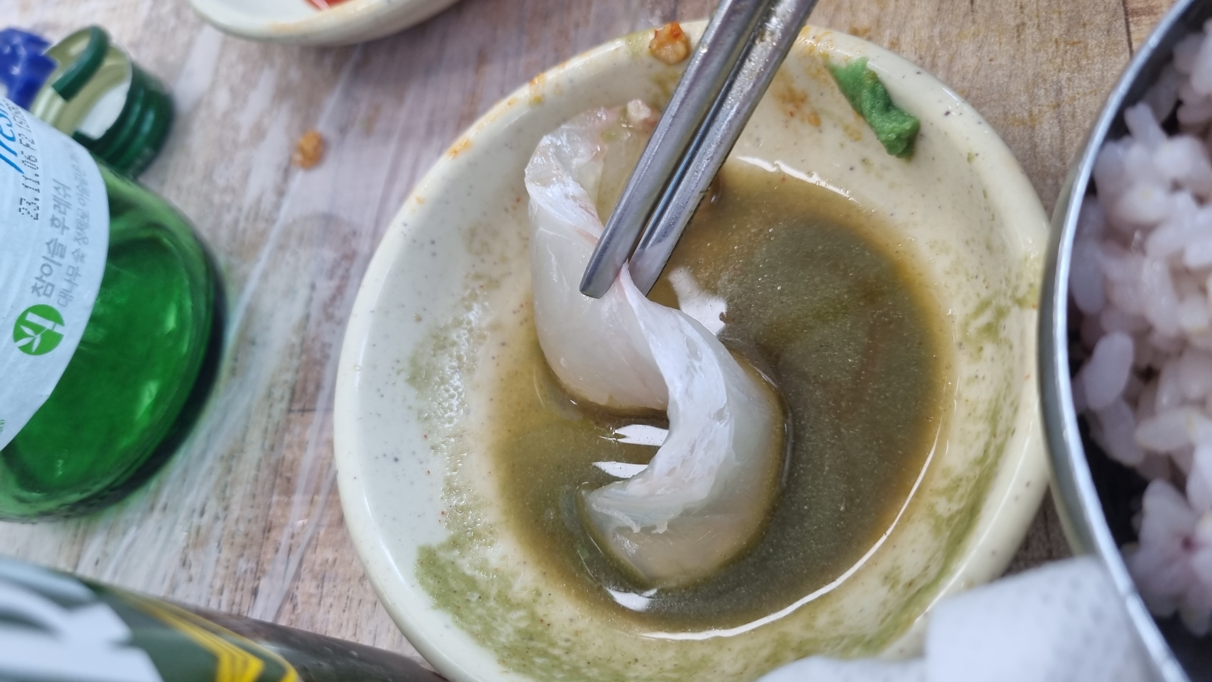 생산 내장 젓갈이 나오는데 정말 맛있습니다.