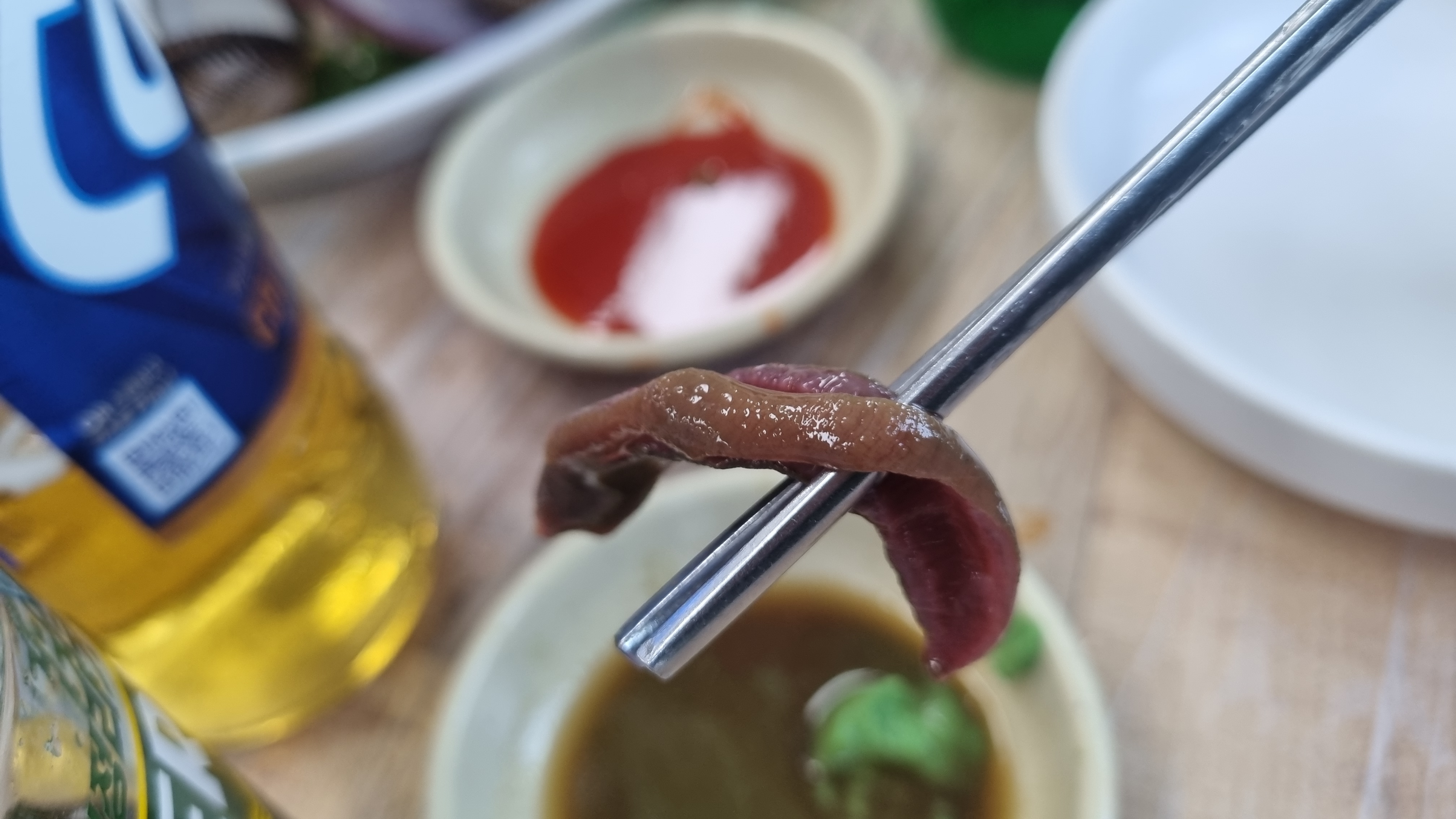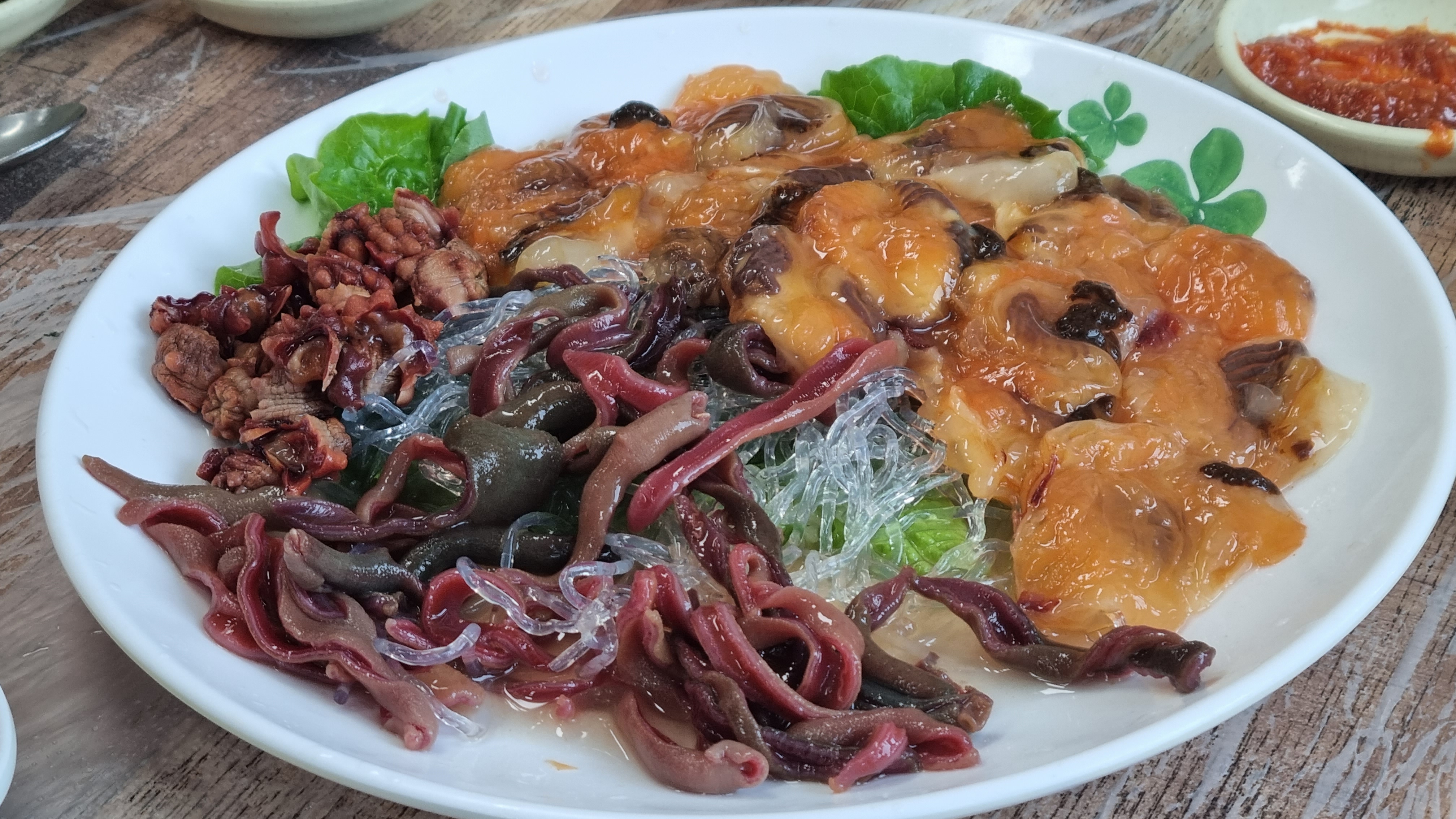 이것은 개불을 주문했는데 멍게와 더불어 2만 원짜리입니다. 개불이 먹고 싶은 일행들이 있어 주문을 했는데 역시 생선회와 와 다른 특유의 맛이 있어 다들 좋아합니다.