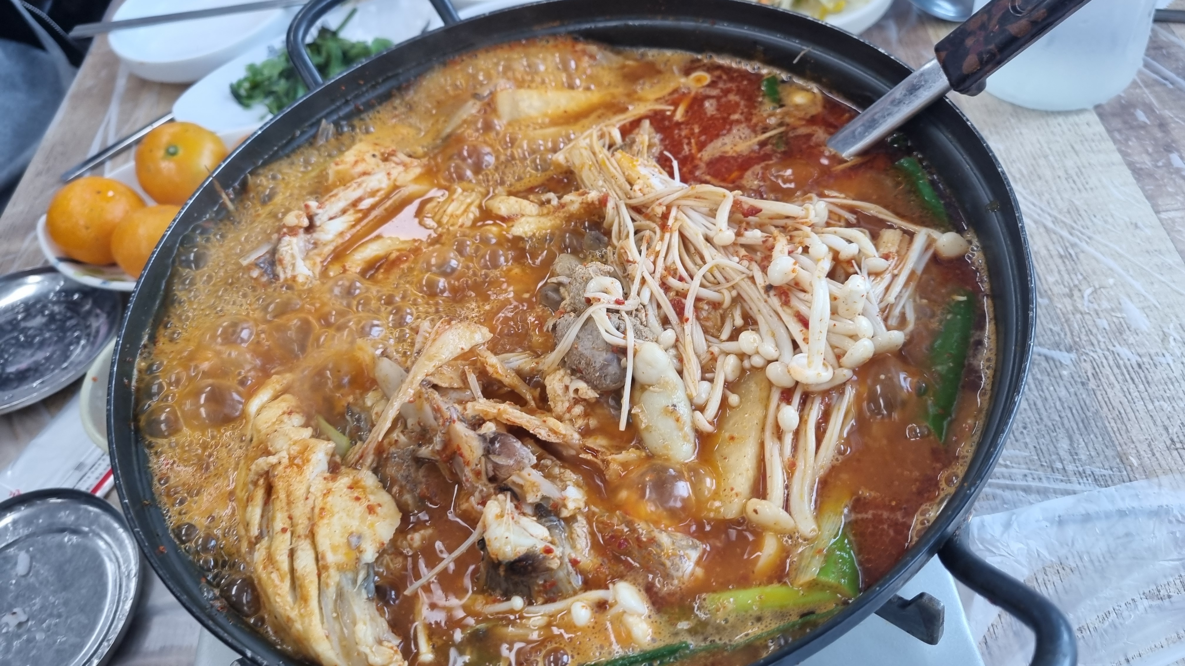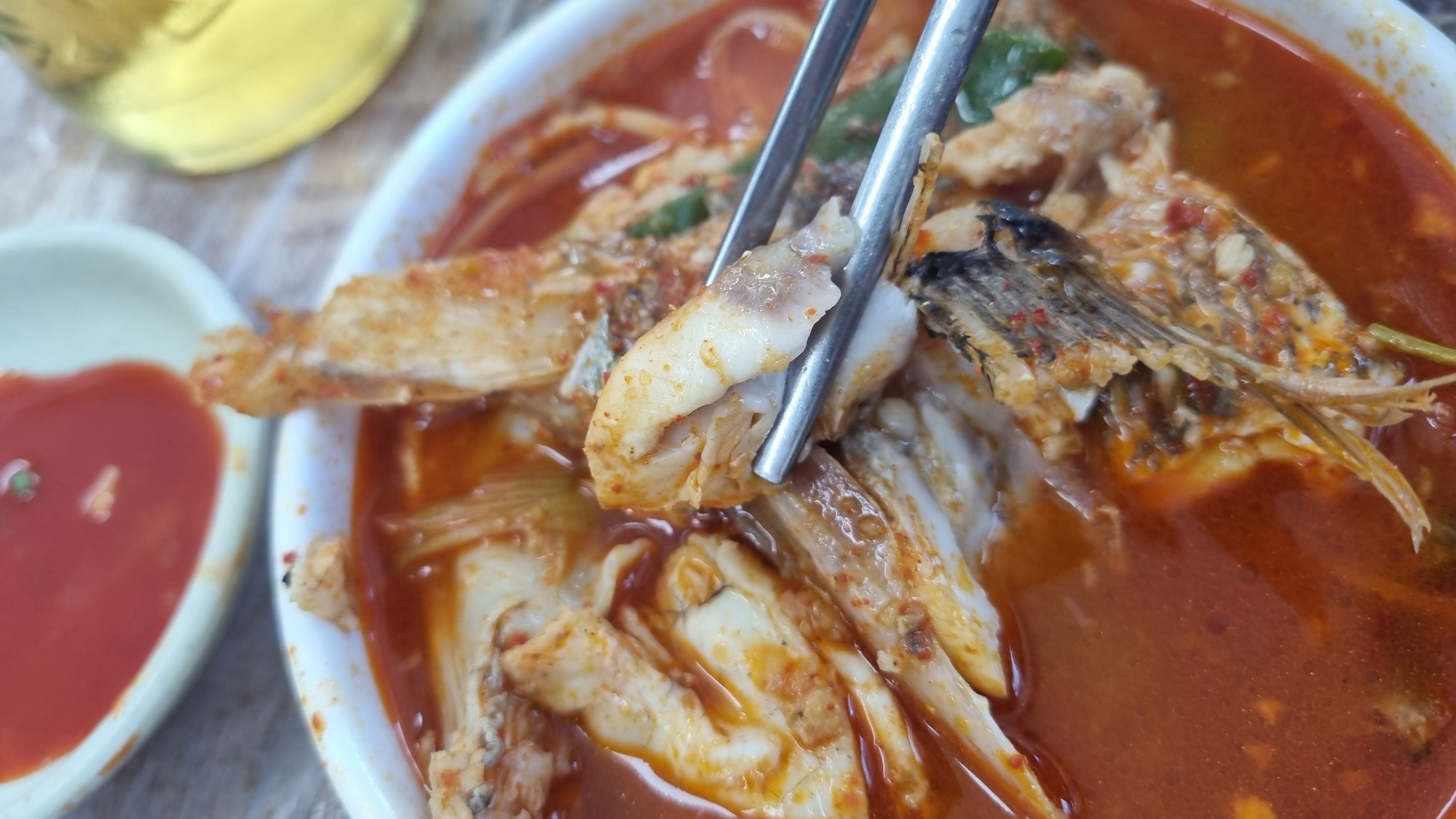 매운탕은 기본적으로 끓여서 나오지만 테이블에서 더 푹 끓여야 더 진한 국물이 나오게 됩니다. 나오는 것 조금 끓여서 바로 드시면 국물이 싱겁거나 진한 맛을 느낄 수 없을 수도 있습니다.