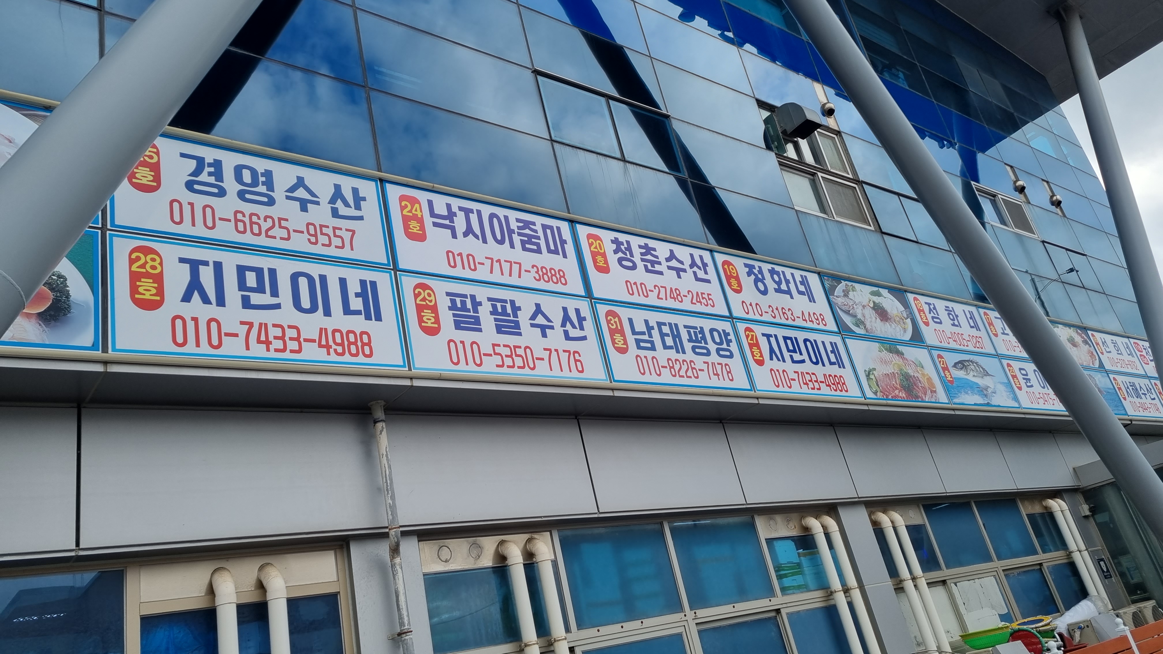 일반 회센터와 비슷하며 많은 입주 상인들이 있어 생선회를 판매하는 곳이며 약간의 흥정도 가능하며 구입 후 2층 식당에서 상차림 비용을 주고 생선회와 매운탕을 드실 수 있는 구조입니다.