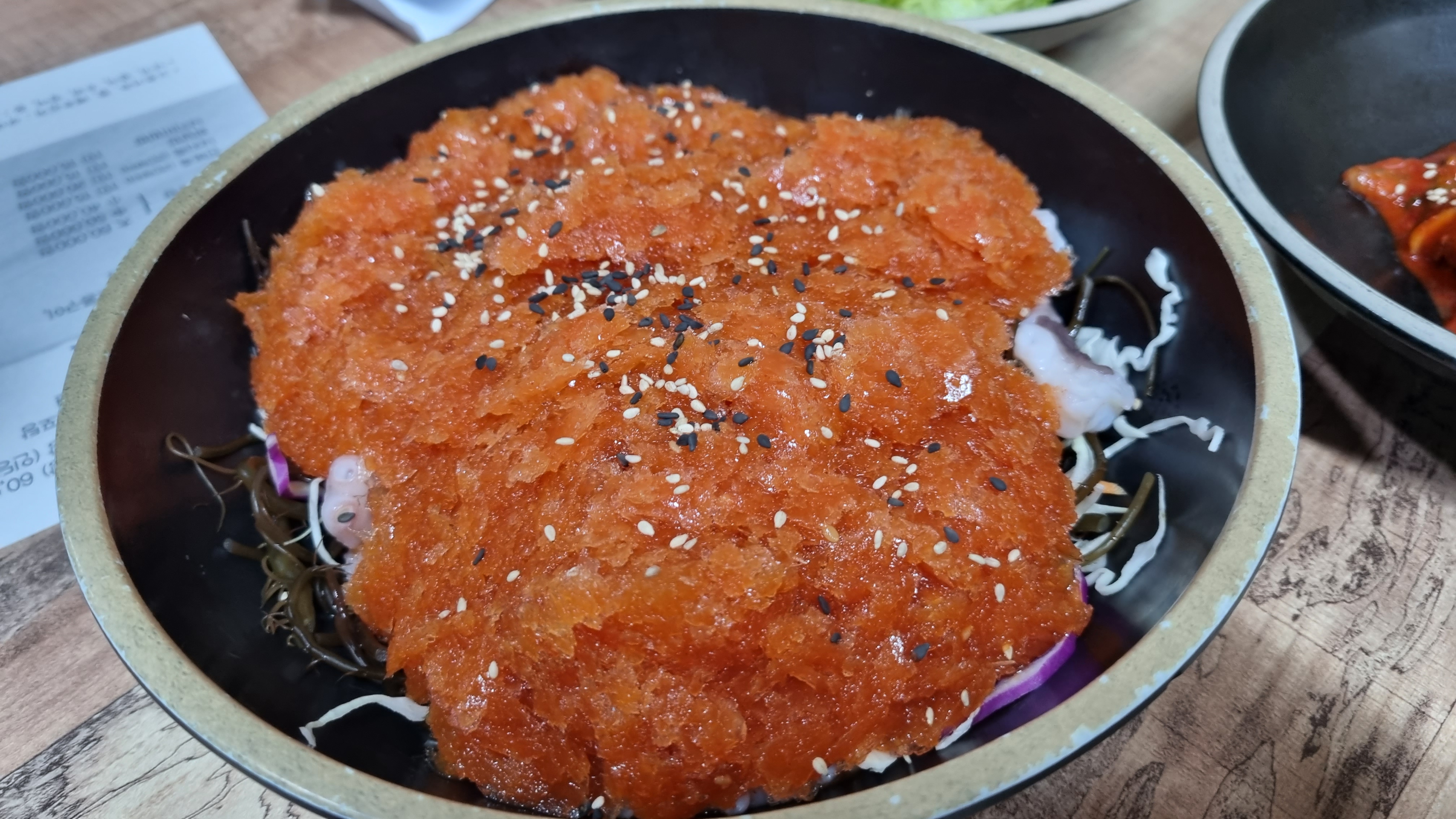 탕탕이라고 불리는데 정말 쫀듯하고 살아 있고 작아서 더 맛있습니다. 적당한 양이 나오는데 분위기도 있고 현지에서 나오는 것이라 그런지 색다른 맛을 느낄 수 있습니다.