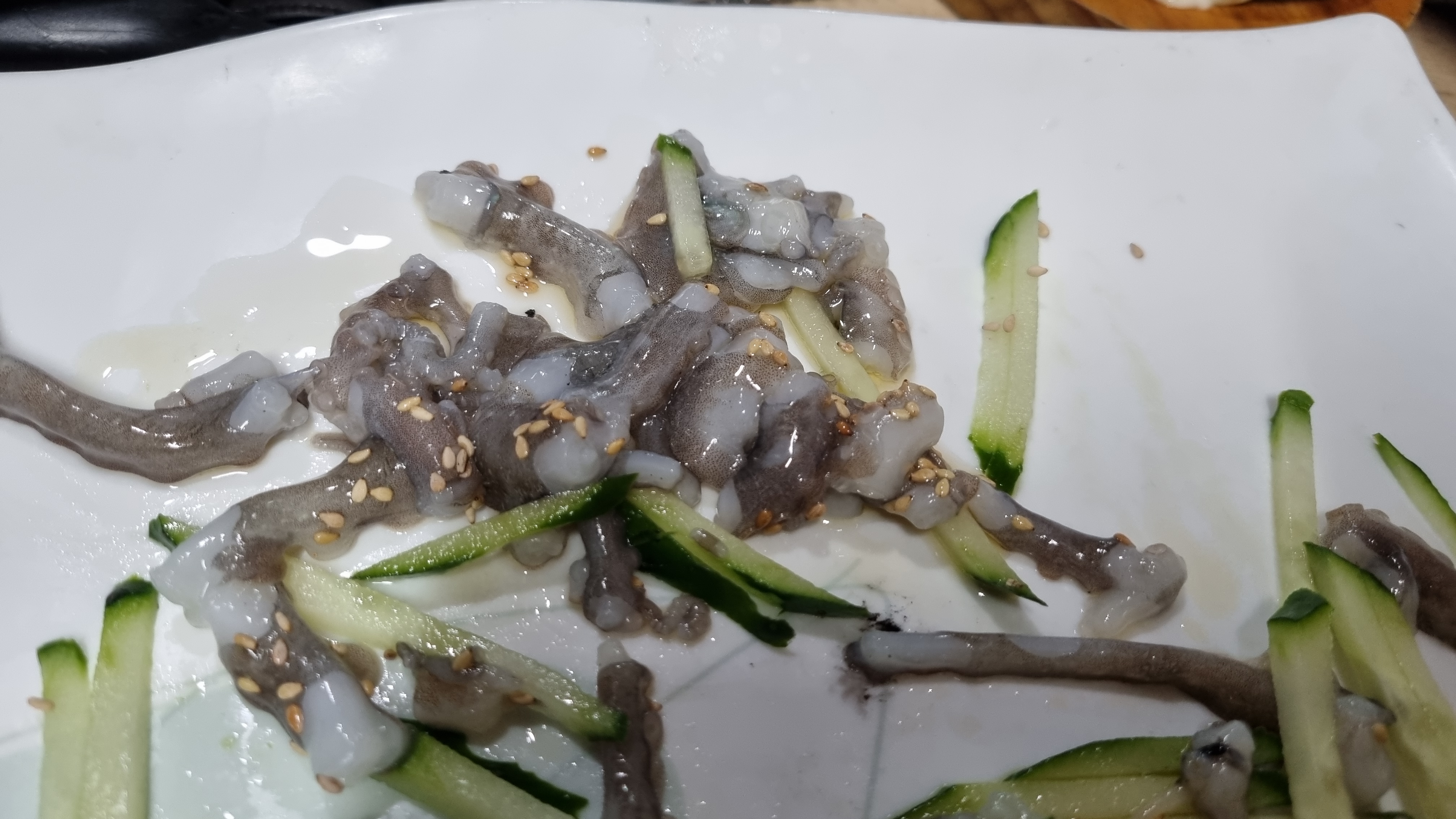 홍어회와 간제미회가 나오는데 요리가 아닌 기본반찬도 괜찮게 나와 안주로도 좋고 맛을 느끼는 식감도 좋습니다.