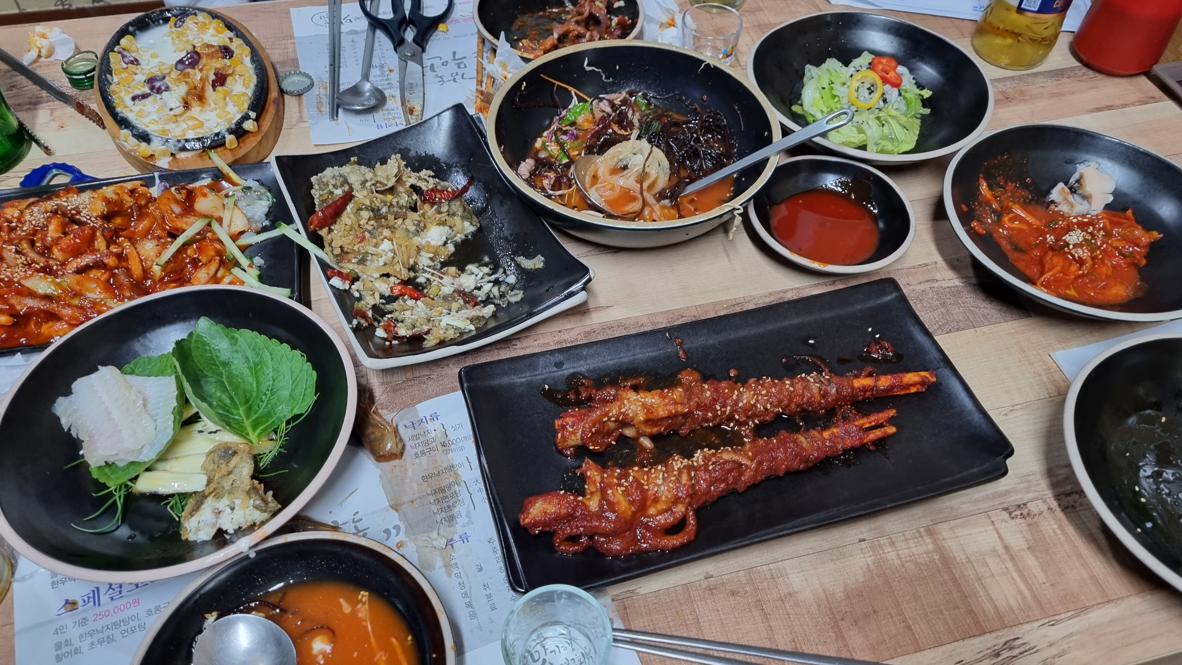 거의 대부분 음식을 먹어가는 중인데 이제 연포탕에 밥을 먹을 차례입니다.