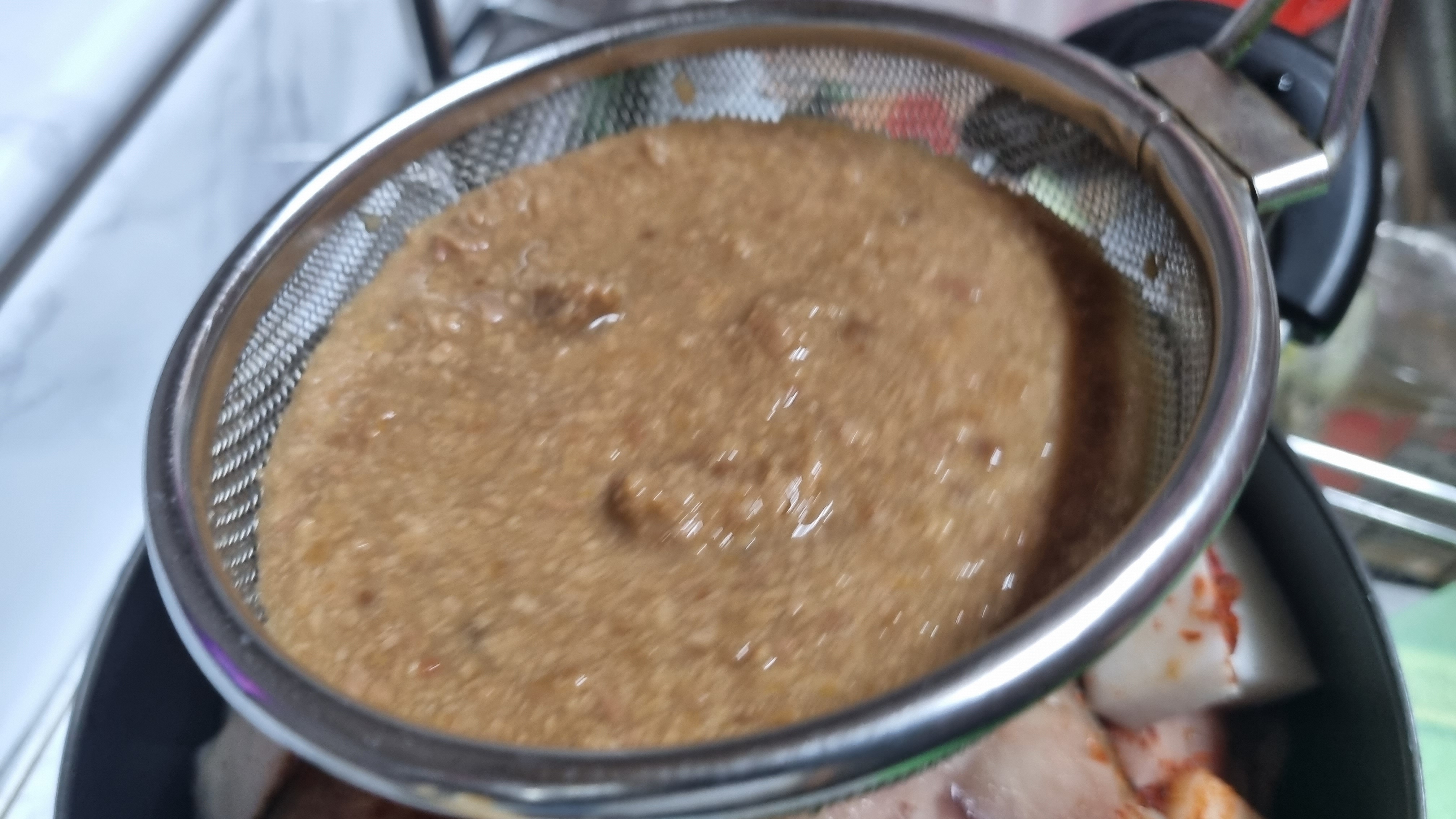 된장은 어른 수저 기준으로 3큰술을 가득 담아 그대로 넣어 풀어도 되고 조금 더 깔끔하게 하려만 망에서 물에 풀어 큰 건더기를 최대한 걸러서 넣으면 깔끔하고 좋습니다.