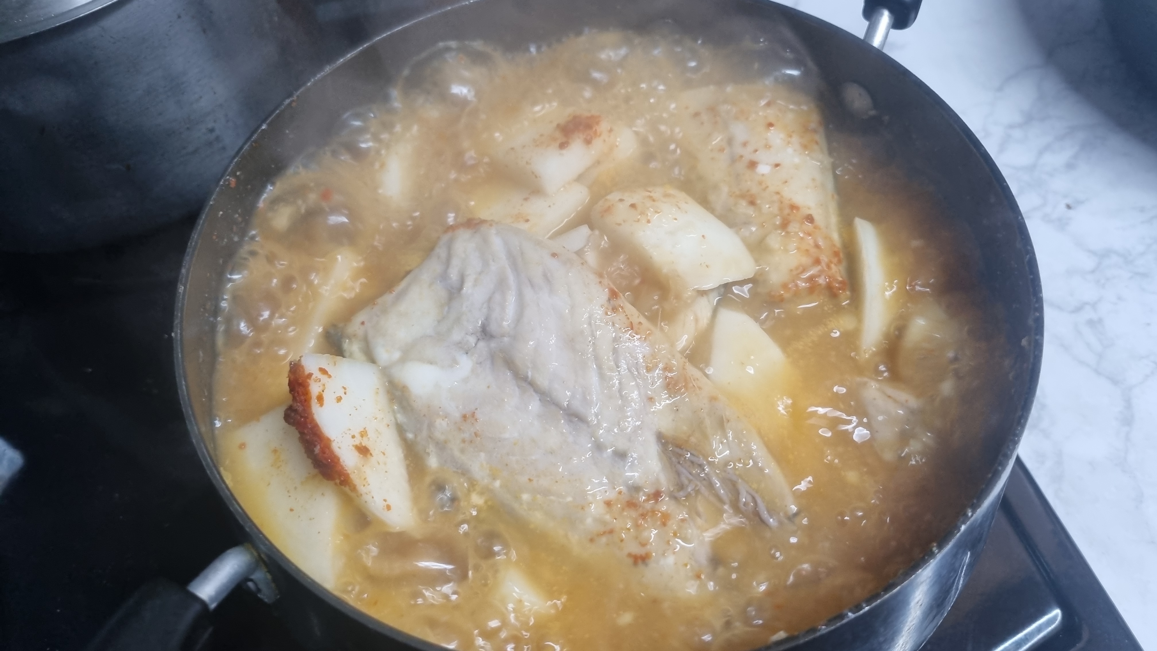 이어서 가스렌인지나 인덕션의 최고 불에서 끓여주는데 국이 끓기 시작하면 불을 중간으로 조절하여 계속 끓여주시면 되겠습니다.