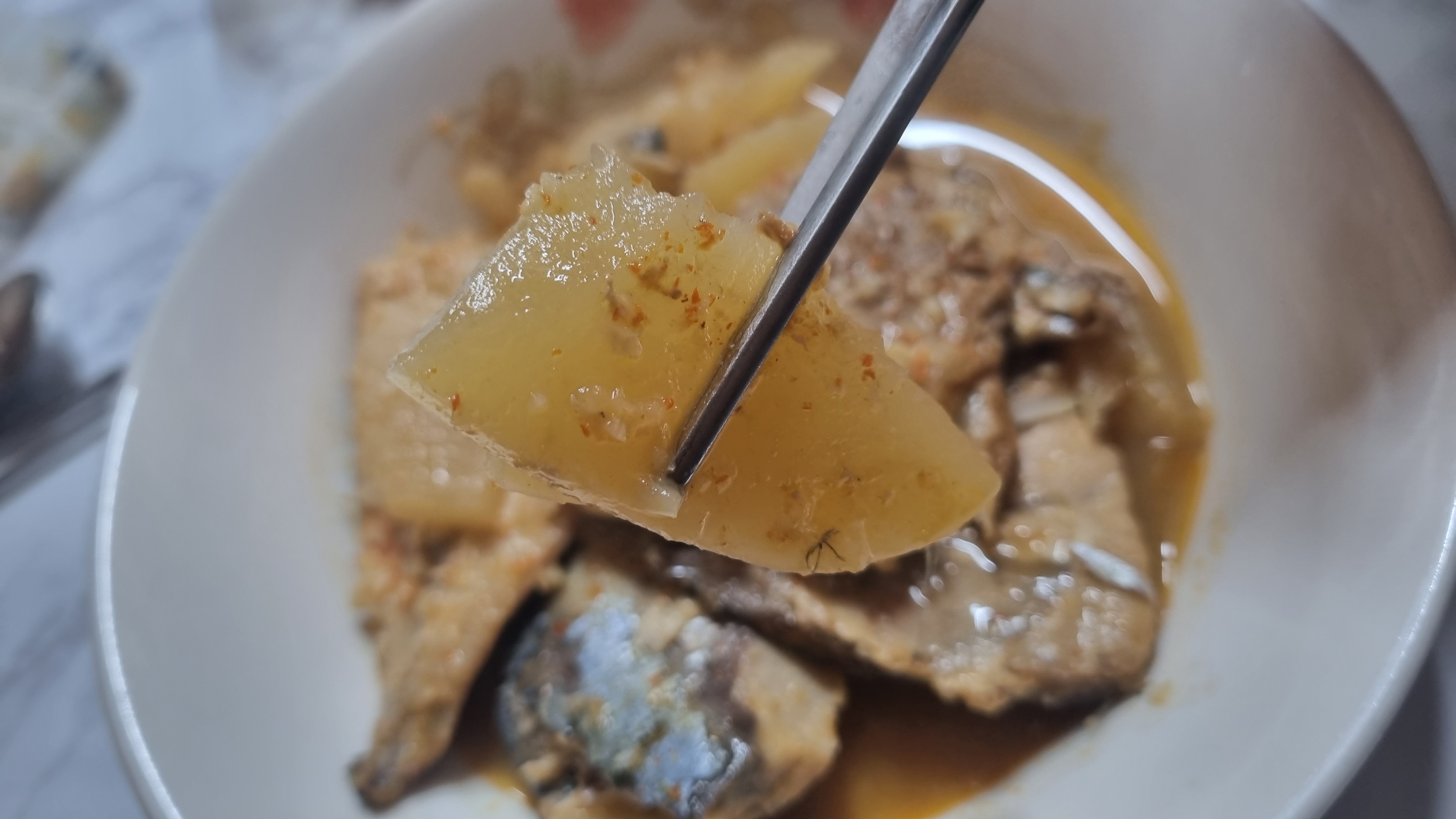 불을 중간으로 줄여 계속 끓일 때 국물 맛을 보고 간을 보아 입맛에 따라 보충해 주고 무도 하나를 맛을 보아 잘 익었는지를 확인하는 것이 좋습니다.