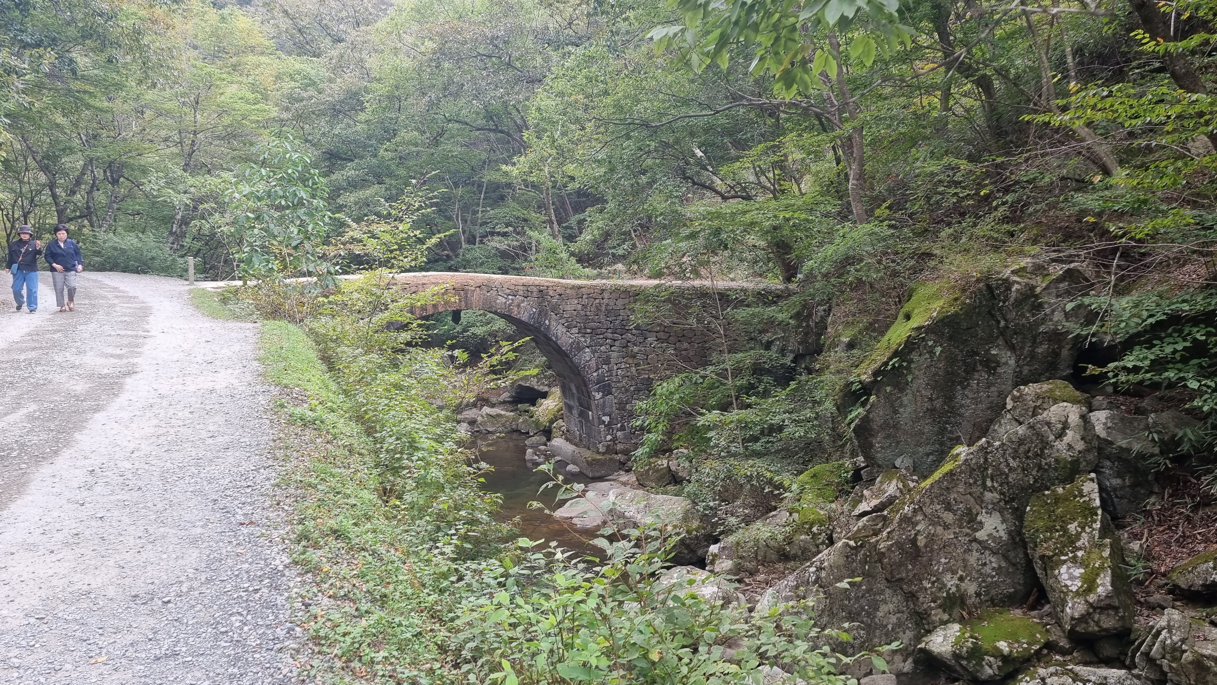 산책로 같은 길을 걷는 동안 바로 옆에는 계곡이 흐리는데 시원함을 느끼고 여름에는 이곳에서 수영도 많이 하면서 피서를 즐기는 곳입니다.
