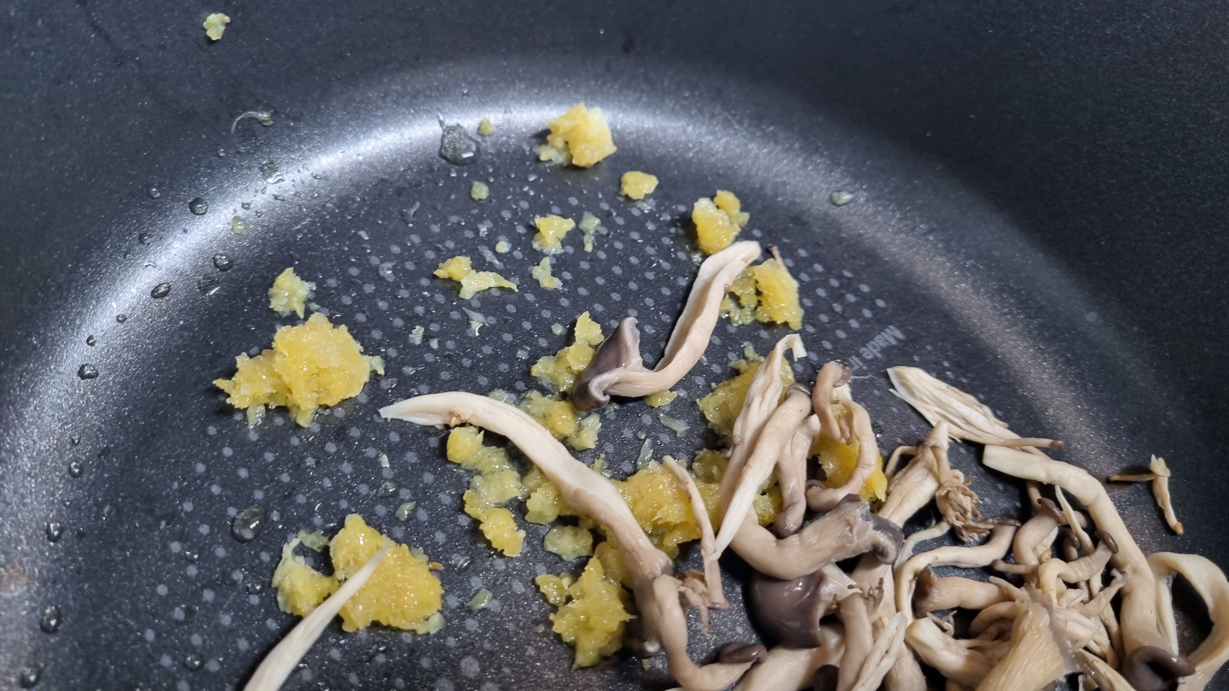 버섯의 물끼를 최대한 빼고 프라이팬에 넣습니다.