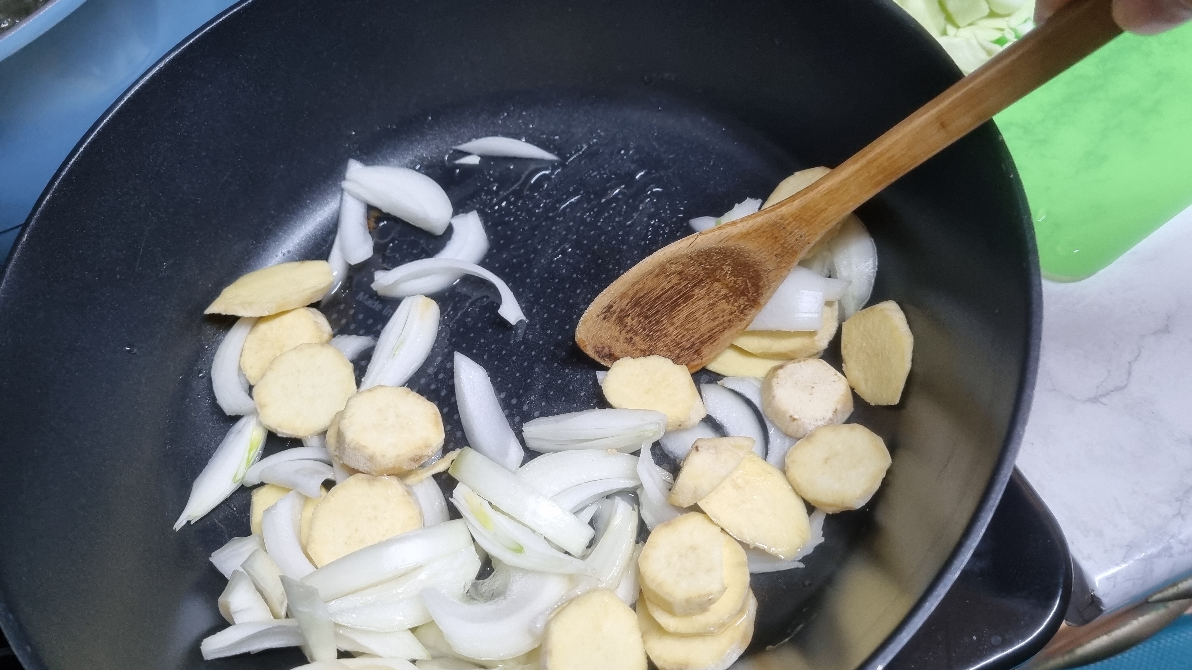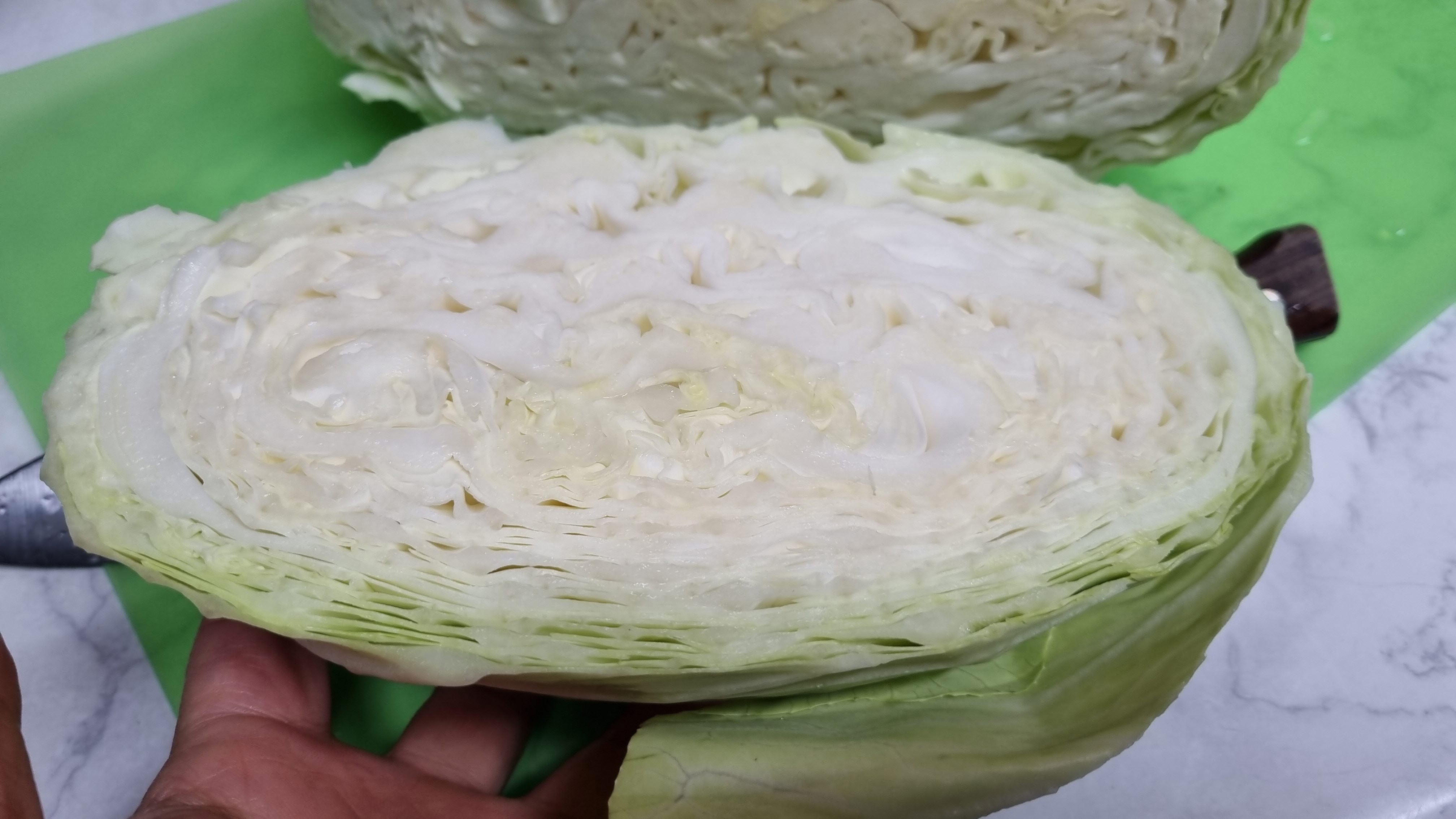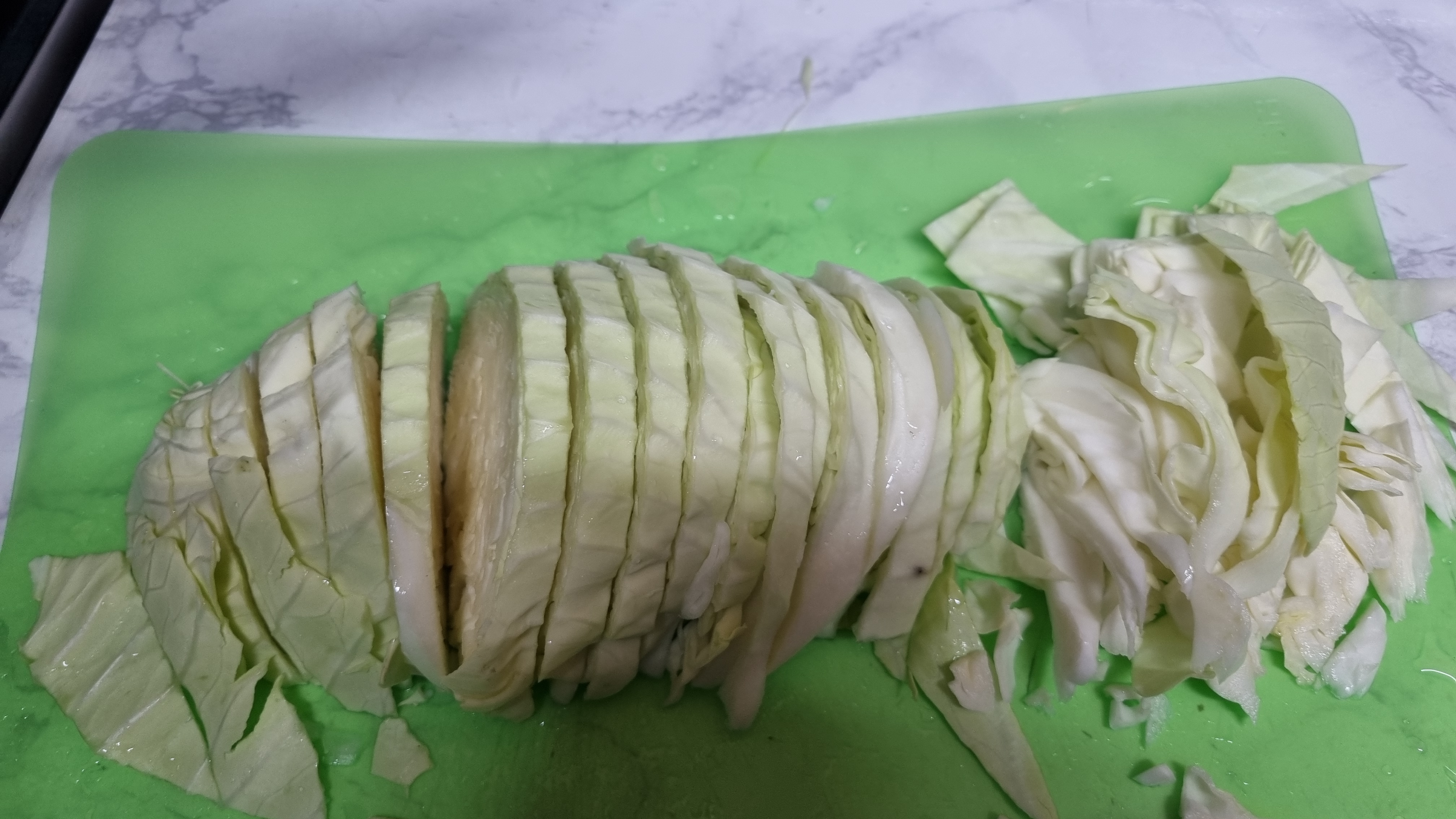 양파는 평소 국이나 볶음에 사용한 크기대로 자르고 양배포는 약 1cm 정도의 두께를 잘라주면 적당하는데 이것도 권장사항이고 본인의 판단과 입맛에 따라 달리 해도 됩니다.