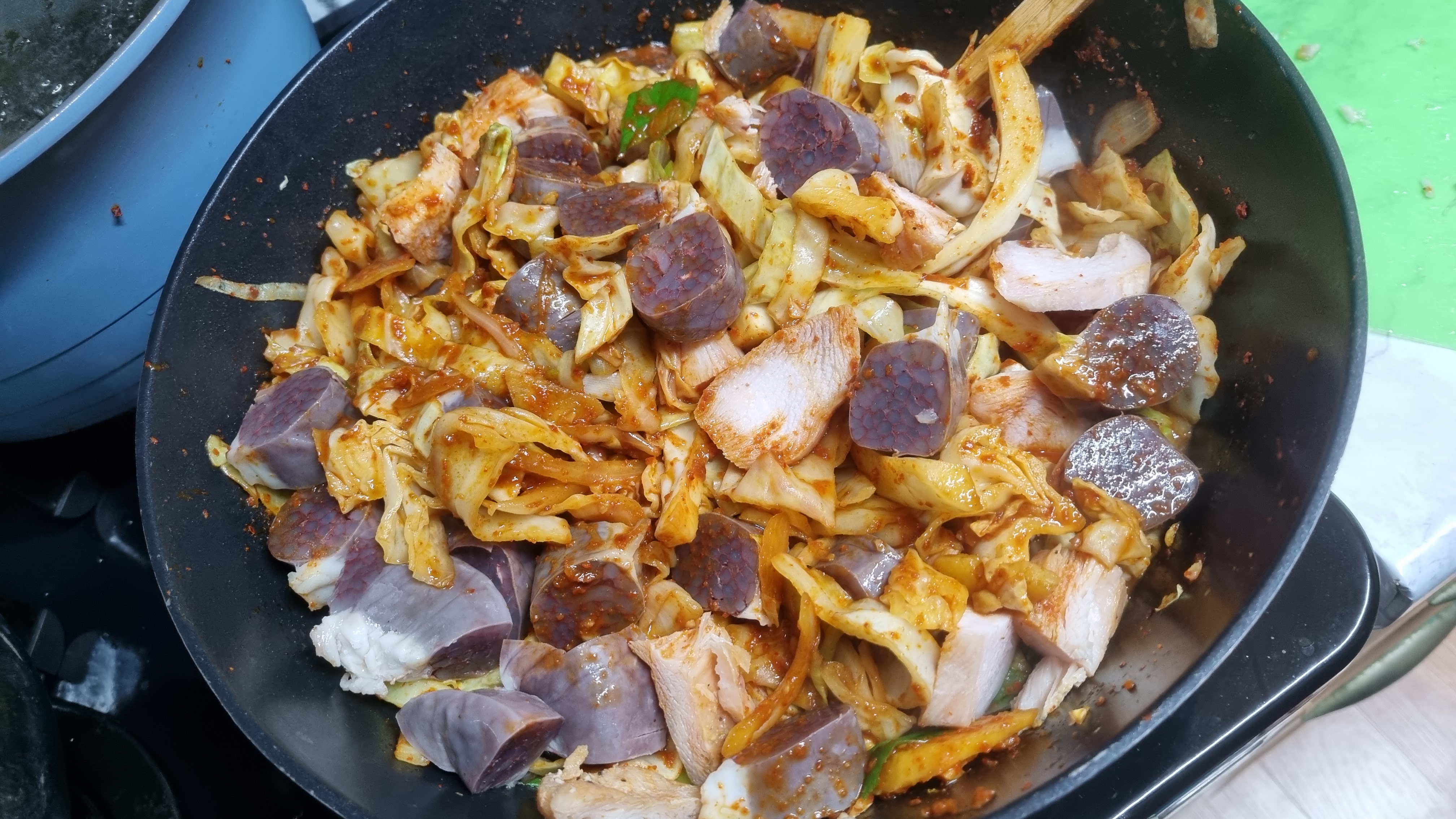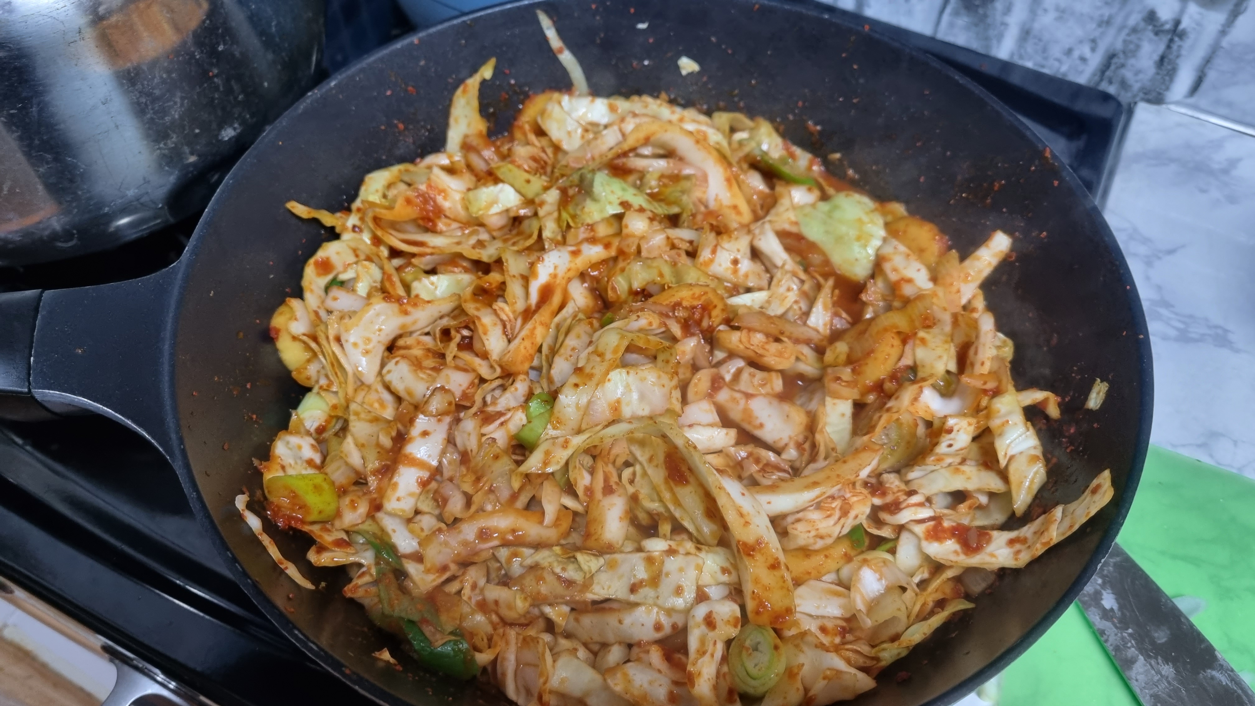 이렇게 양배추는 2~3분 정도 볶은 후 순대를 넣으시면 되겠습니다.