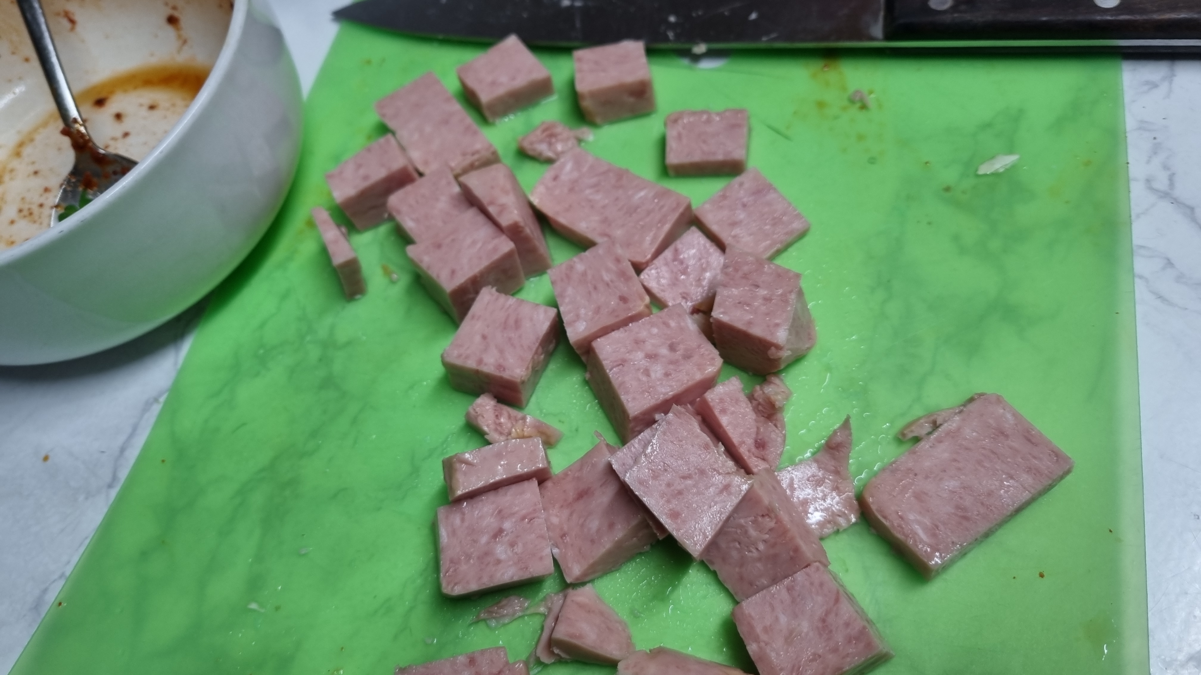 위의 고기는 닭고기인데 집에 삶아진 닭고기가 있어 그냥 한번 넣어보았습니다. 처음에 떡볶이용 떡을 넣으려 했는데 미처 준비를 못해 스팸을 잘게 썰어 넣었습니다.