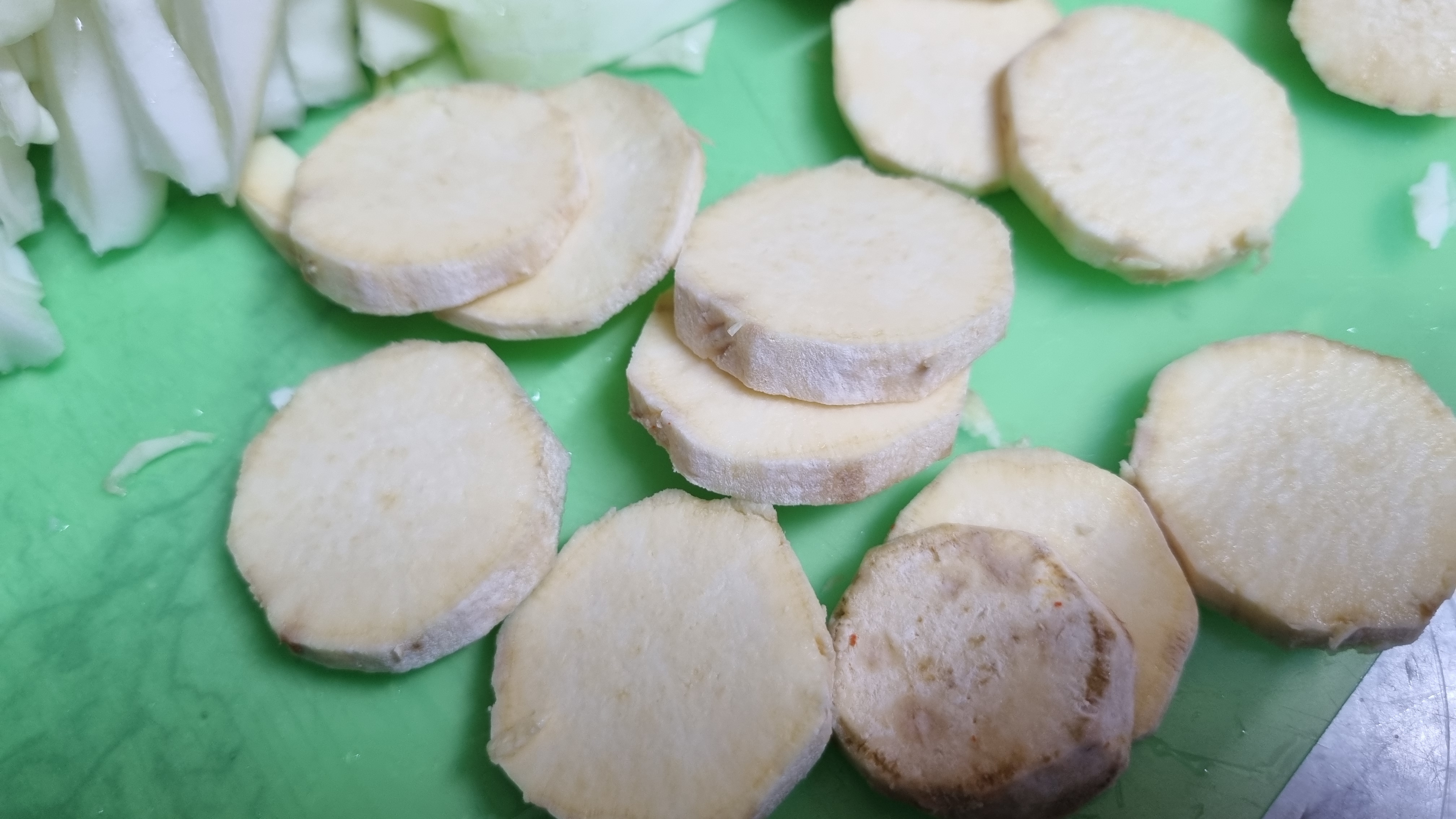 고구마가 껍질을 벗겨 보관한 것이 있어 급하게 투입하였는데 이것이 순대볶음의 맛을 한층 높여줍니다. 손질은 껍질을 벗기고 두께는 0.5cm 정도의 두께로 썰어 준비하는 것이 좋습니다.
