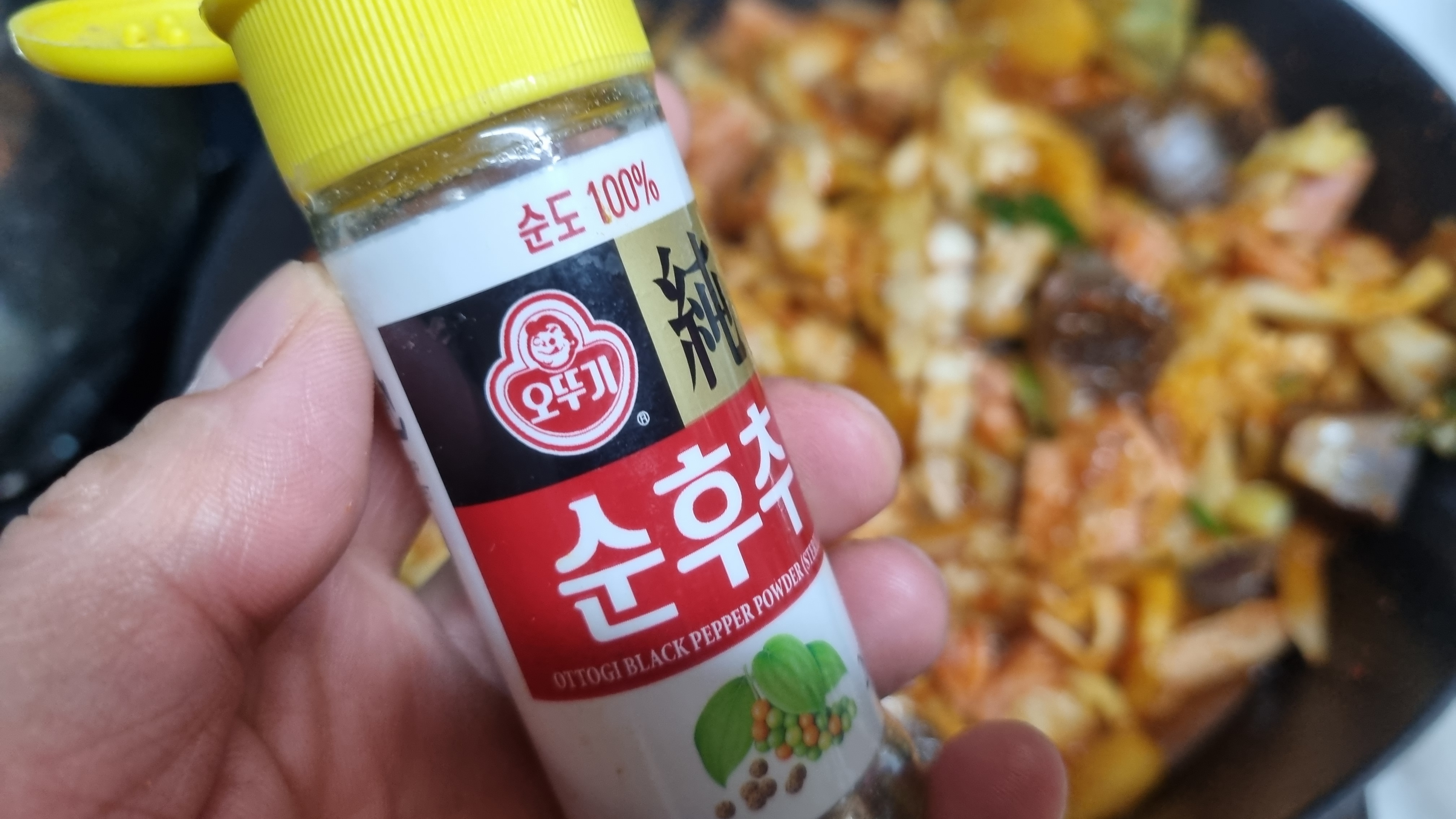 이때 조금 더 매운맛을 원하시면 후추를 뿌리시고 가족들의 입맛이 다르면 본인 접시에 순대볶음을 별도로 담아서 여기에서 후추를 뿌려도 좋습니다.