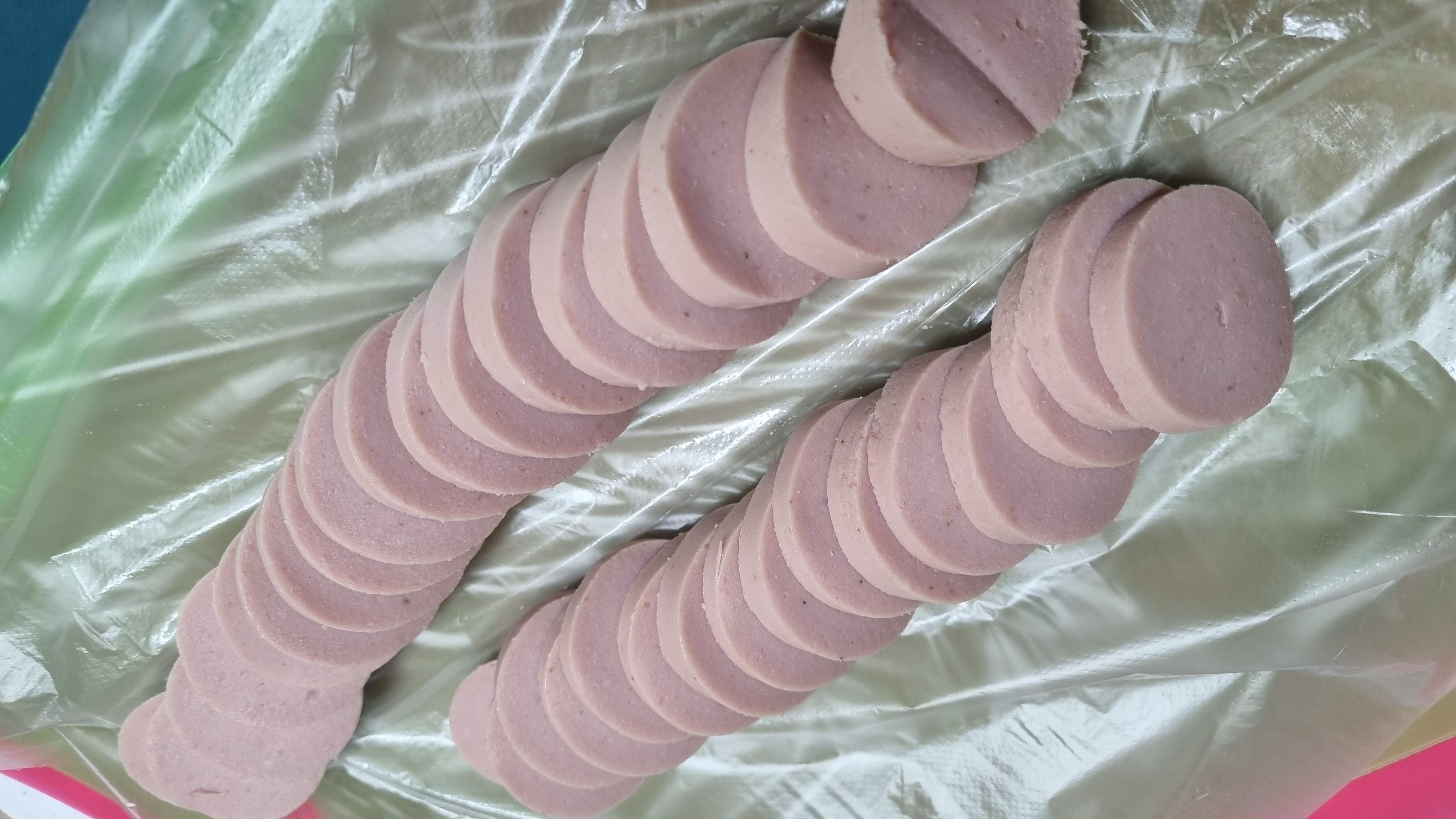 먼저 동그랑땡용 소시지를 한입에 먹기 편할 정도의 크기로 잘라주는데 너무 두껍게 썰으면 맛이 떨어질 수 있습니다. 최대 두께가 0.5cm는 넘어가지 않게 하는 것이 중요합니다.