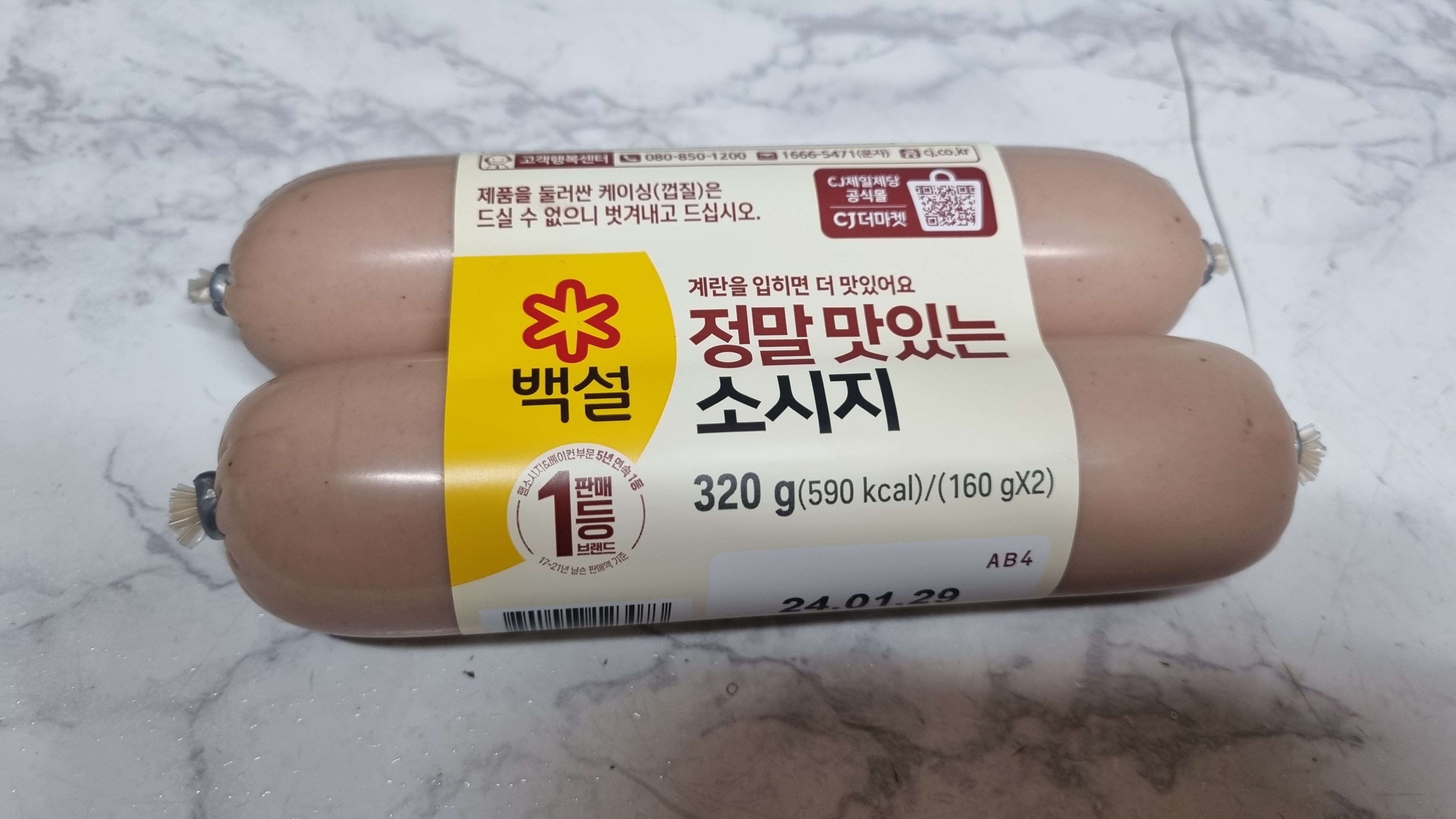 마트에서 한참을 고르다 저렴하고 맛있게 보인 소시지를 하나 발견하고 바로 구입했습니다. 320g짜리 2개인데 이것을 이용하여 계란과 함께 맛있게 만드는 과정을 아래에서 함께 하겠습니다.