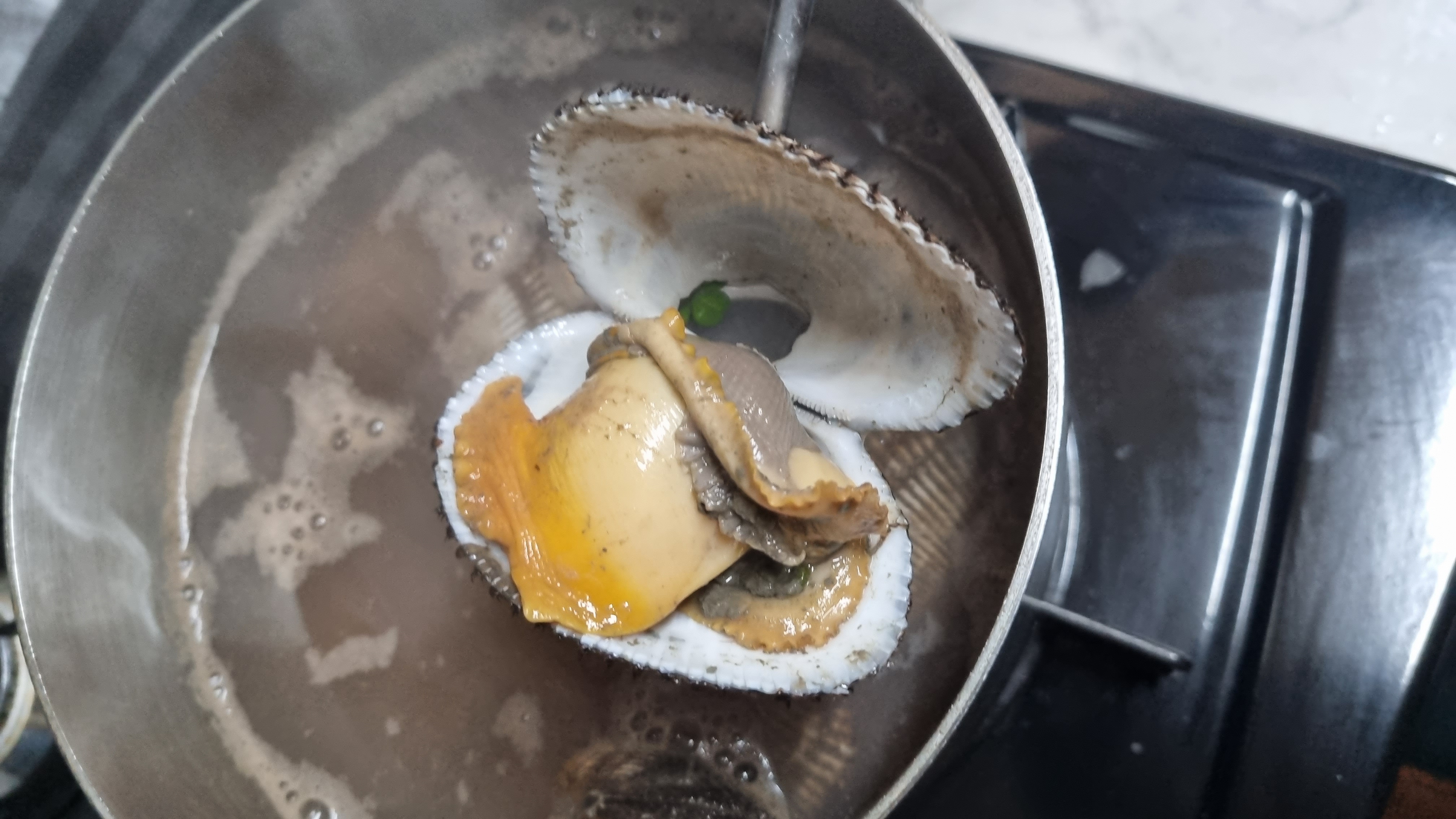 해감을 하지 않으면 삶은 후 내부에 뻘이 조금씩 있을 수있습니다. 해감자체를 못하는 경우가 많으므로 삶은후 냄비에서 꺼내면 바로 찬물로 내부를 흐르는 물로 씻어주면 깨끗하게 되어 깔끔하게 드실 수 있습니다.