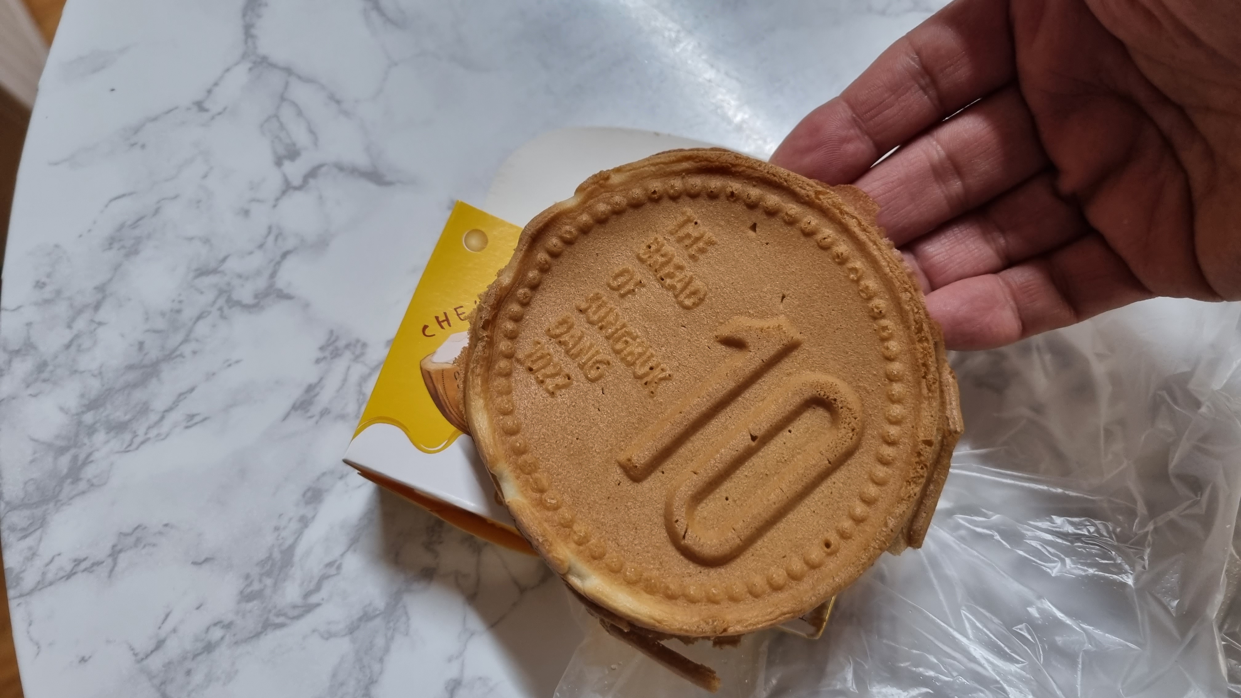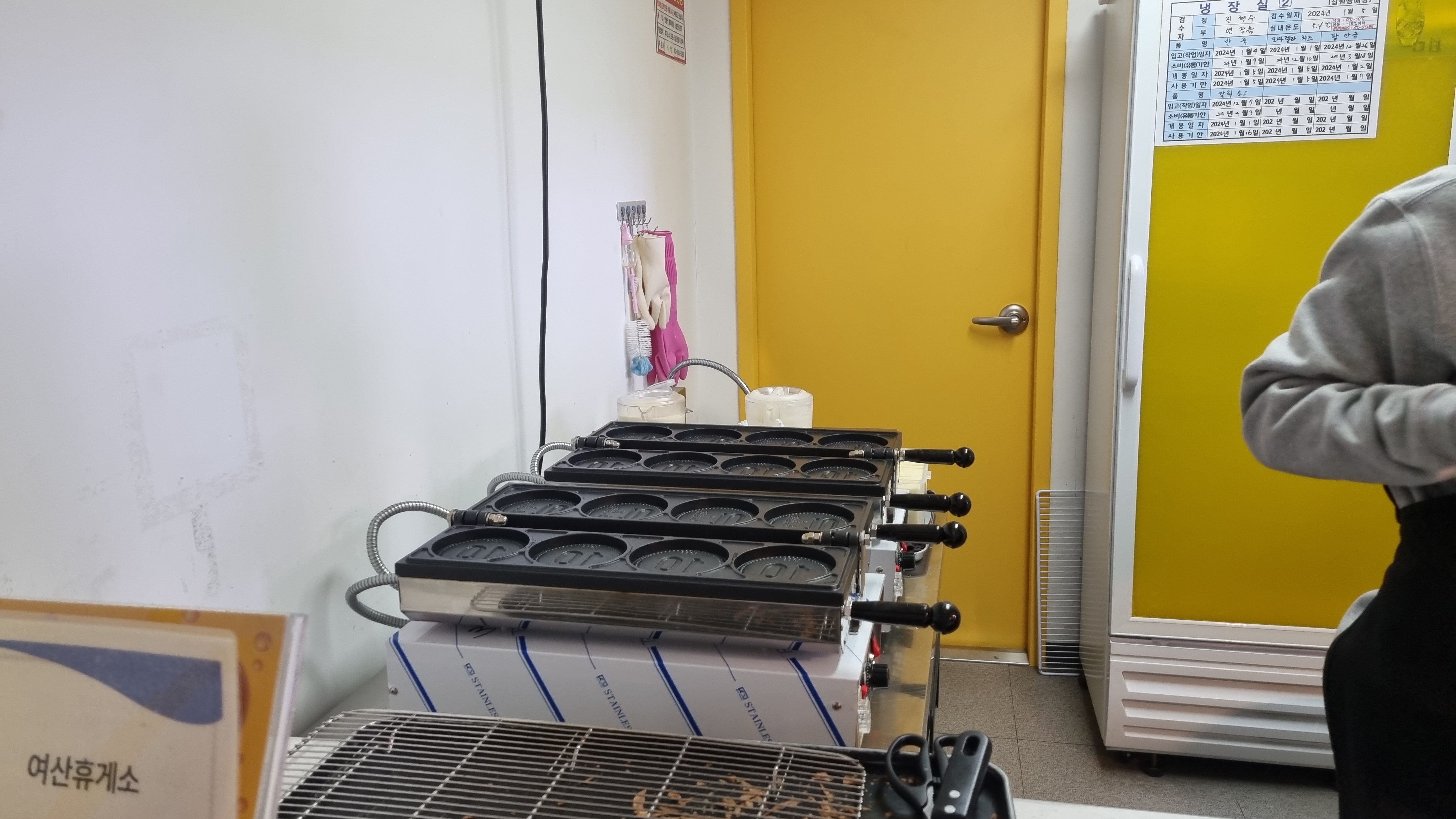 많이는 아니지만 조금씩 만들어 판매를 하고 진열을 하였는데 위의 사진처럼 빵 만드는 기계가 있는데 마치 붕어빵틀처럼 만들어졌습니다.