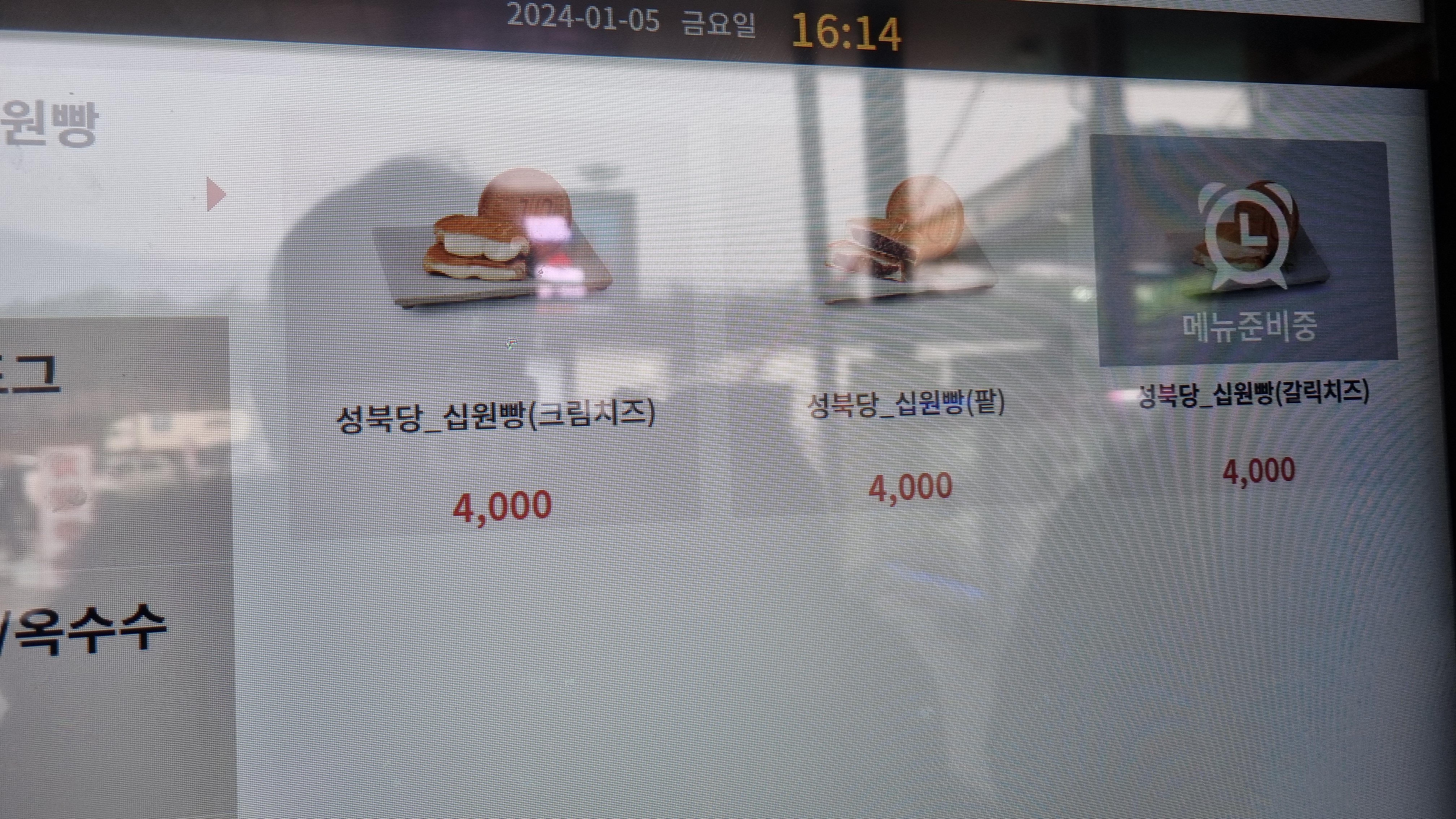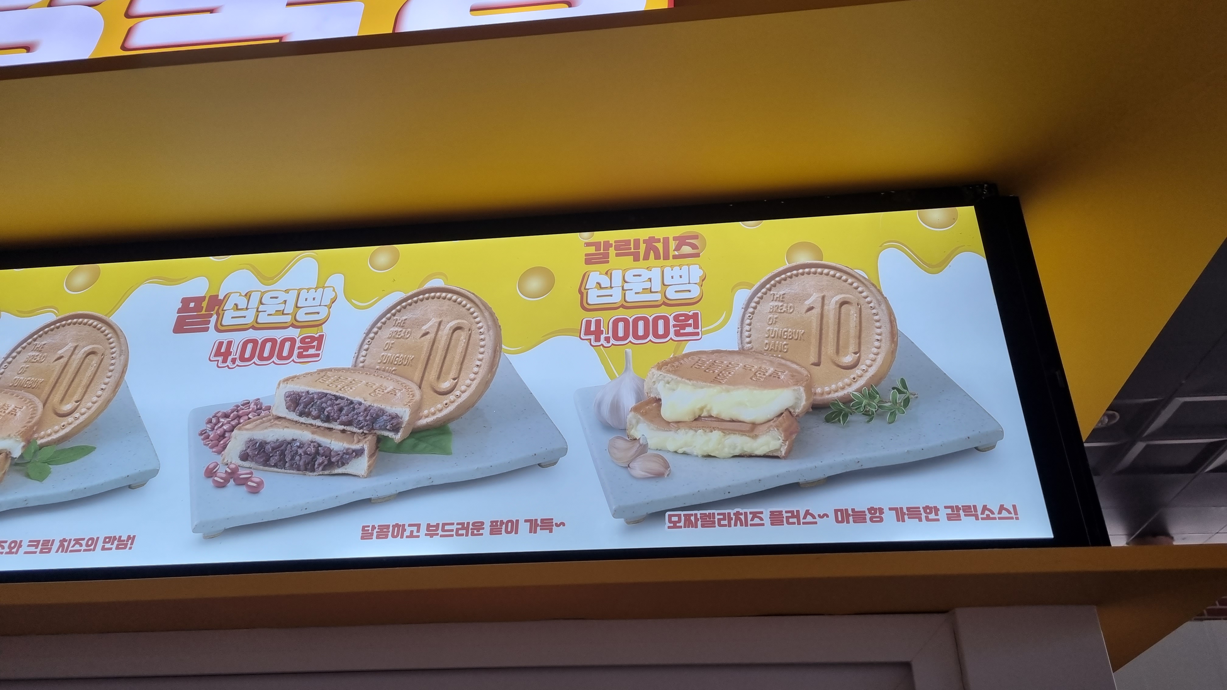 미침 간식을 먹고 싶었는데 핫도그나 핫바, 닭꼬치는 당기지 않았는데 마침 십원빵이 있어 구입을 위해 다가갔는데 주문은 키오스크로 할 수 있었는데 가격은 4천 원입니다.