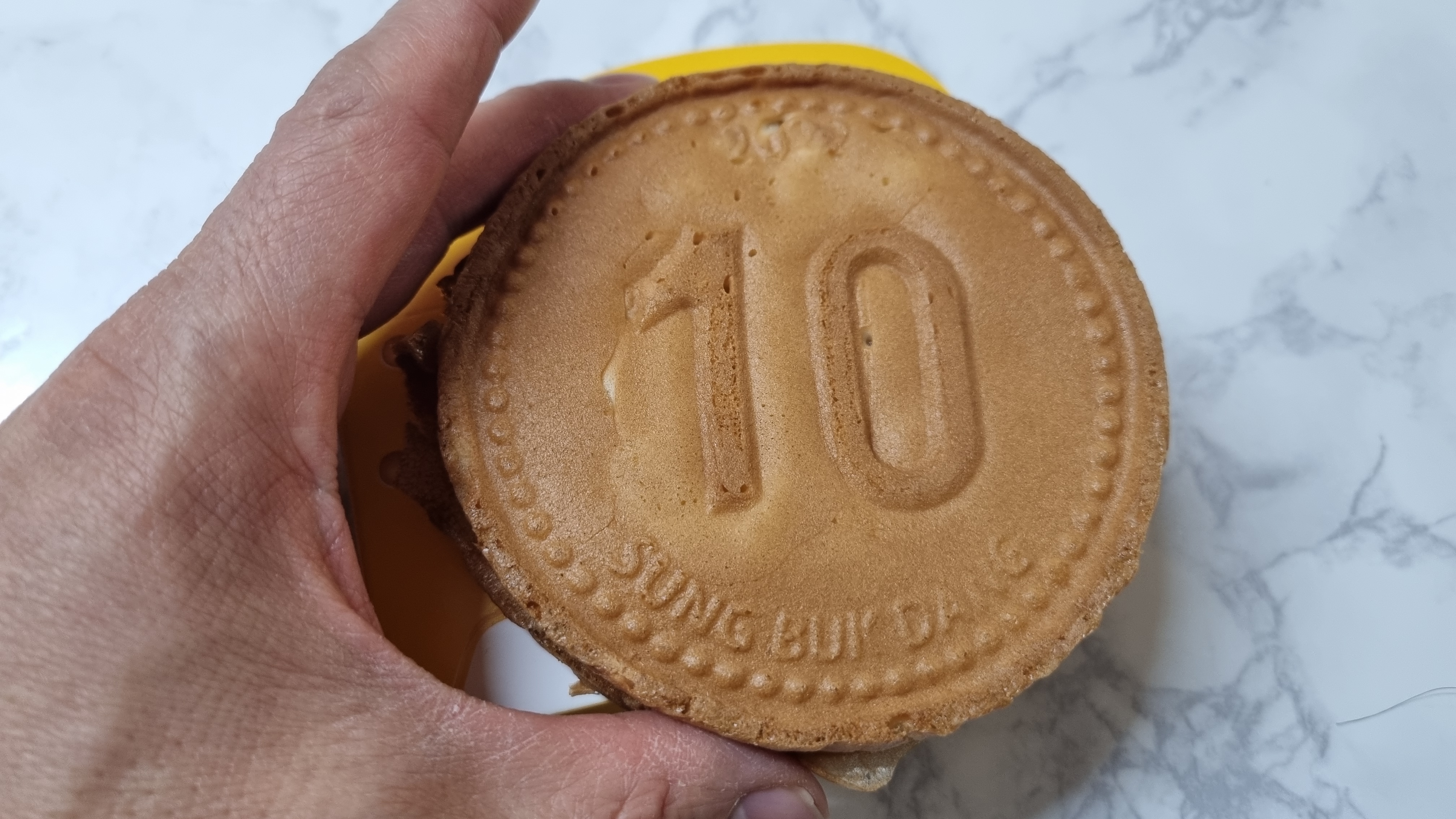 위의 사진을 보면 크기를 대략 짐작하실 것입니다. 간식으로 먹기에 아주 적당한 크기이며 커피나 음료수와 함께하면 식사대용까지는 안되더라도 간식으로 충분합니다.