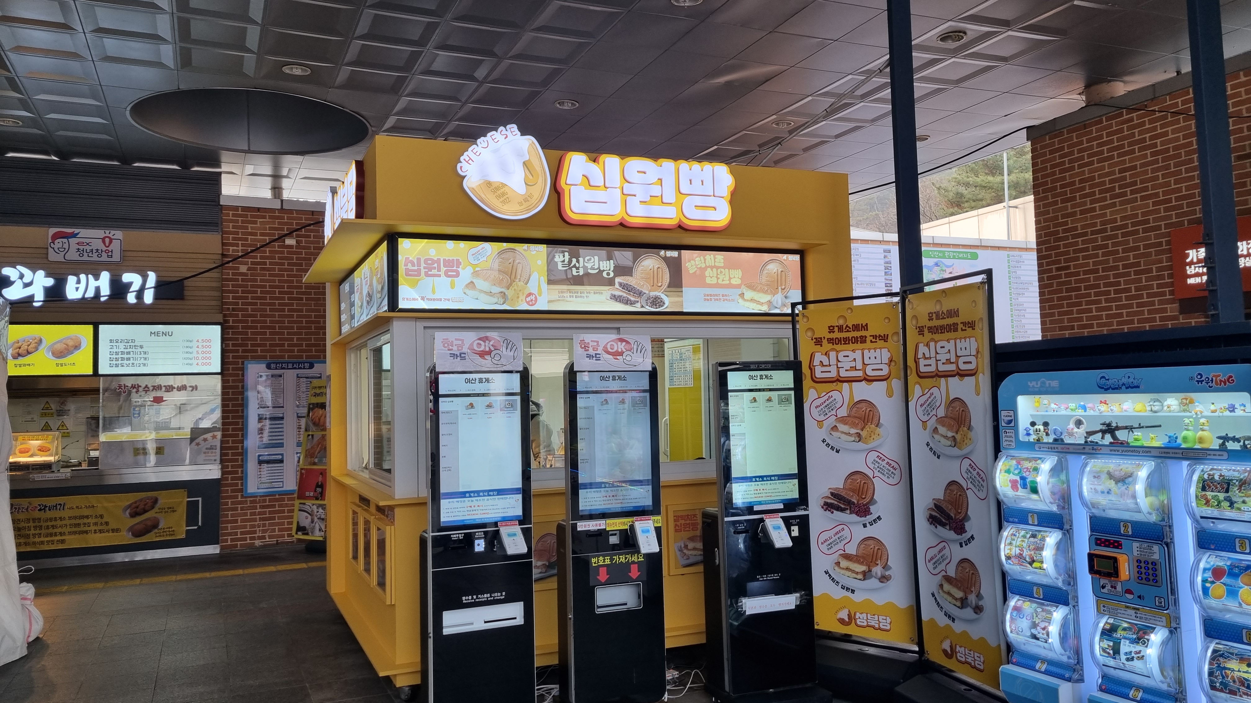 휴게소내에 식당도 한식, 양식 등 골라 드실 수 있을 정도이고 편의점도 있는 등 휴게 시설은 잘 갖추어져 있습니다. 이곳저곳 돌아다니다 십원빵이 있다 하여 이곳에서 발걸음을 멈추고 구경을 했습니다.