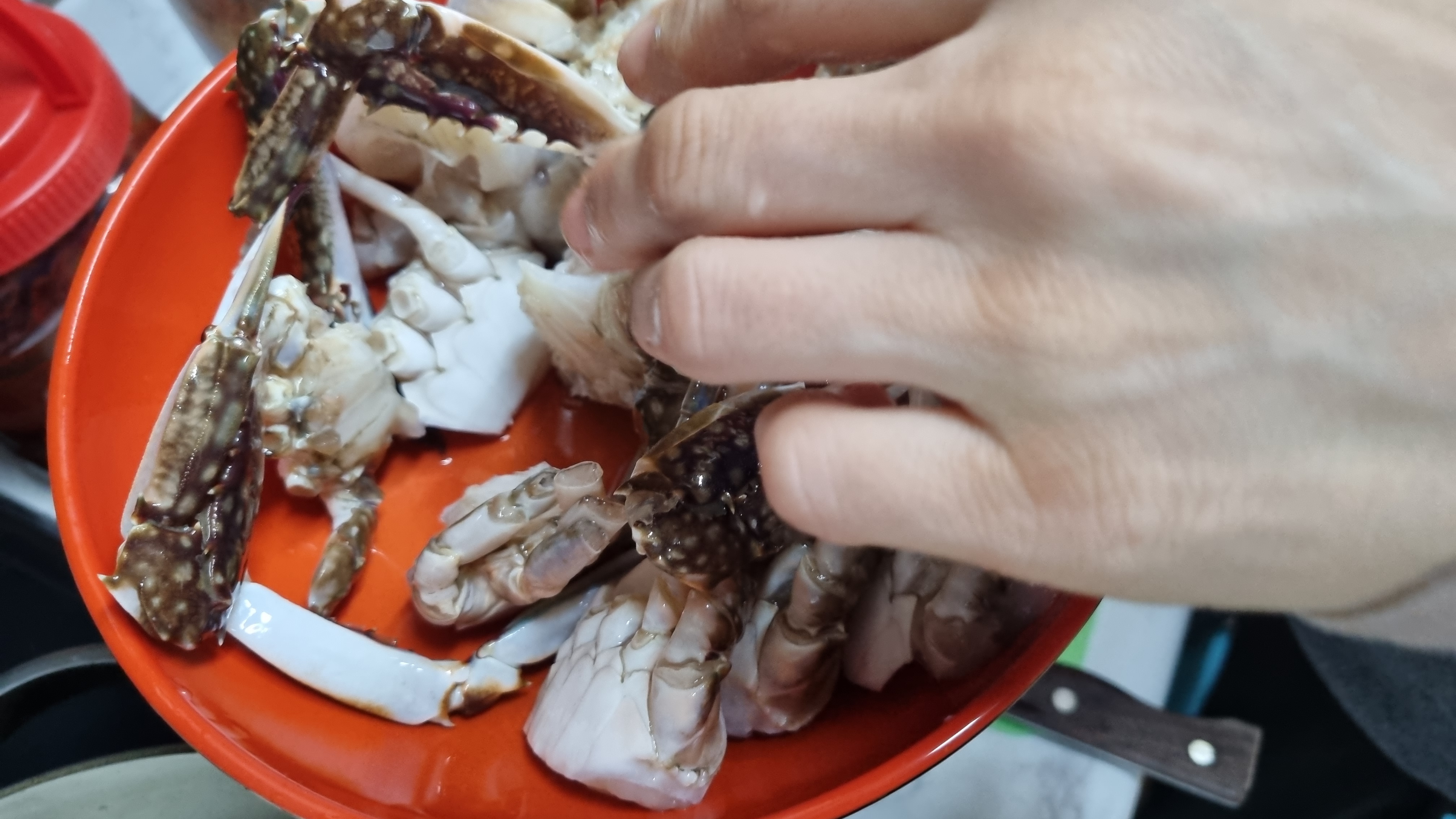꽃게는 미실 잘게 손질하였 놓는데 처음 언급한 데로 크기에 상관없이 4등분이 제일 적당하고 먹기에도 편합니다.