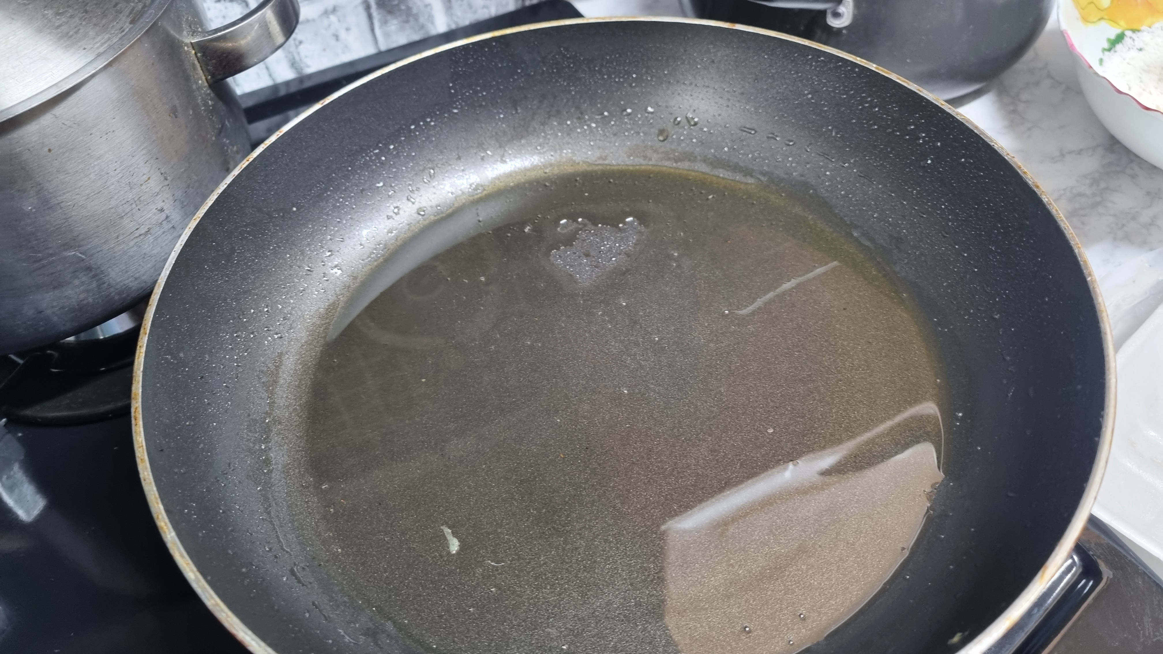 이때 프라이팬에 기름을 넣고 가스렌인지나 인덕션 불을 중간으로 하여 준비를 하여 줍니다.