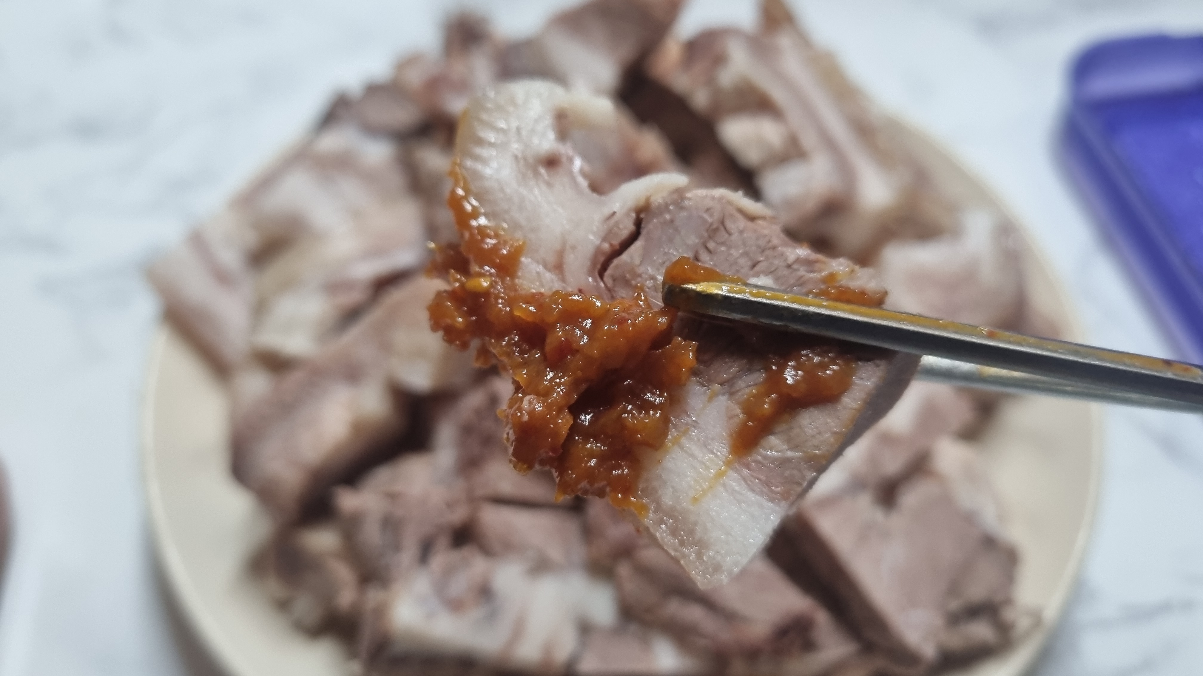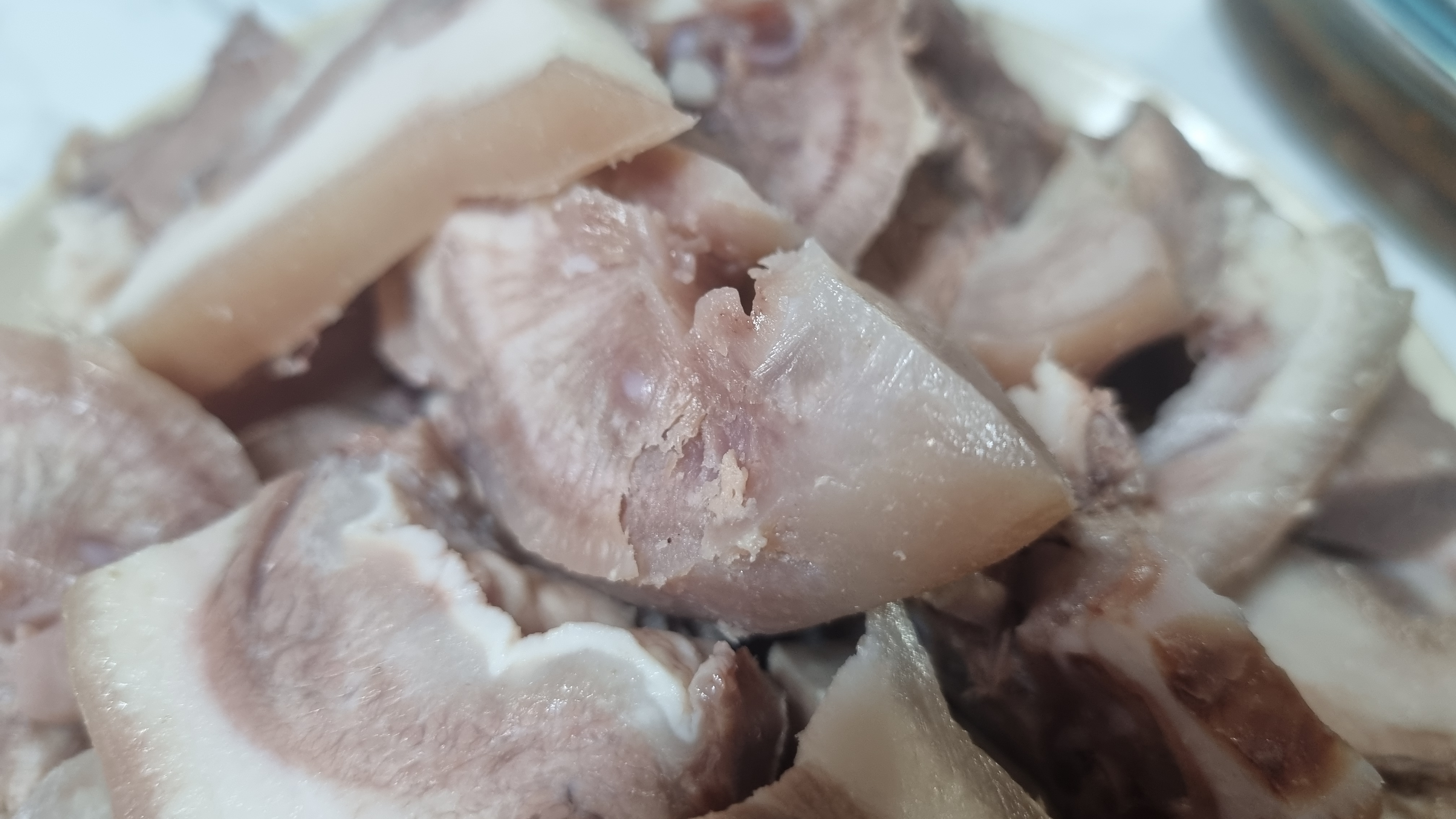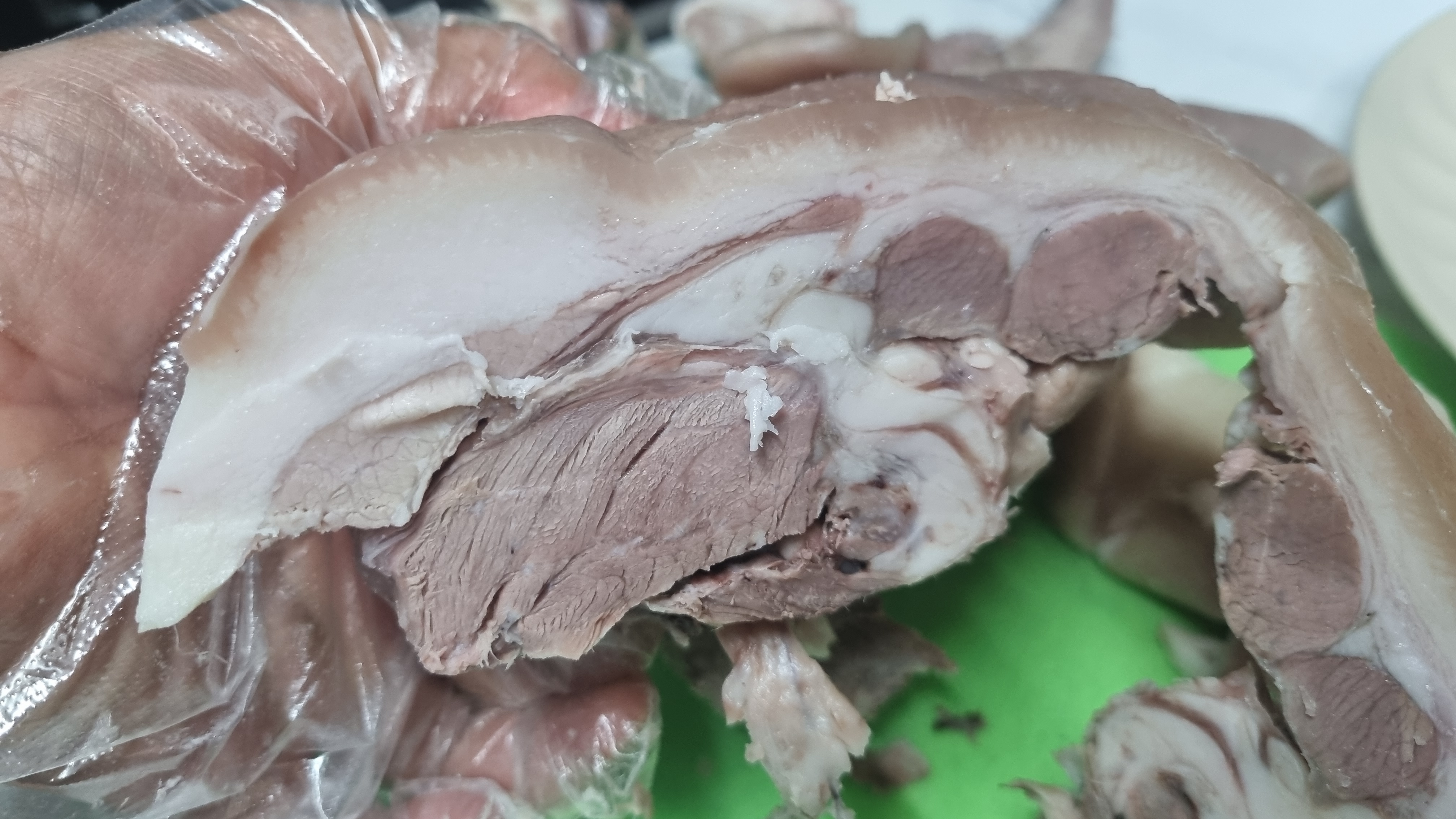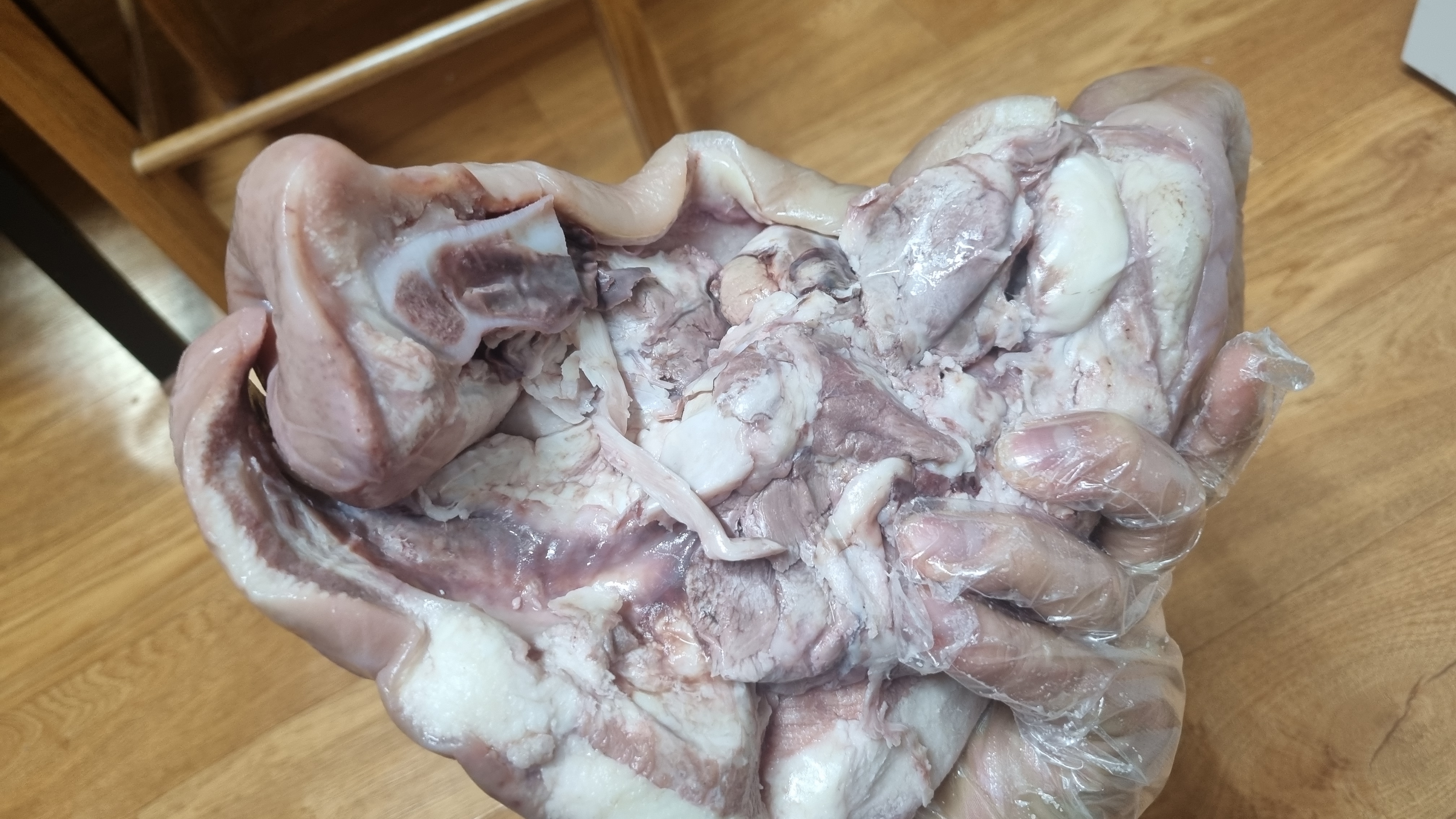 위의 사진은 코 부분인데 쫀득쫀득 맛으로 어른들이 상당히 좋아합니다. 애들이 돼지머리고기 보고 징그럽다 했는데 썰어서 줬는데 아주 맛있다고 잘 먹습니다.