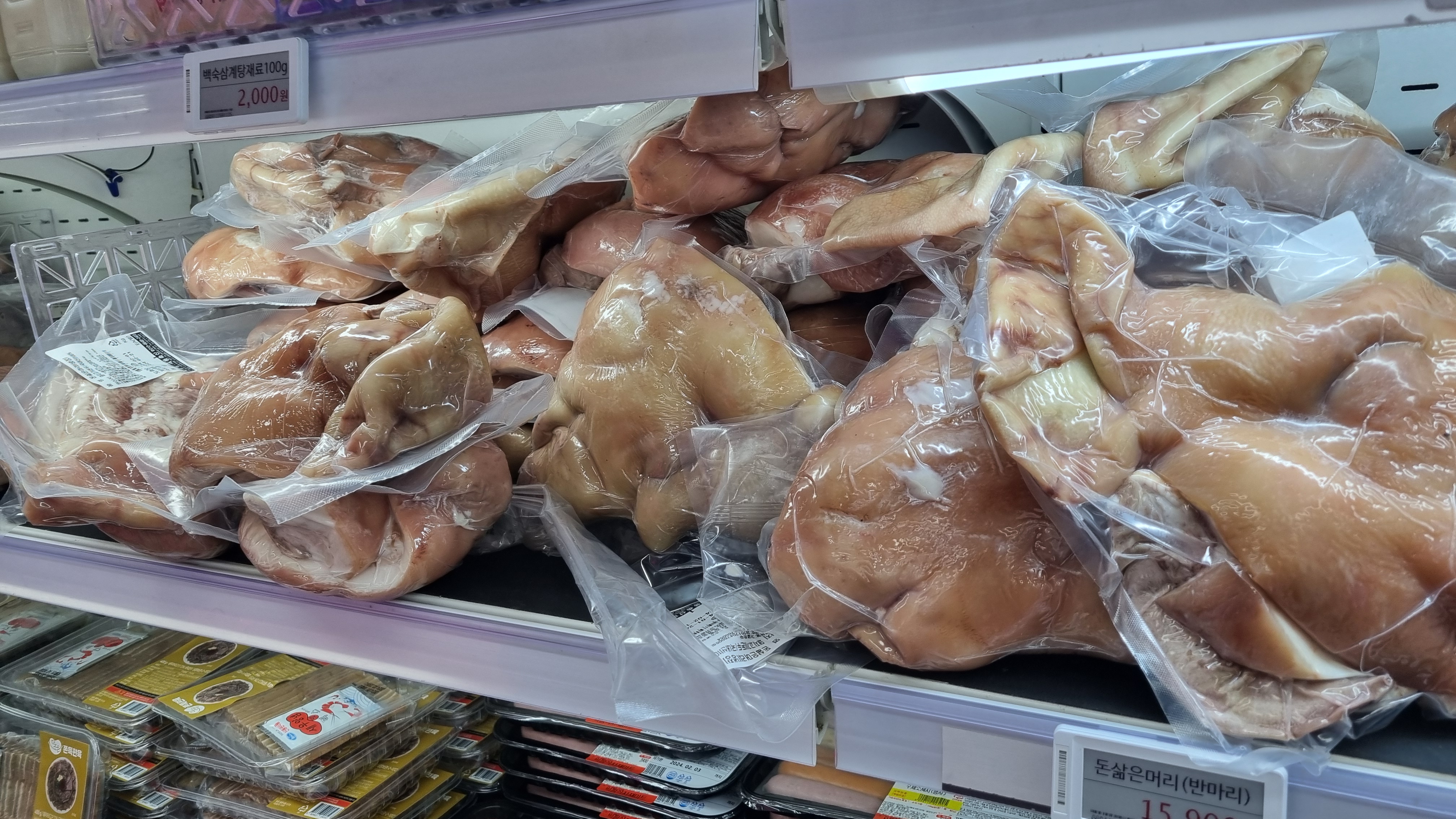 많은 돼지머리가 판매되었는데 포장은 잘 압축된 상태로 판매되었고 반마리와 한마리가 각각 진열되어 원하는 데로 골라서 구입할 수 있었습니다.