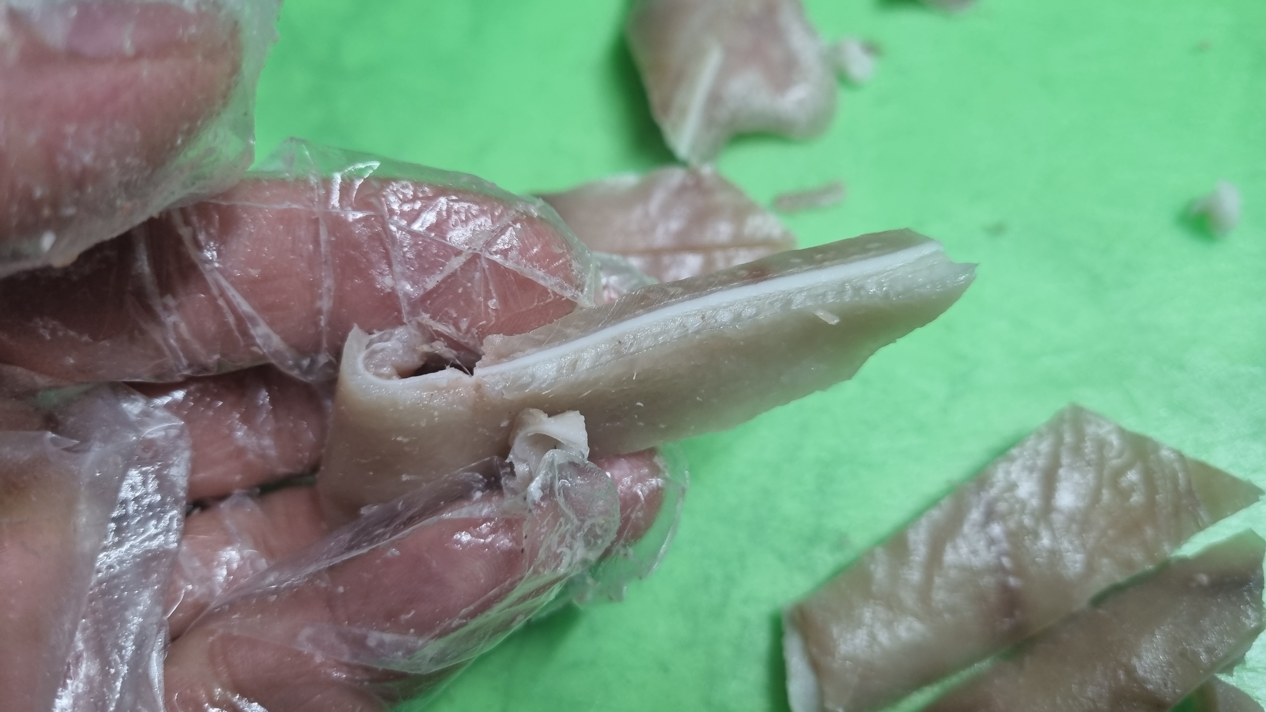 내장까지 그대로 있고 뼈는 이말 발라져 순순하 살고기와 기타 부위로 구성되었습니다.