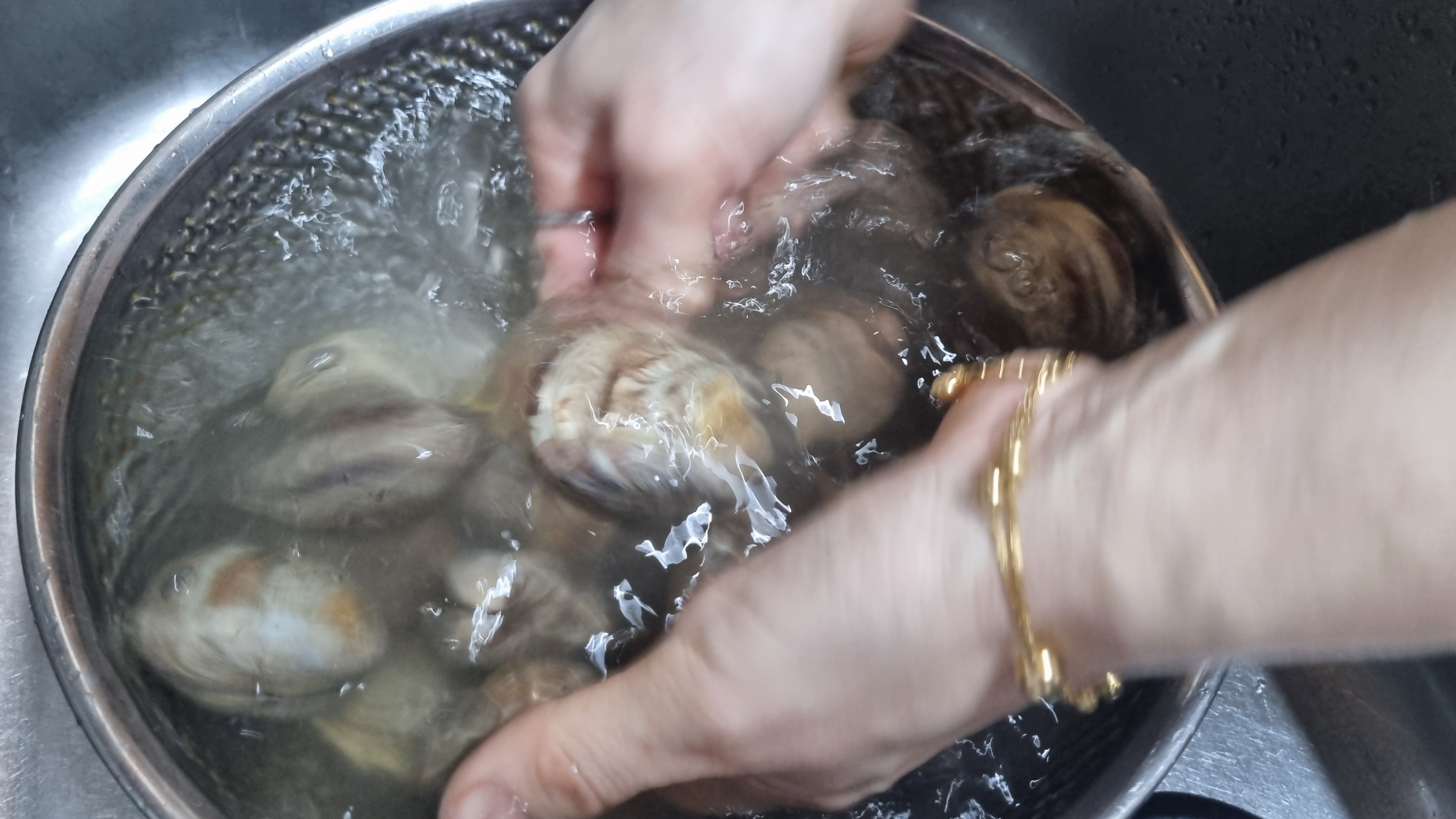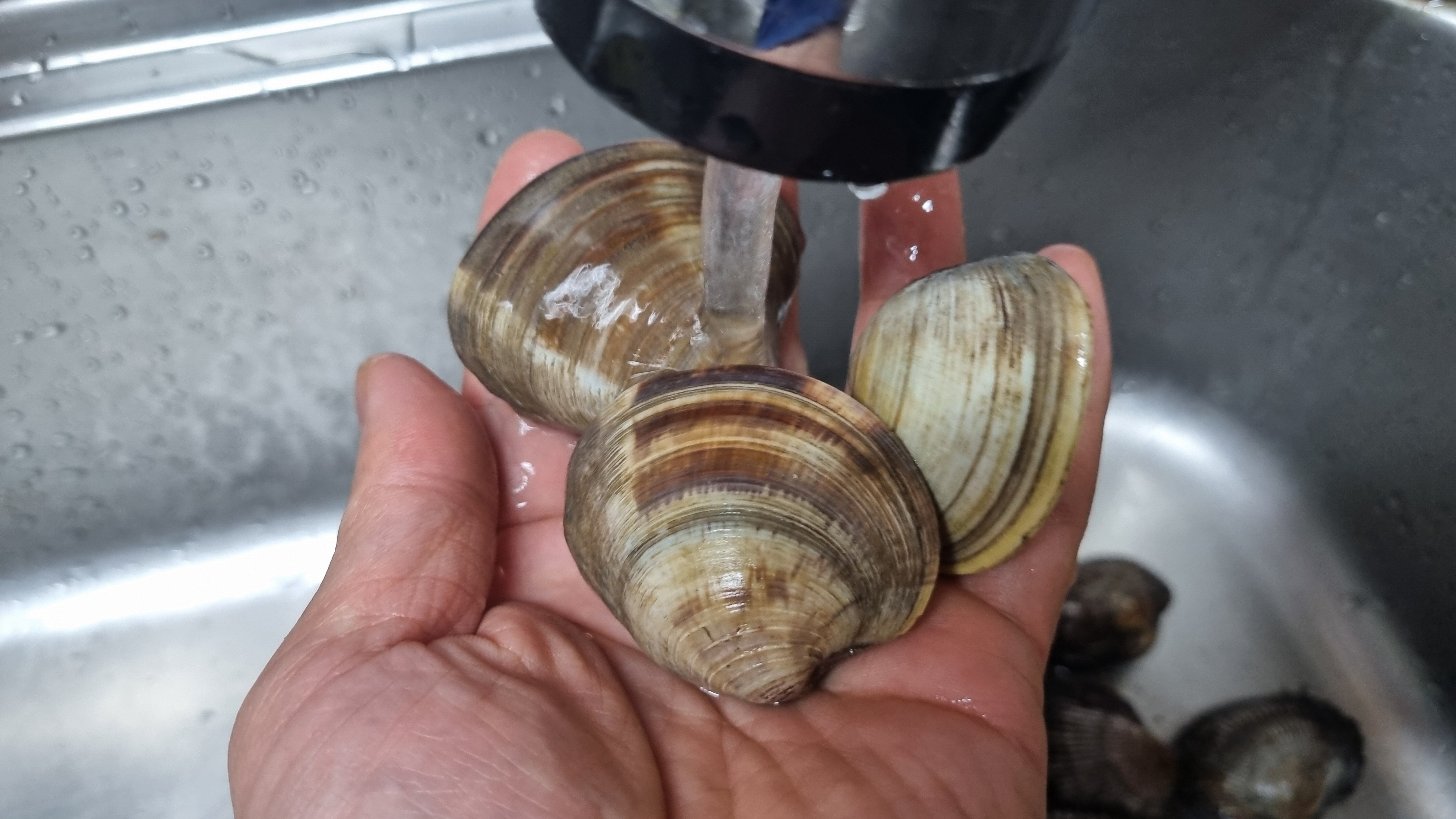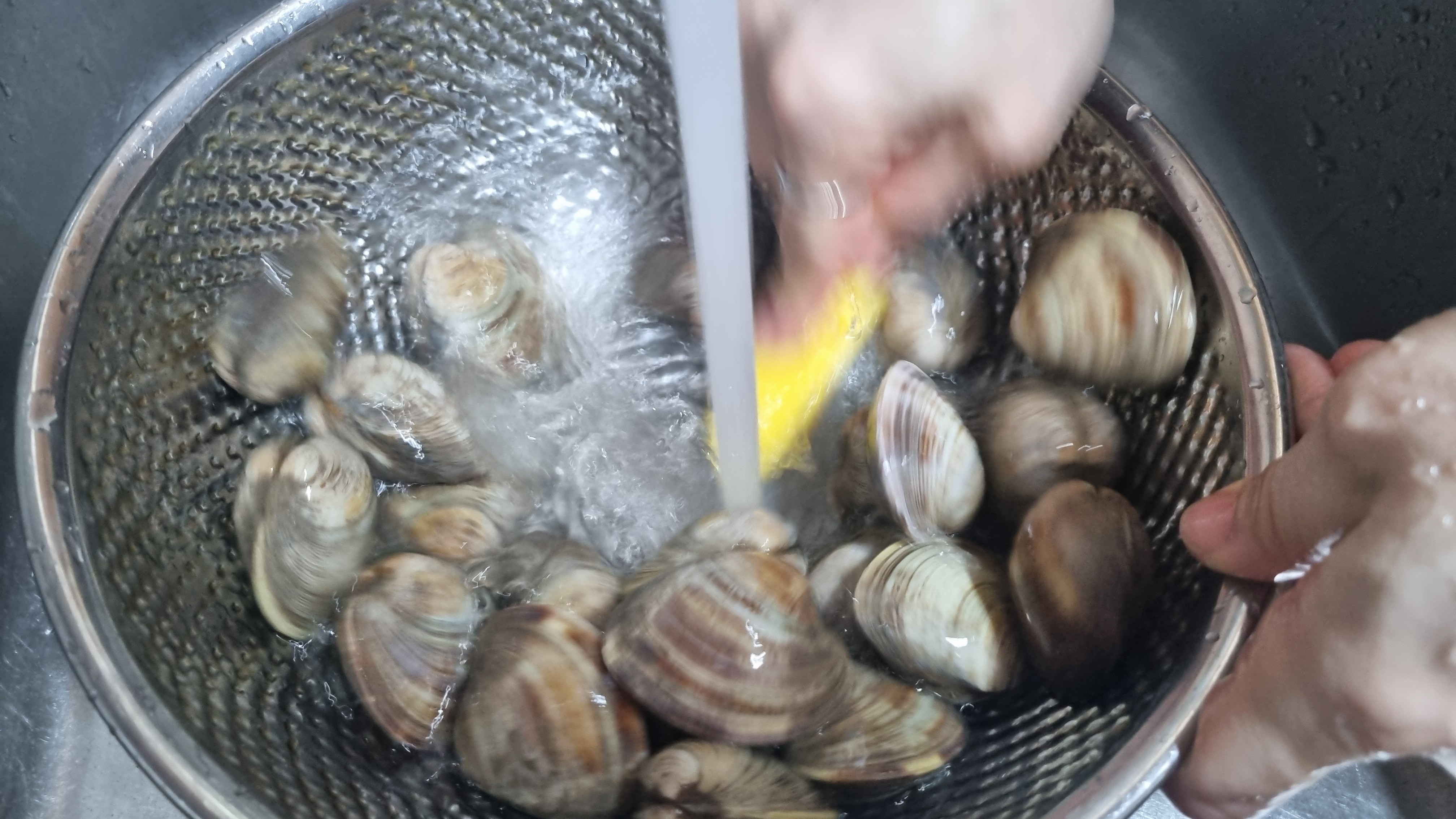 일단 물로 외부를 가볍게 2회 정도 씻어주고 이어서 조개 외부를 솔을 이용하여 문지르면서 하나하나 씻어주겠습니다. 조개껍질까지 탕으로 들어가기 때문에 외부를 깨끗이 씻어주는 것이 중요합니다.