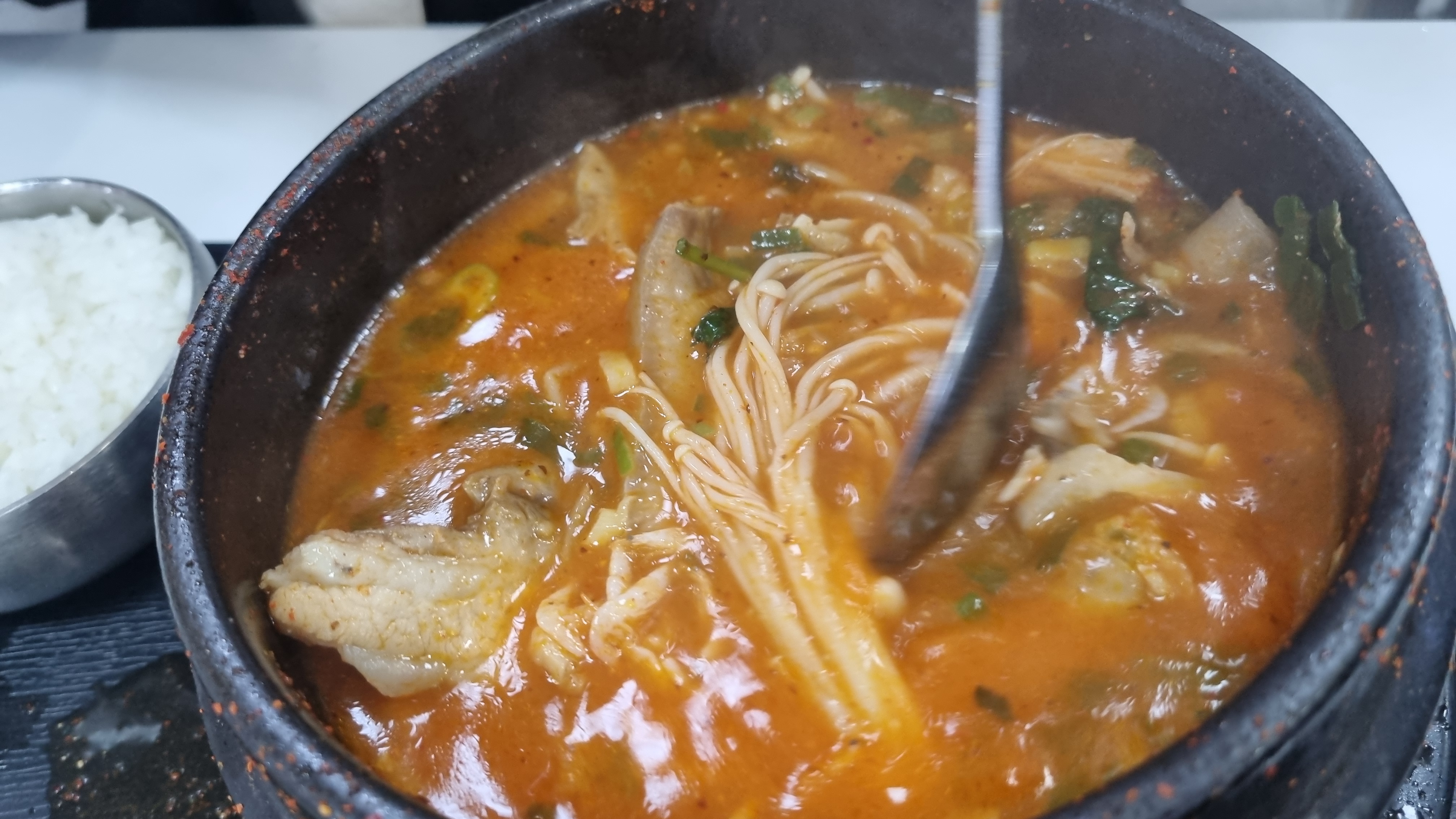장궁순대국과 비슷하는데 국물이 조금 더 매콤하게 나오는데 먹는 사람들의 입맛에 따라 선택하시면 되겠습니다.