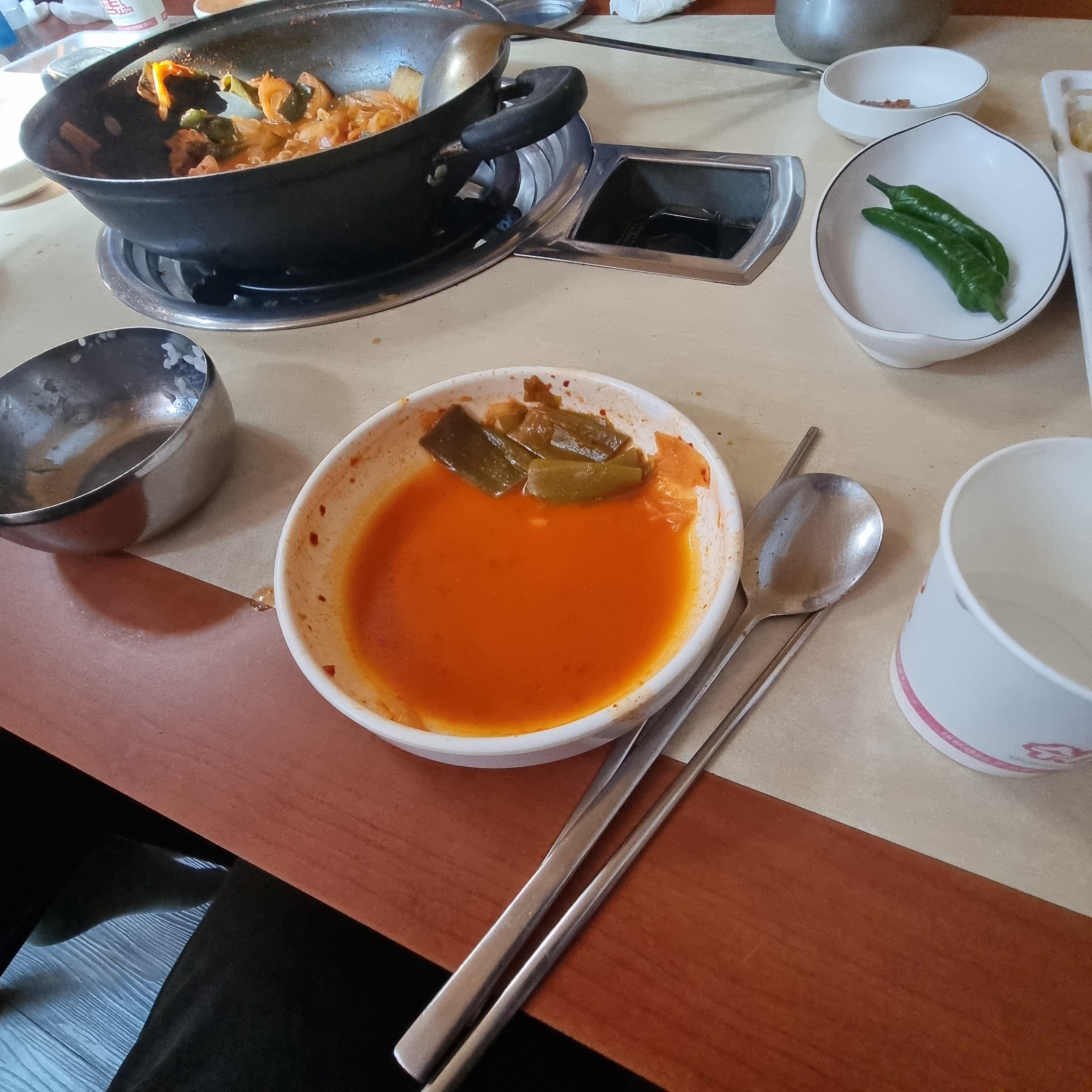 우리는 3인이 방문하여 3인분을 주문하고 라면사리를 추가하였는데 이곳은 두루치기와 밥을 거의 먹은 후 나옵니다.