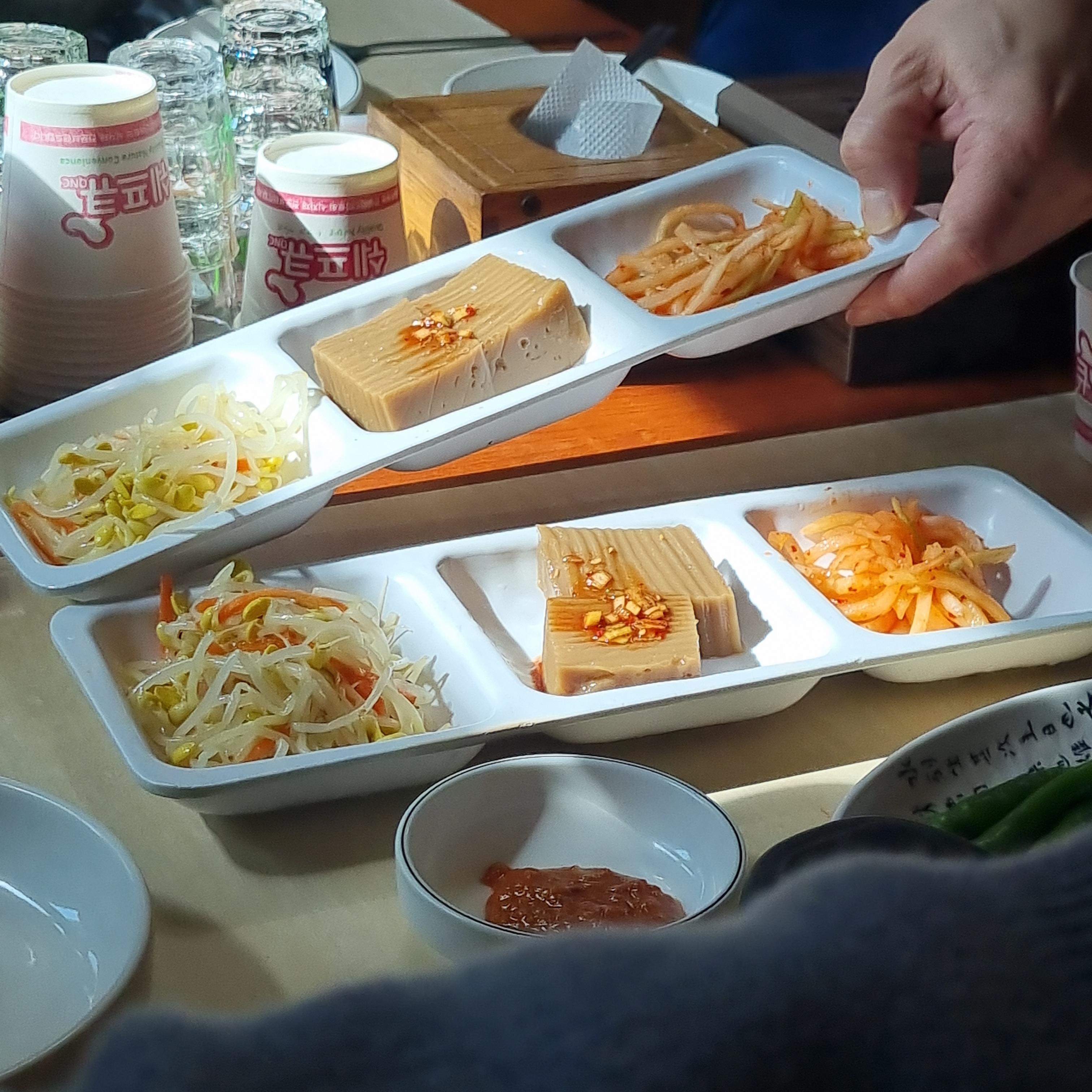 반찬은 조금씩 나오지만 아주 깔끔하게 나오고 원하면 추가 리필이 가능합니다. 도토리묵과 콩나물무침, 무생채가 나오는데 맛은 좋습니다.