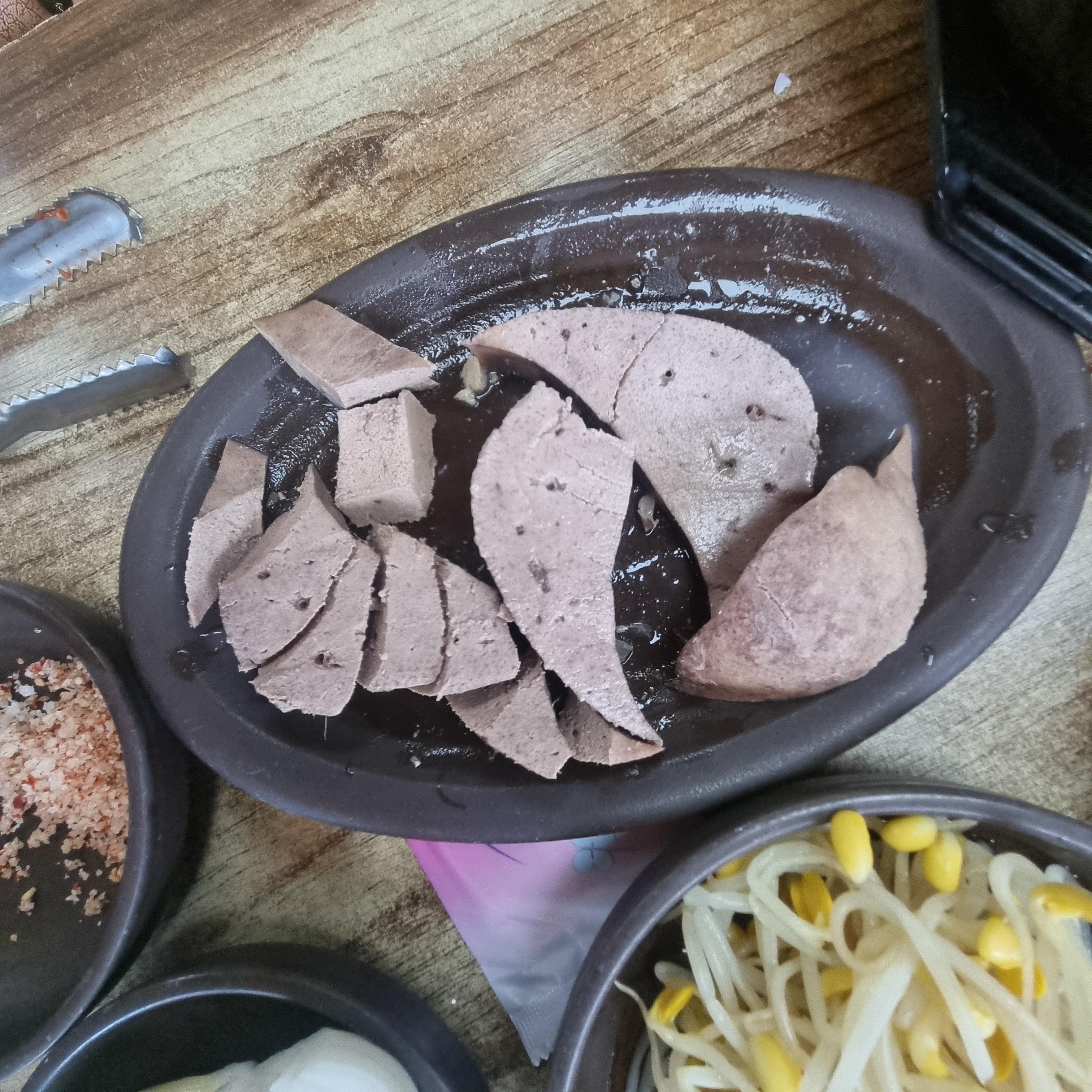 특별히 사장님에게 부탁하여 나온 돼지 간입니다. 시내에서 찰순대 사면 조금 나오는 것인데 맛있게 잘 먹었습니다.