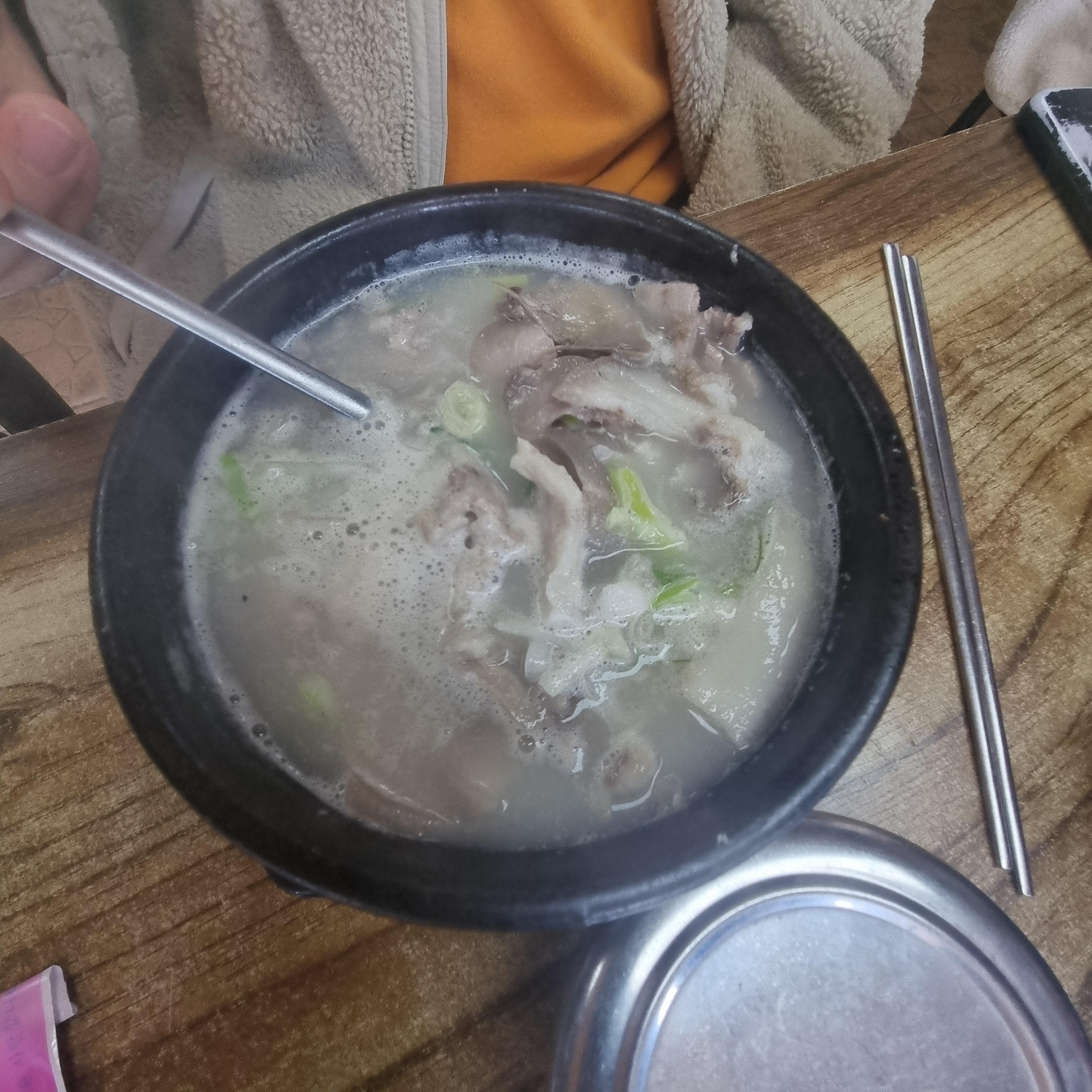 돼지머리국밥입니다. 국물에 별도의 첨가제를 타지 않고 오리지널 국물이 나오는데 정말 시원하고 진한맛이 느껴지고 고기도 많습니다.