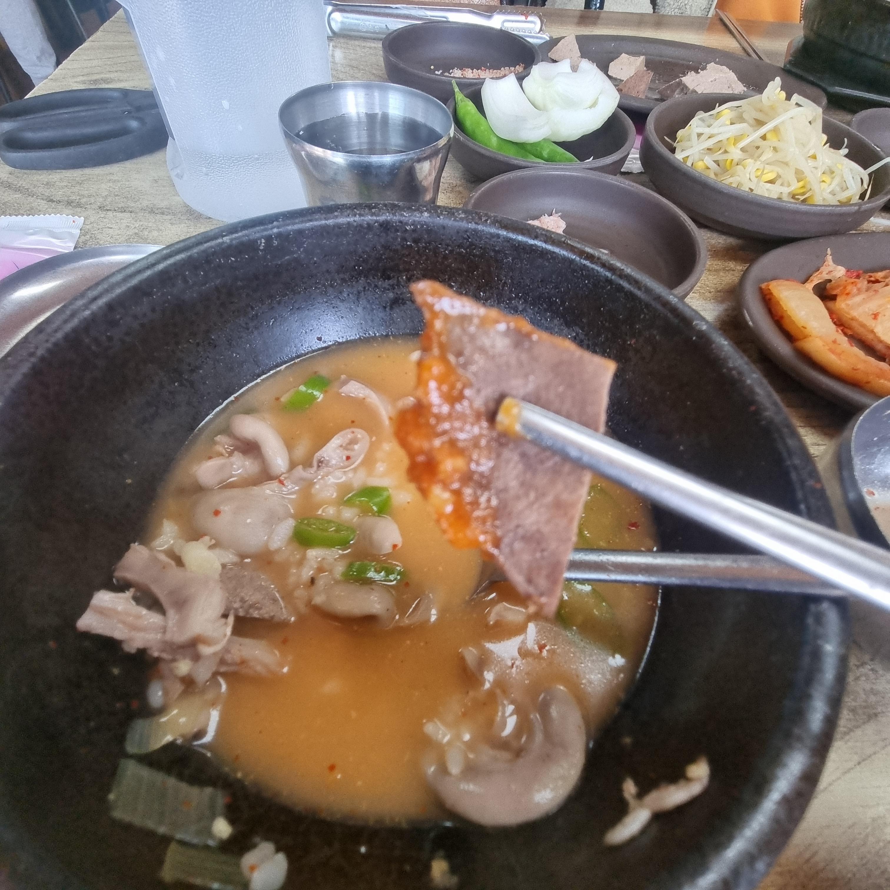 시골장터에서 먹는 국밥맛이 참 좋고 분위기도 어울려 밥이 저절로 잘 들어갑니다. 특히나 국물맛이 진해 돼지국밥 먹는다는 느낌이 확 들고 고기도 부드럽고 맛있습니다.