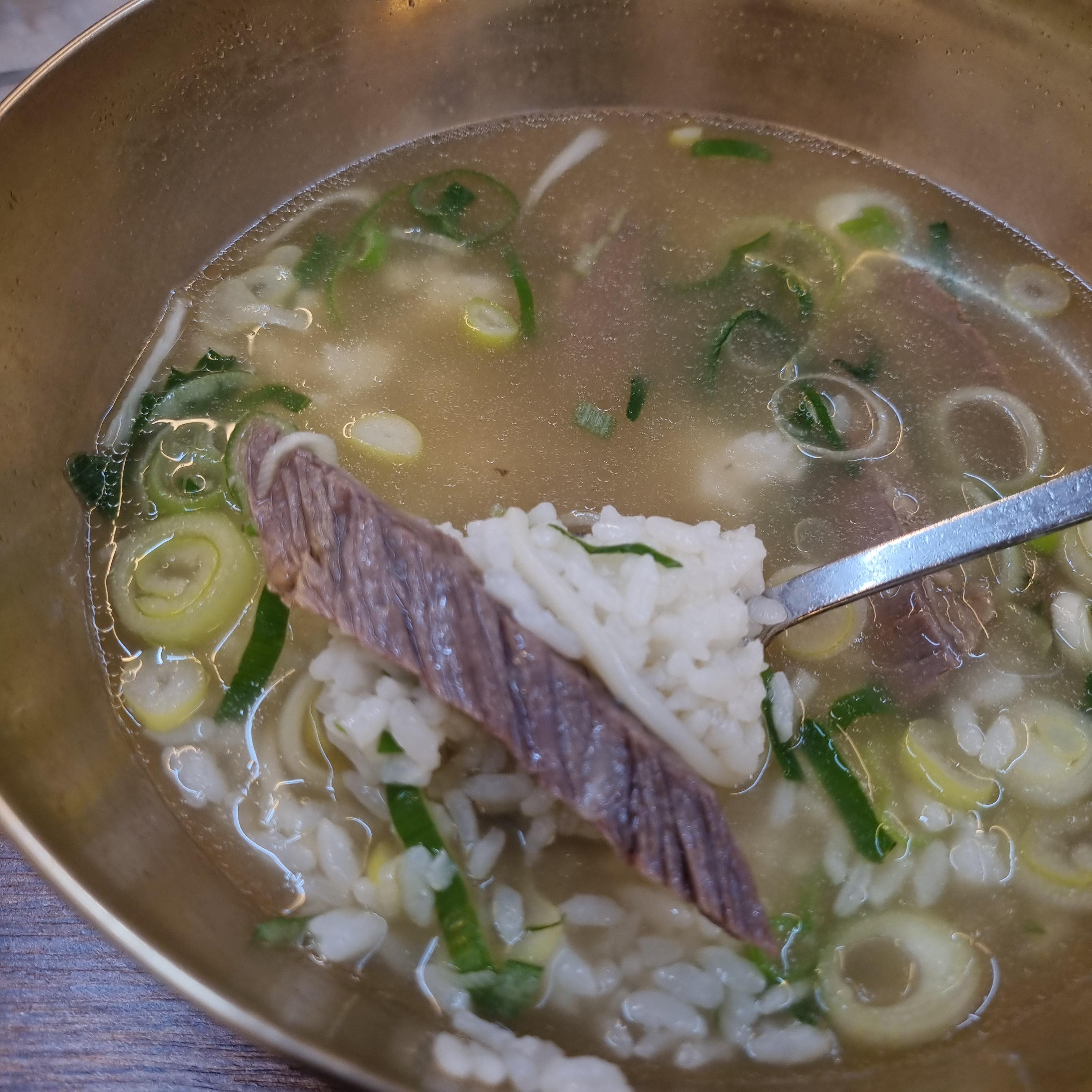 시원하고 특유의 곰탕국물맛이 너무 맛있어고 대파가 풍족하게 있어 더 잘 어울리고 좋았습니다.