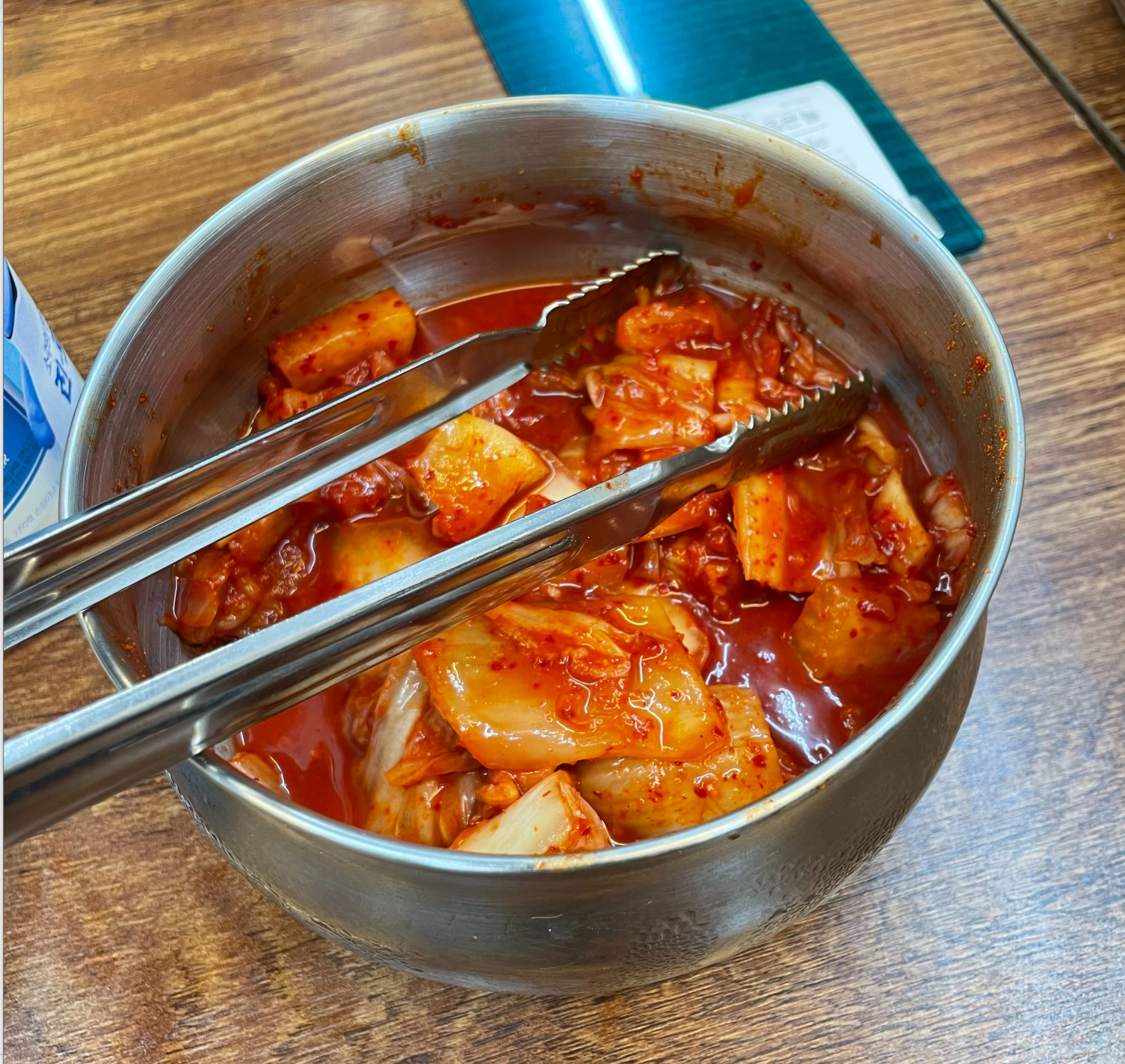 김치 조금 큰 그릇에 담아져 있어 작은 접시로 먹을 만큼 덜어 먹는 식으로 되어 있으며 곰탕과 아주 잘 어울리고 맛도 좋습니다.