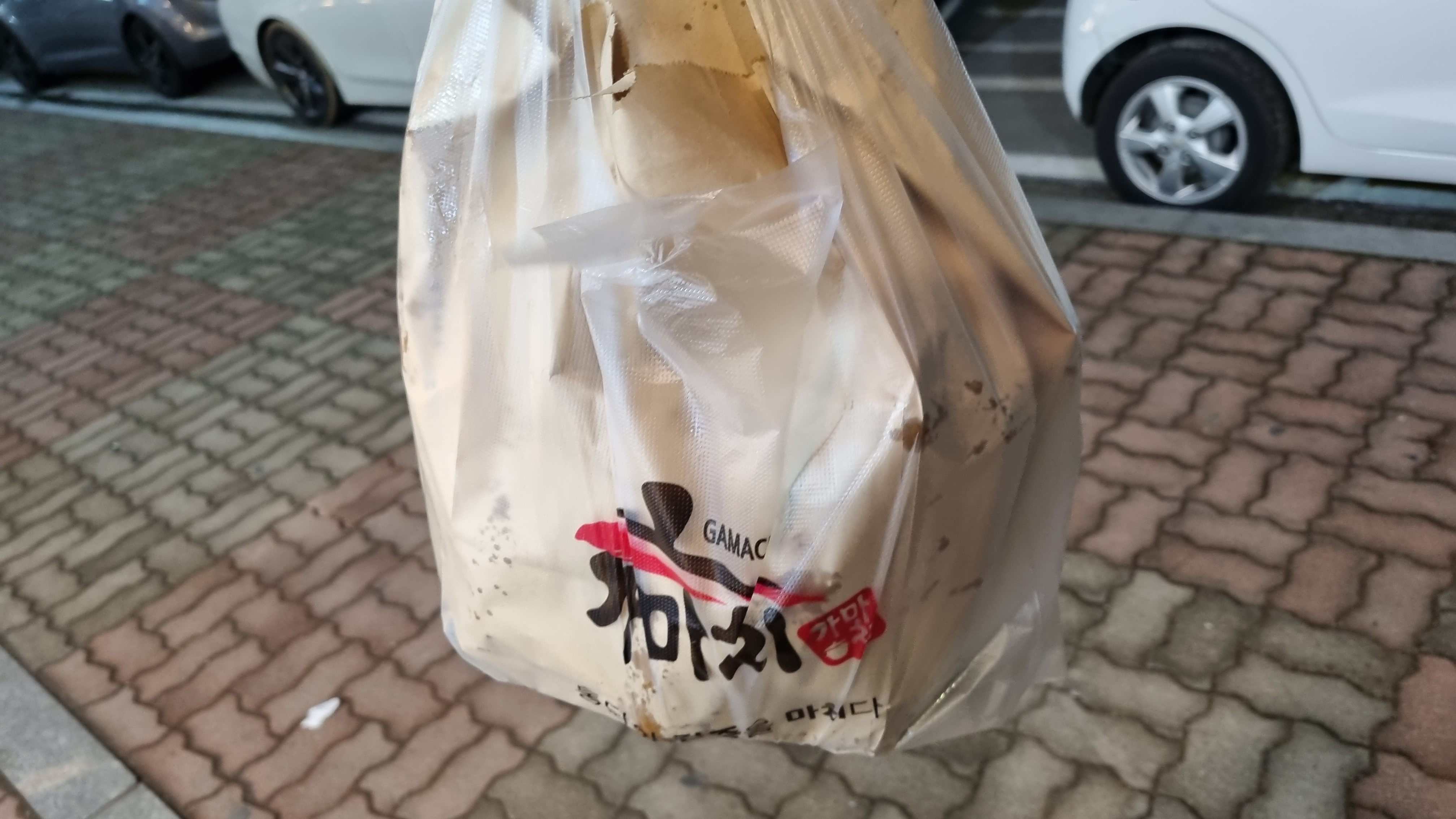 미리 전화하여 주문하고 매장으로 찾으러 가서 찾아가는데 포장박스는 위 사진과 같습니다. 종이봉투에 담겨서 다시 비닐 봉투에 담아 가져가시면 됩니다.