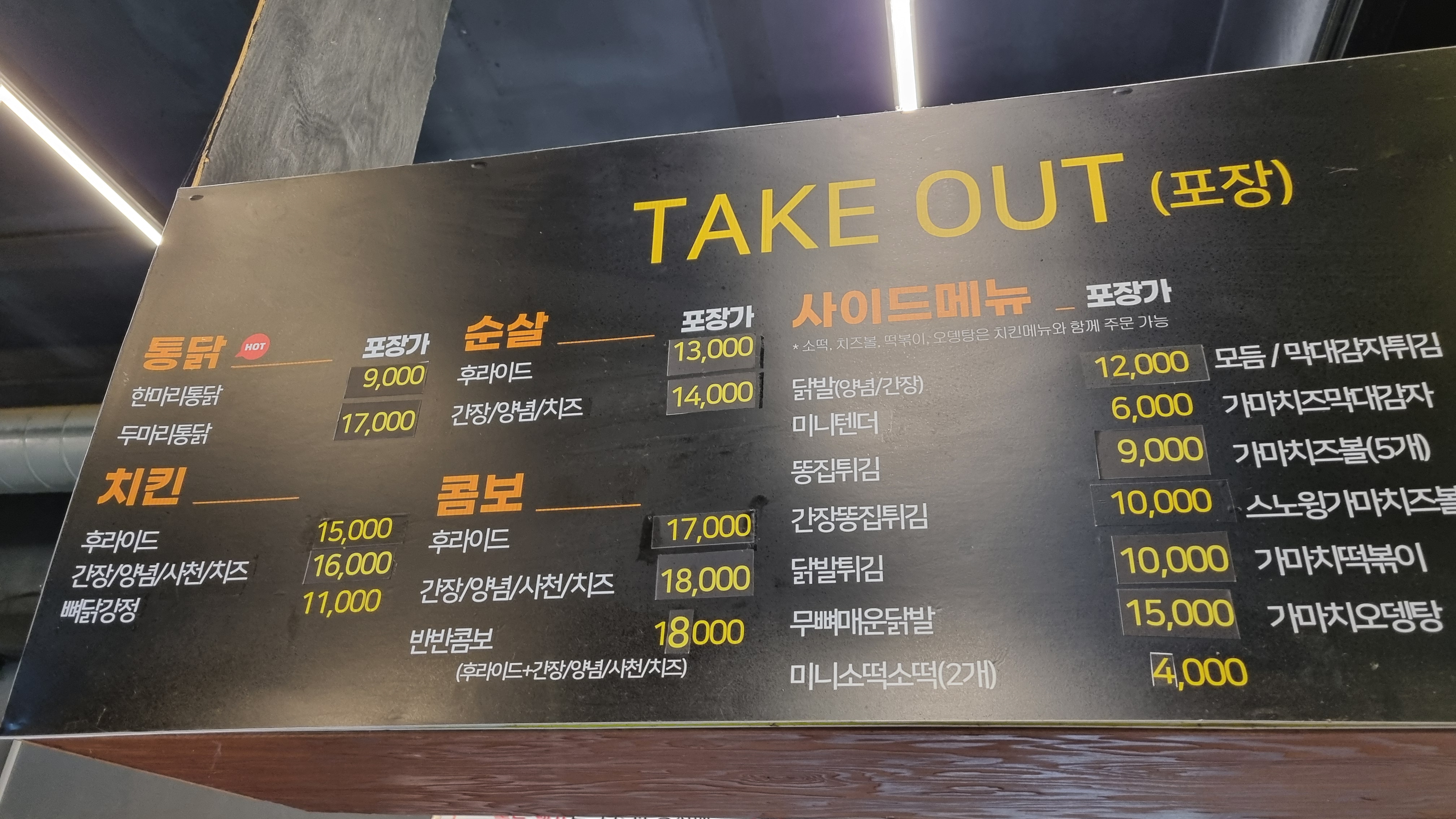 이곳은 사이드 메뉴가 참 많은데 닭똥집이나 닭발 이외에도 막대감자튀김 떡볶이, 가마치즈볼등이 판매되는데 가격은 4천 원에서 8천 원까지로 되어있습니다.
