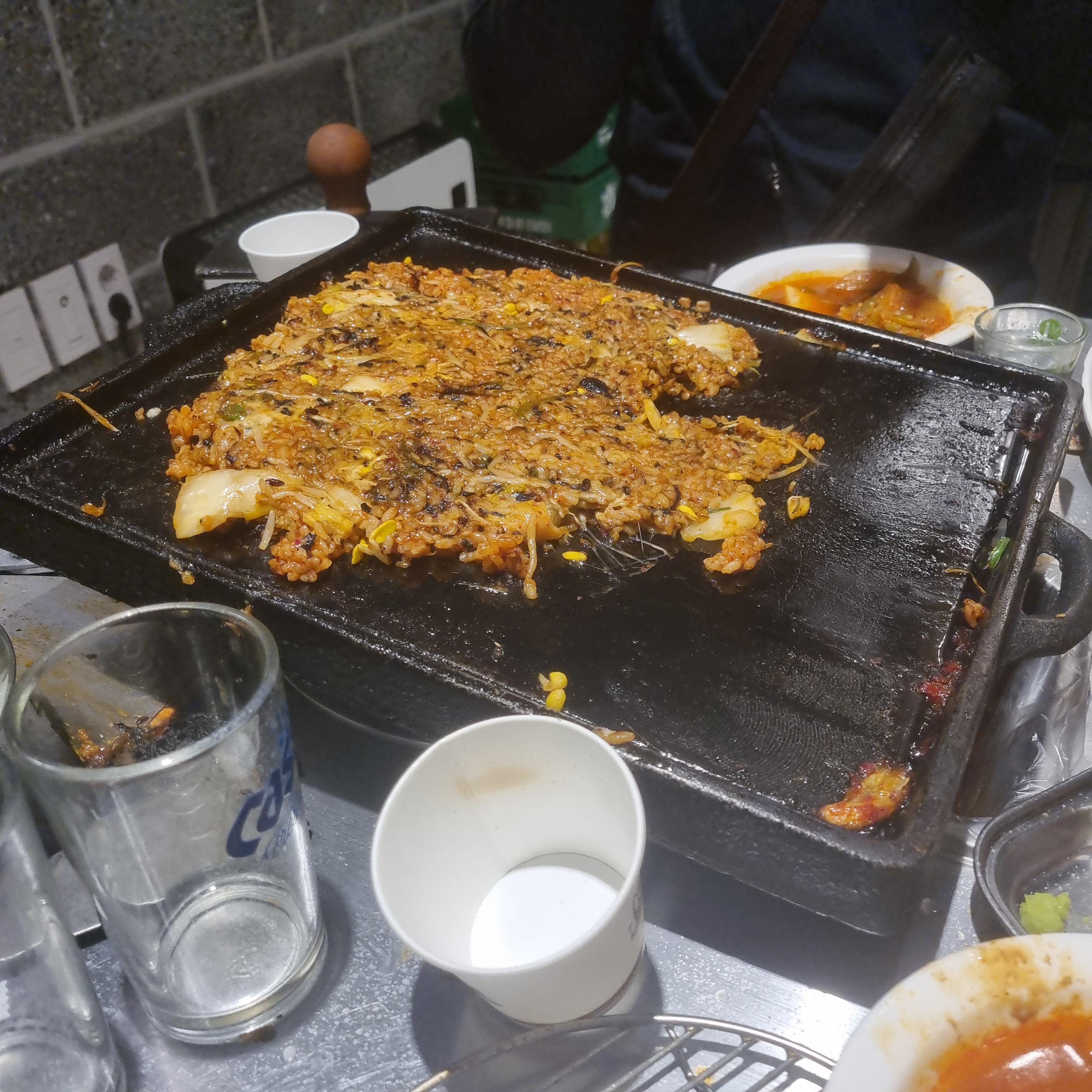 마지막으로 공기밥 2공기를 주문하여 종업원이 직접 볶아주는데 여러가지 양념이 추가되어 고기불판에서 볶아먹는 볶음밥 완전 새로운 맛이고 잘 마무리가 됩니다.