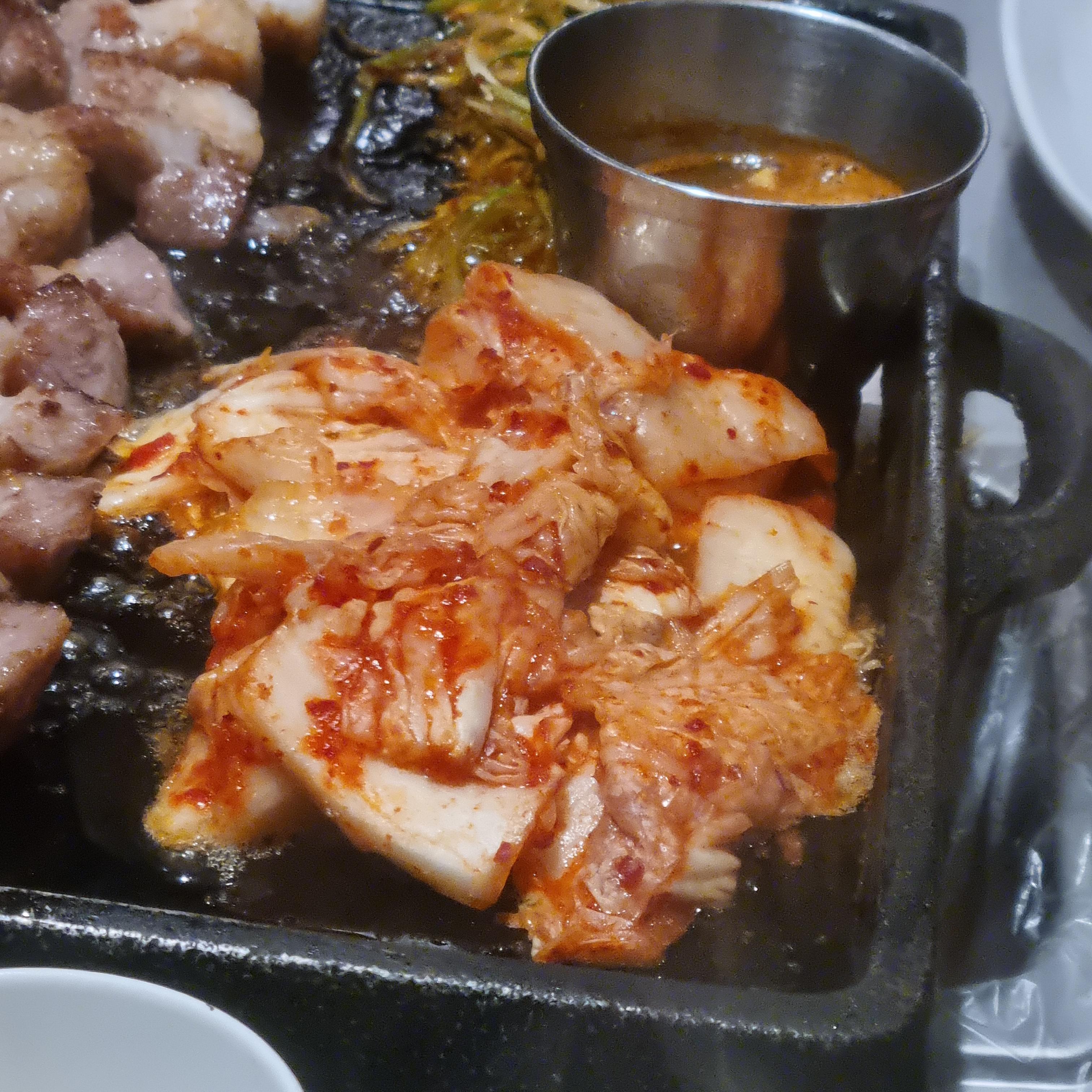 다리미로 눌러 구원 삼겹살 정말 맛있있습니다. 거기에 김치를 삼겹살 기름으로 구워 함께 드시면 맛이 정말 환상적입니다.