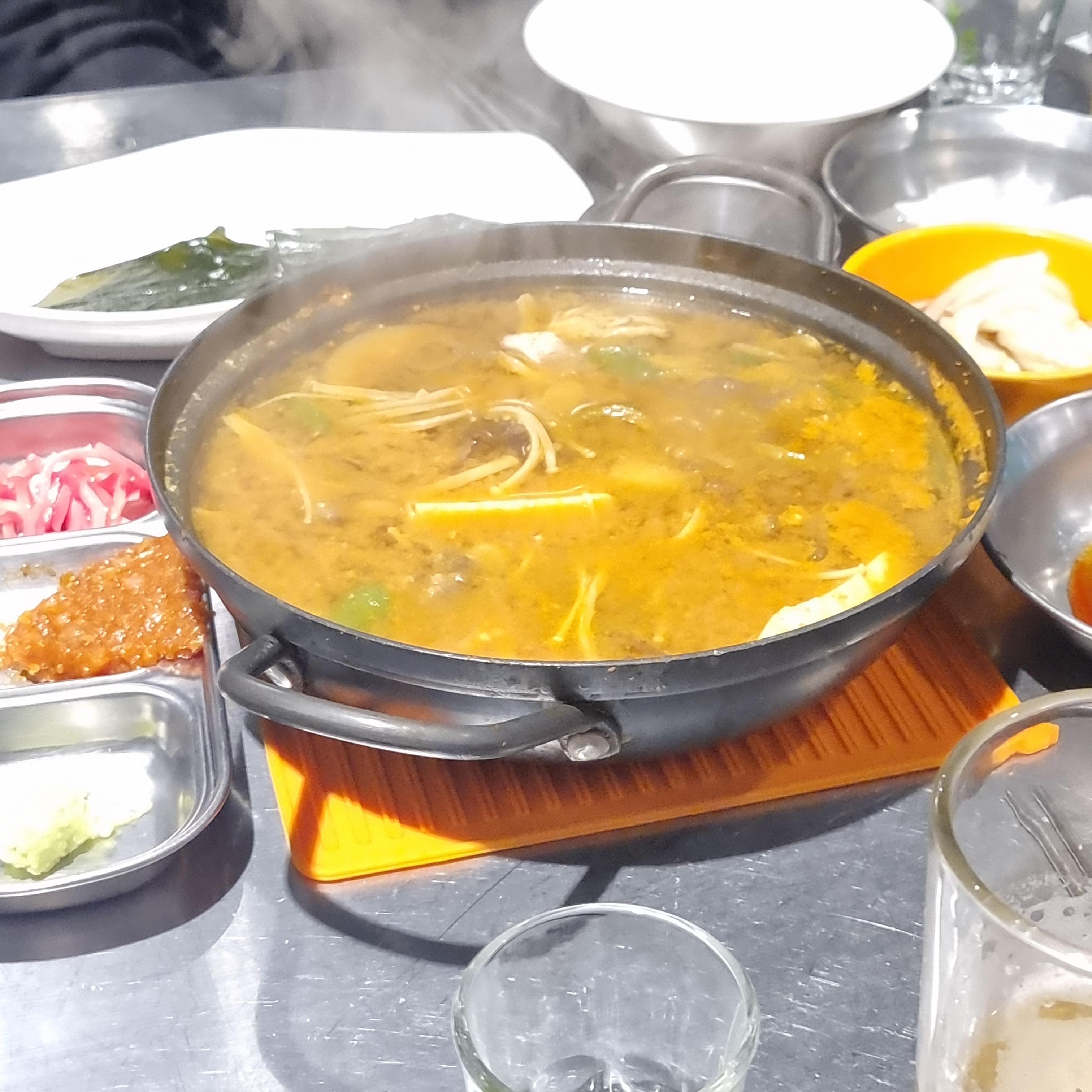 세트메뉴를 주문하여 전골도 함께 나와서 소고기 버섯 된장전골인데 고기 먹을때 함께 먹는맛이 정말 새롭고 괜찮습니다. 대부분 국물은 고기 먹은후 밥먹을대 먹는 경우가 많은데 고기 먹을때 드셔보시면 더 맛있게 먹을 수 있습니다.