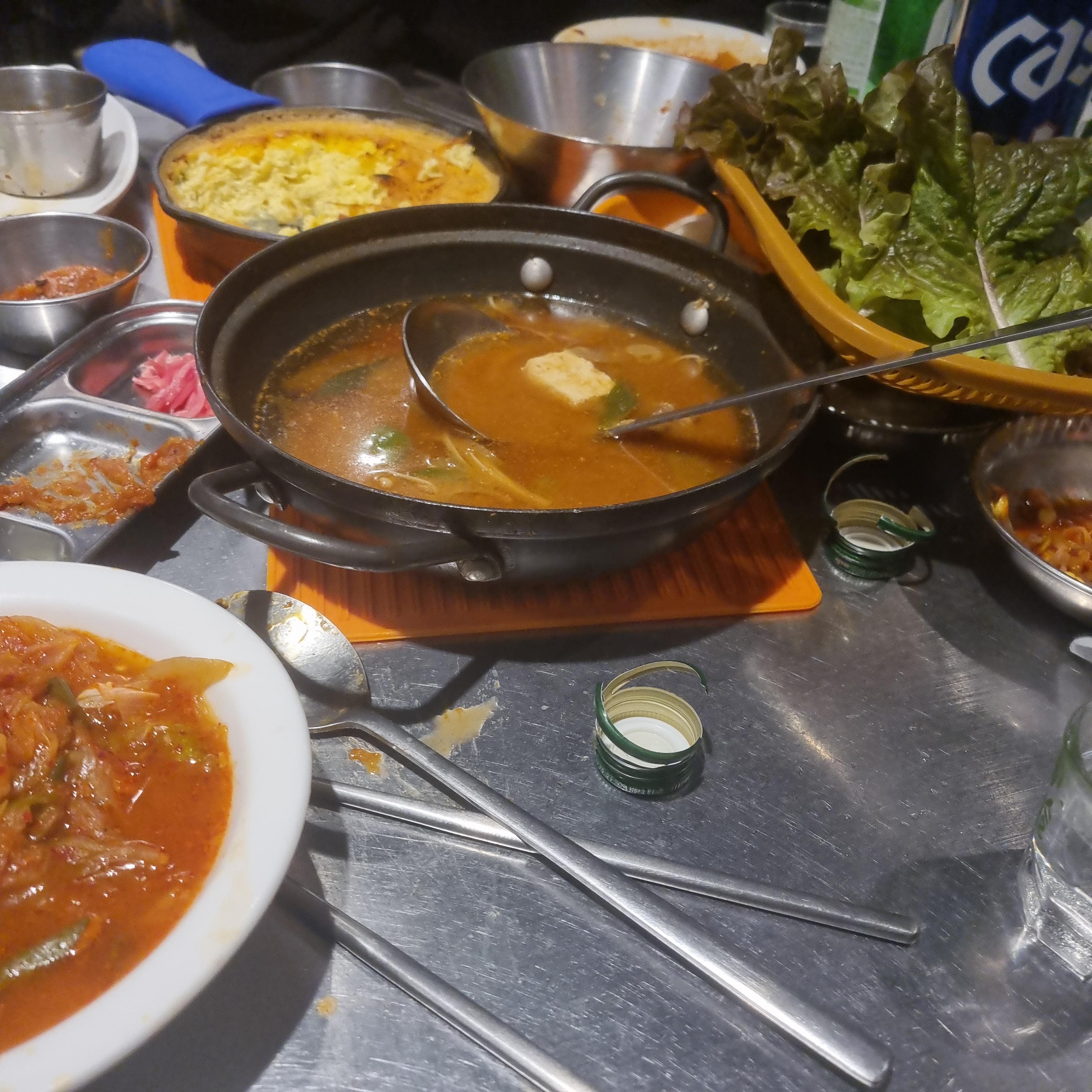 단체로 3명이상 방문시에는 세트메뉴가 있는 전골셋트로 주문하면 나오는 음식에 비교 가격이 할인되어 52,500원 하는 메뉴가 있는데 삼겹살2인분과 목살1인분 전골을 택할 수 있고 소주까지 포함된 음식으로 가능하면 세트메뉴가 가성비가 좋습니다.